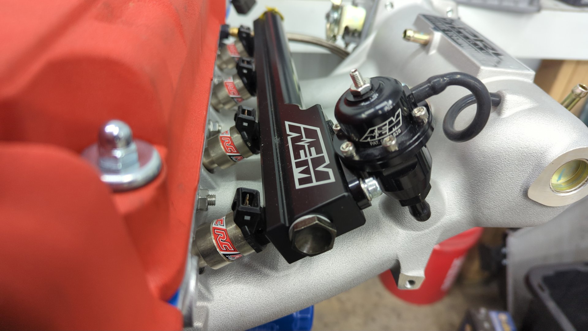I also upgraded my fuel pressure regulator because the car this engine will be going in has a Walbro 255 fuel pump and I’ve read that the stock fuel pressure regulator can struggle to keep up with it.