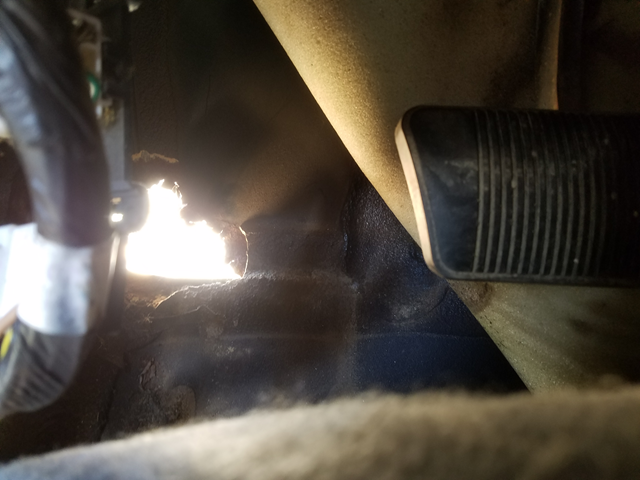 This is directly after pulling back the carpet and seeing how much metal I could break off by hand. The hole ended up being quite a bit larger than I was expecting, but it wasn’t the end of the world.