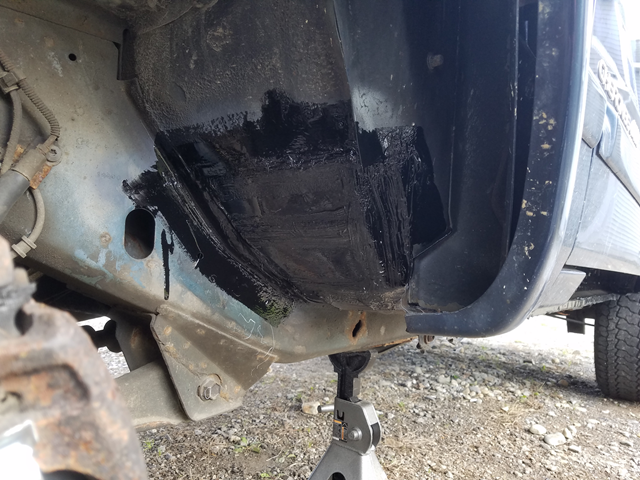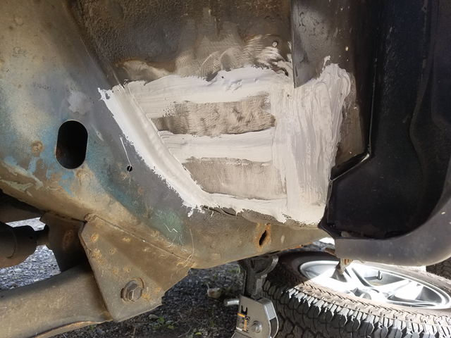 The light gray stuff is SEM seam sealer. It’s the same stuff that I used on my passenger rocker panel, and it dries in just 10 minutes which is hard to beat!