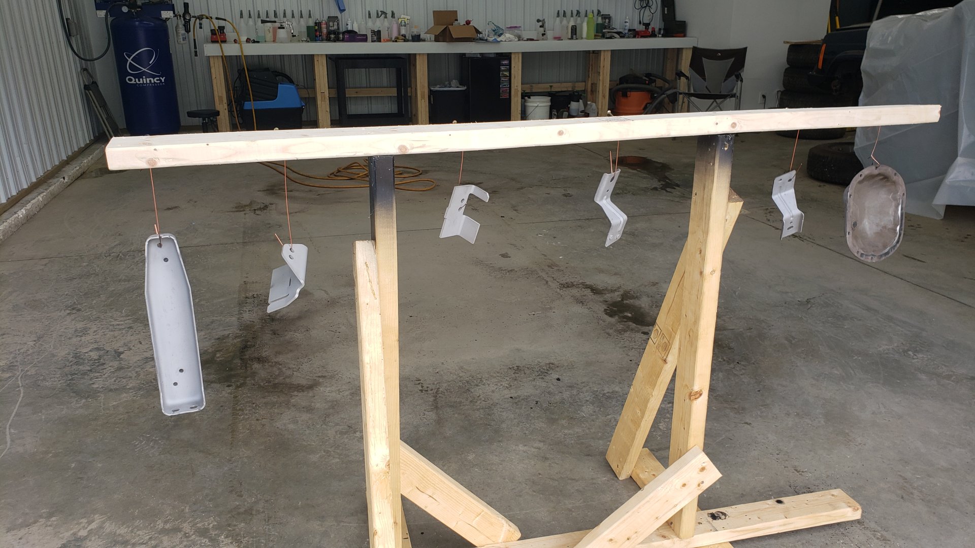 Some of the various brackets and other parts ready for paint. (Not all of these are for the axle. I was restoring the e-brake equilalizer housing at the same time)