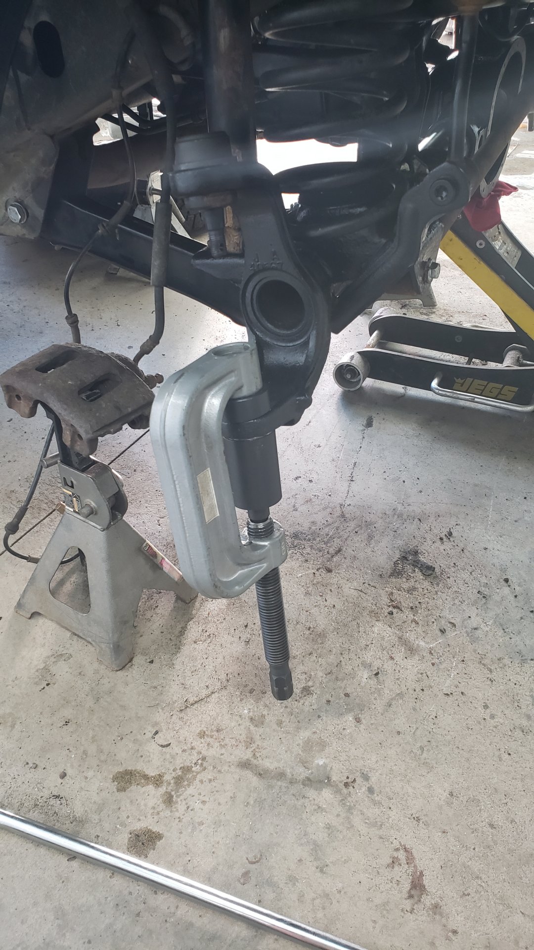 I had to cut the rubber out of the bushings and make a relief cut into their metal casings. Just so I could push them out.