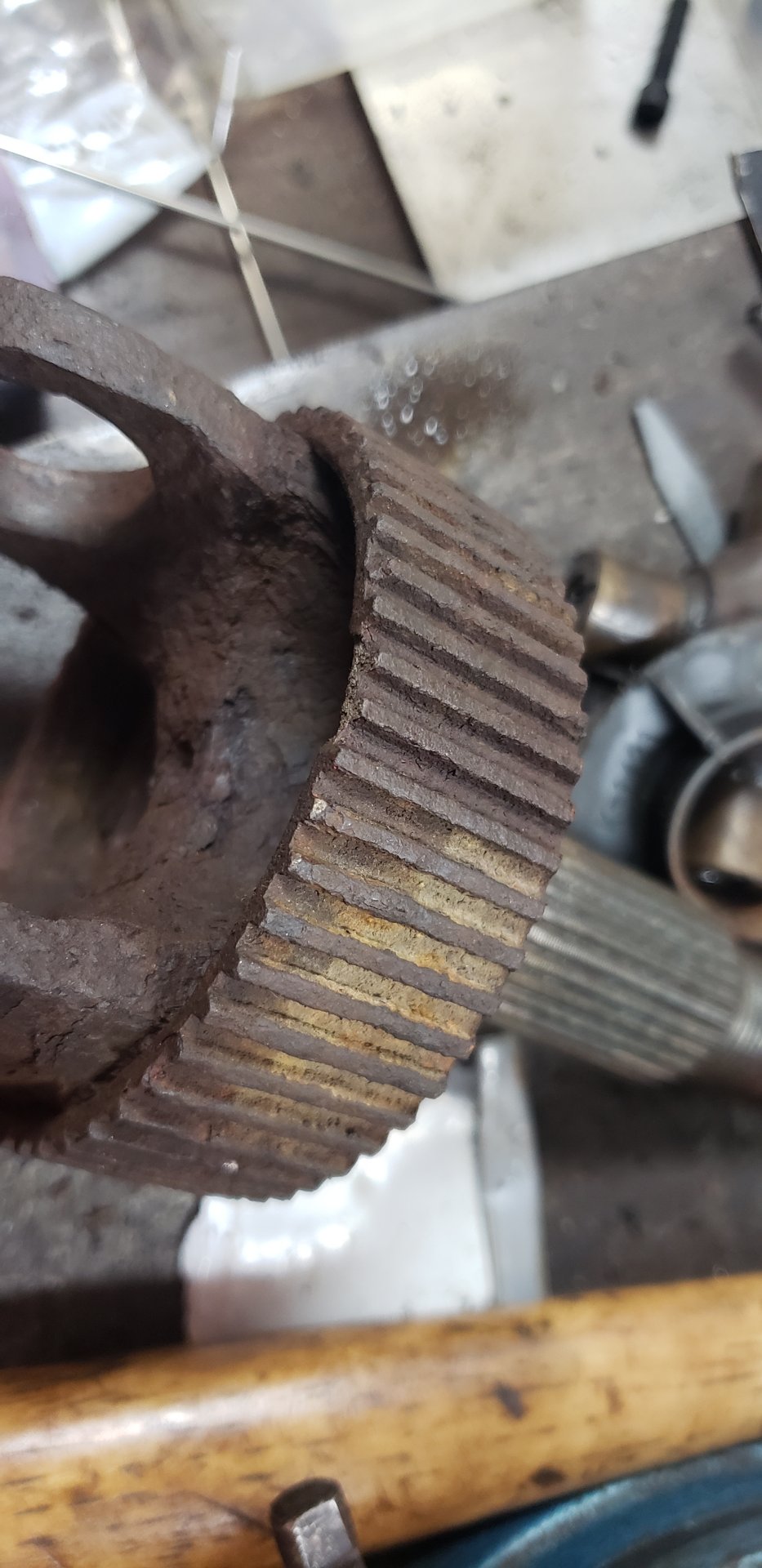 50-50 shot after sandblasting, and painting one of the axles. The u-joint was also replaced.