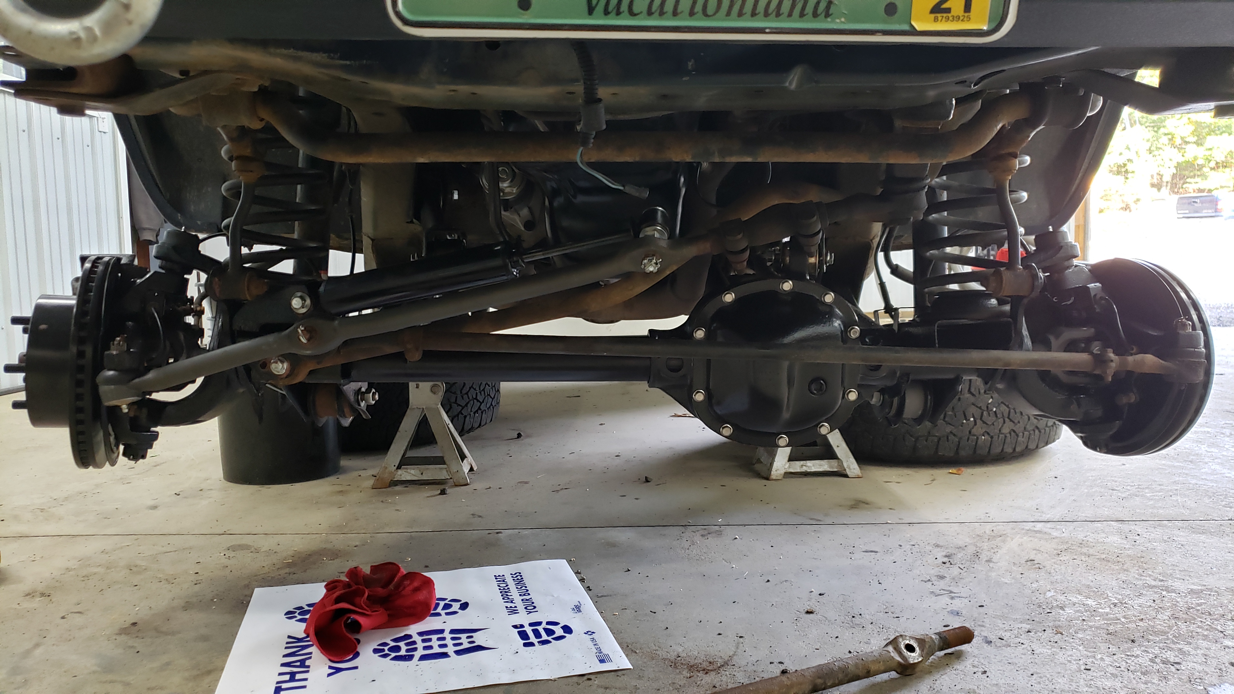 Since May I’ve been spending the majority of my free time picking away at its issues. And even though the Jeep seems to fight back against every repair I make, I’m slowly gaining headway. I did a full tear down restoration on the front axle which involved removing it from the vehicle, sandblasting it, painting it, and then replacing everything on it with brand new components.