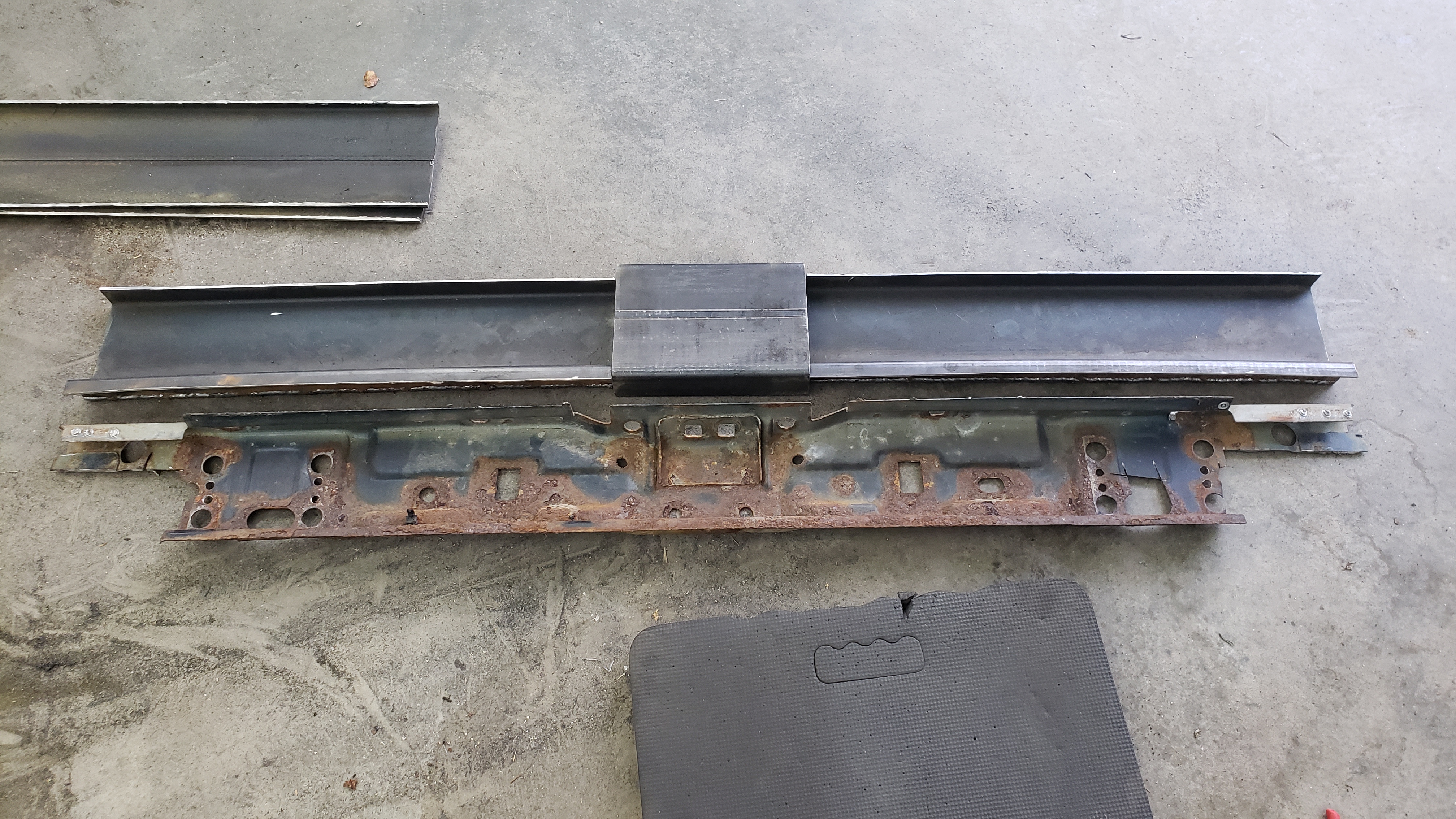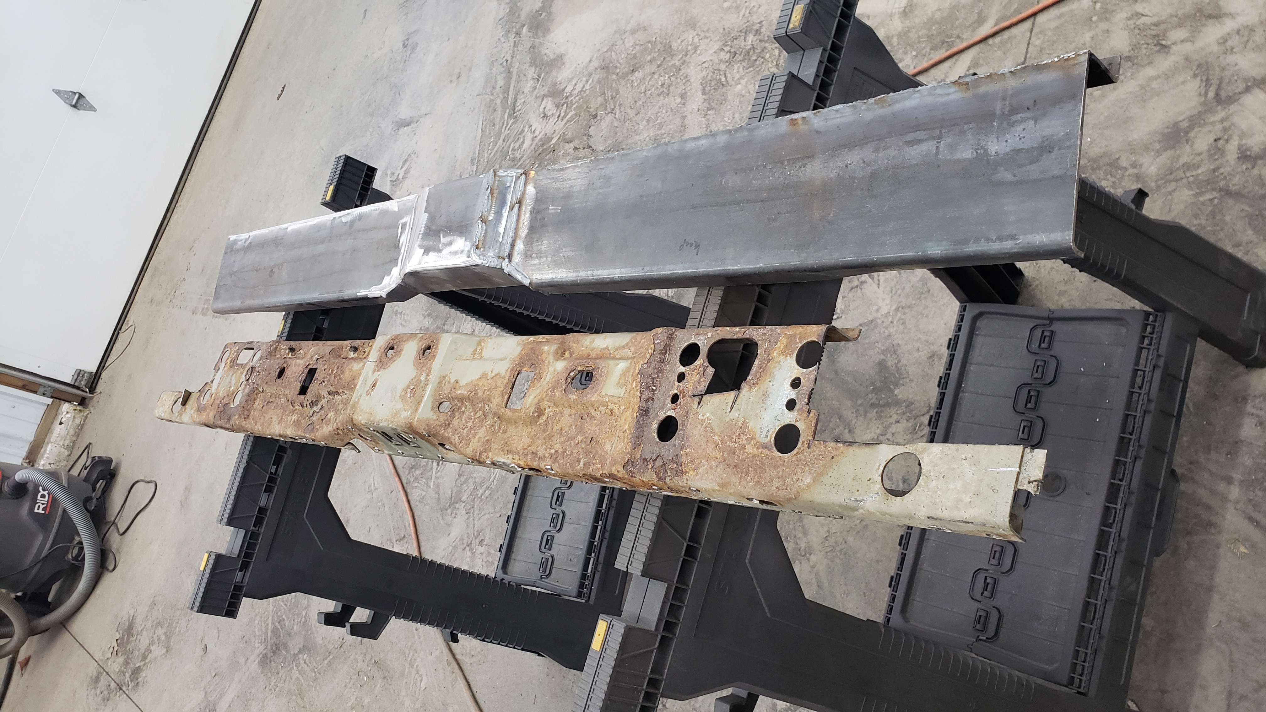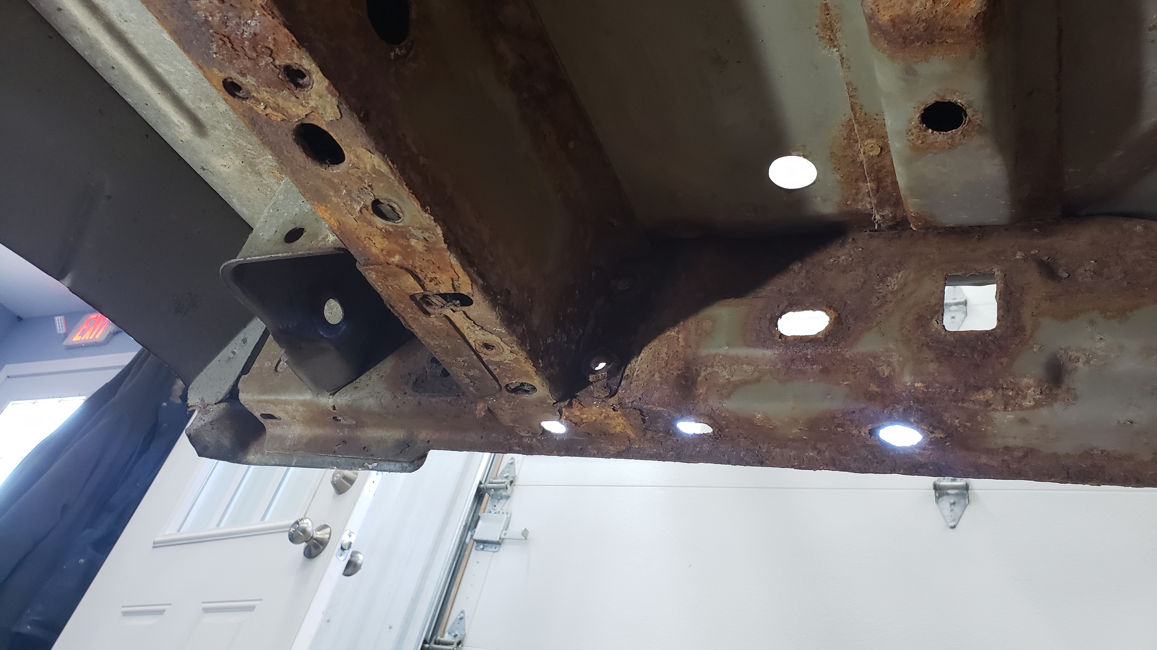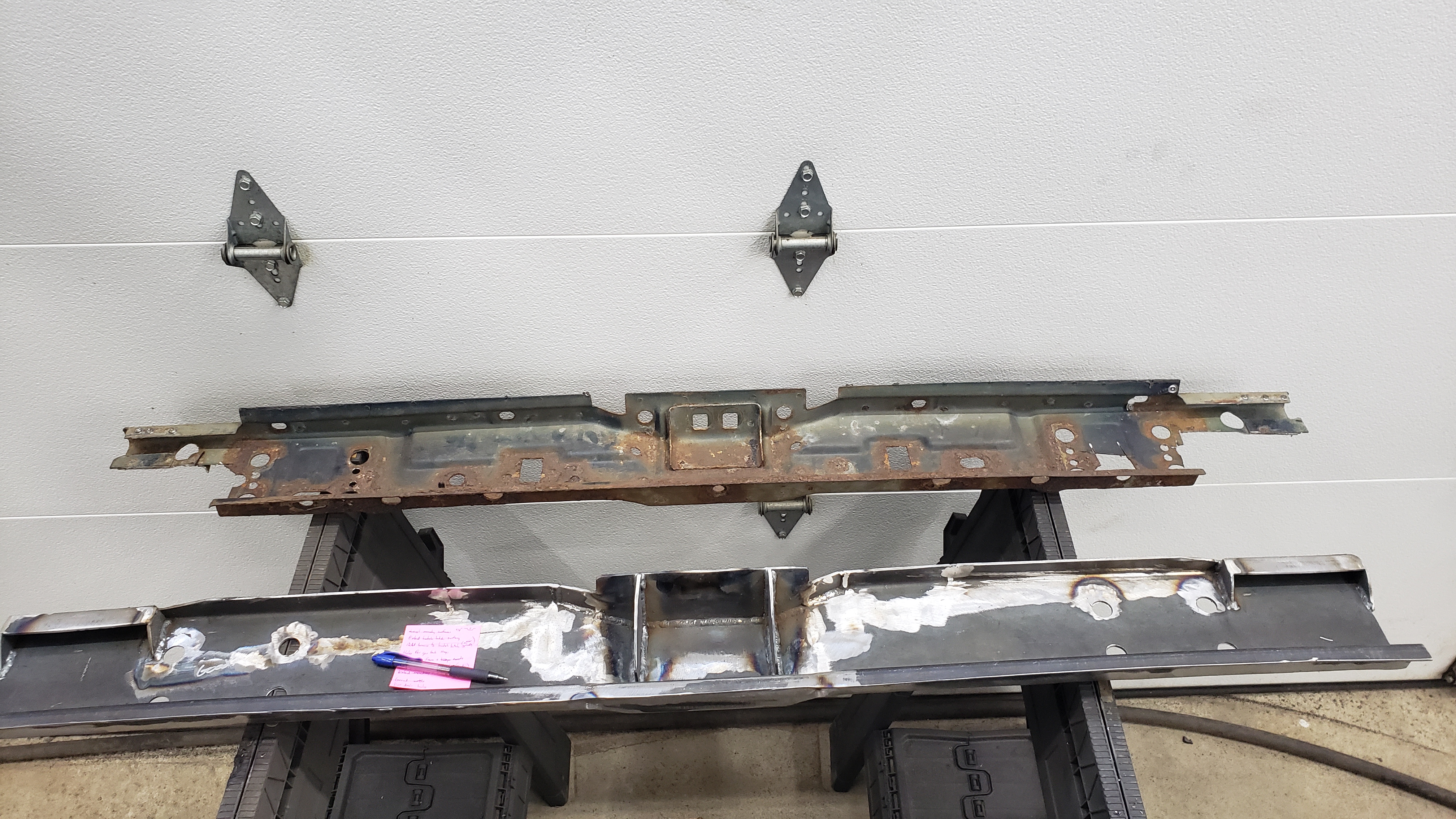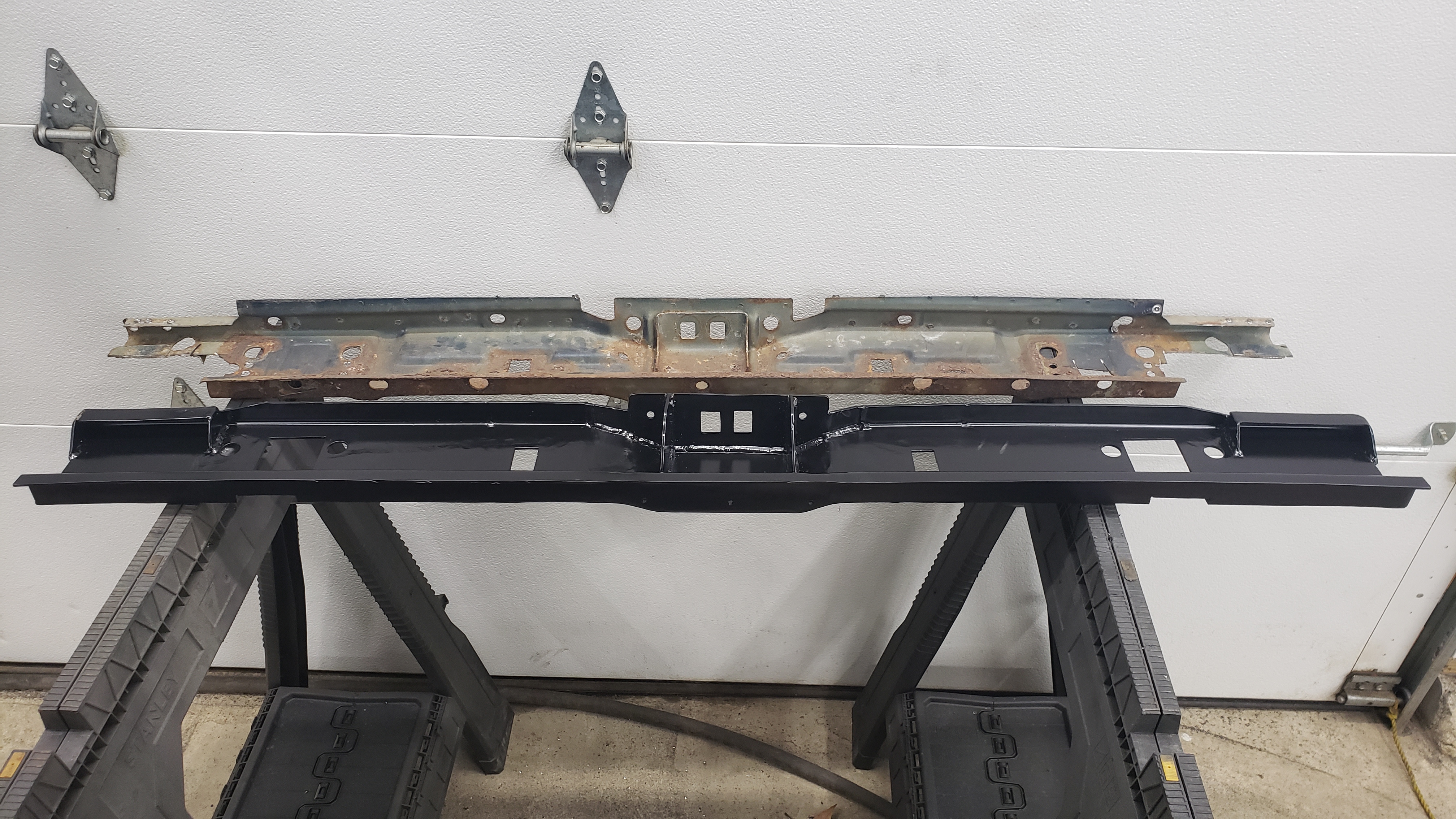 The rear crossmember was still structurally intact but the rust was beginning to get severe. I had thoughts about sand blasting it and painting it, but with the metal only being 16ga (1/16") I didn’t think there was enough good metal left to go that route.