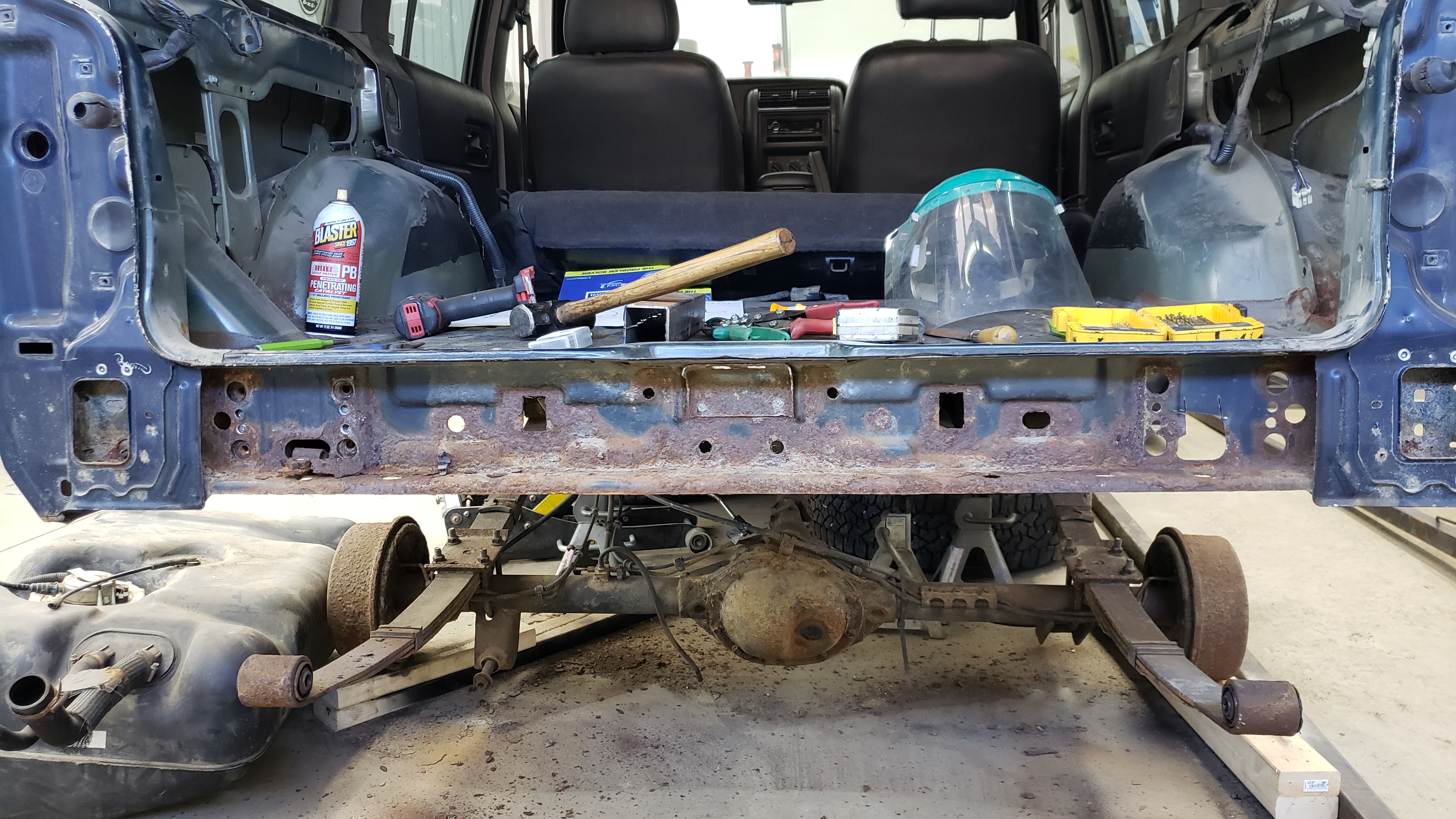 The rust was actually so bad I had a hard time figuring out where to start the repairs. After about an hour or two of internal debates I decided to start with replacing the rear crossmember below the hatch.