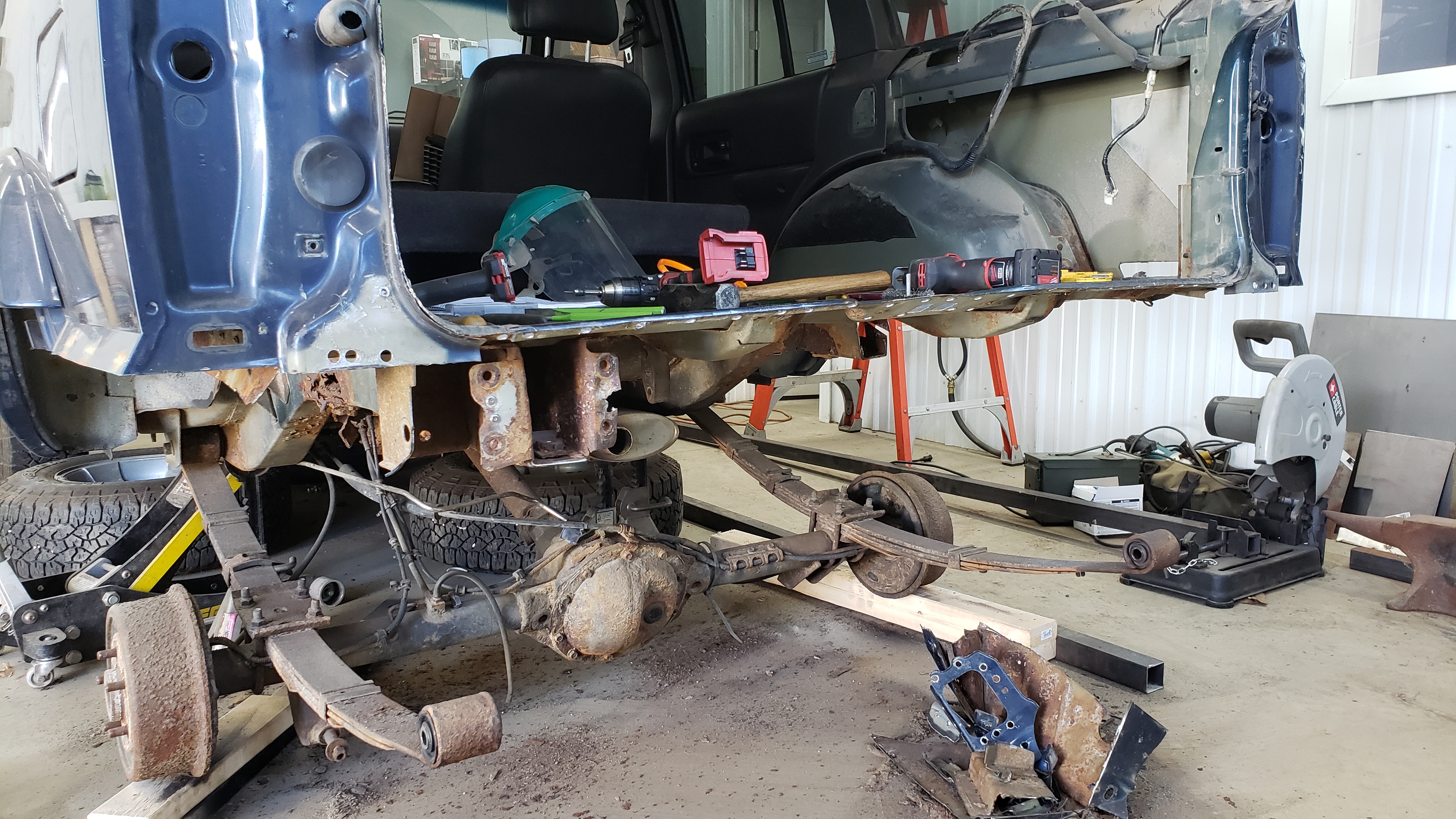 Things weren’t looking good at this point. I realized I’d need to replace both frame rails, the floor, the shock crossmember, and the rear crossmember if I wanted to fix it properly.