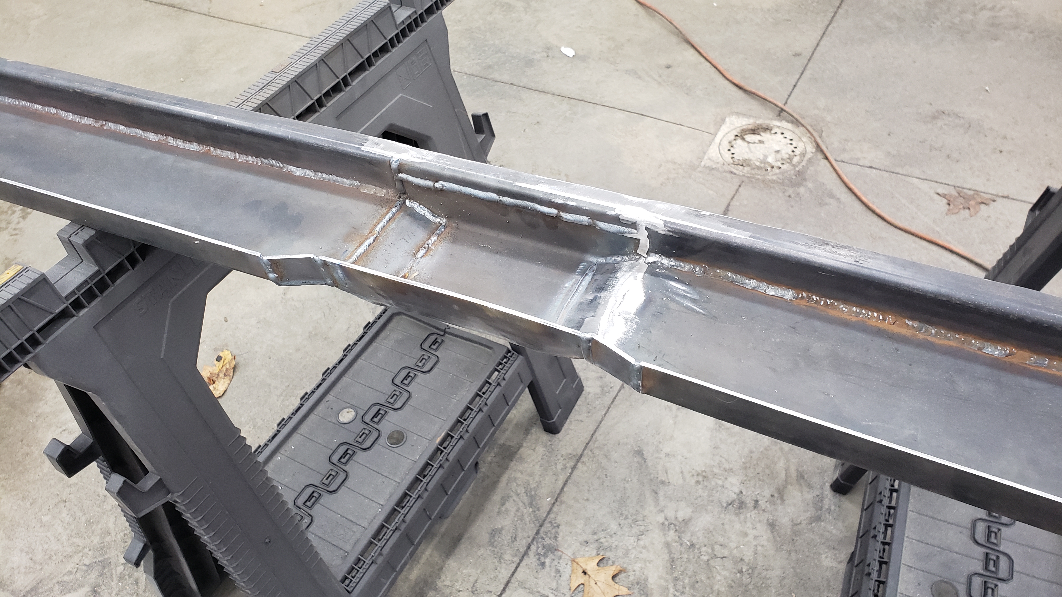 About 40 hours of work and many mistakes later I had a new crossmember that somewhat resembled the original one.