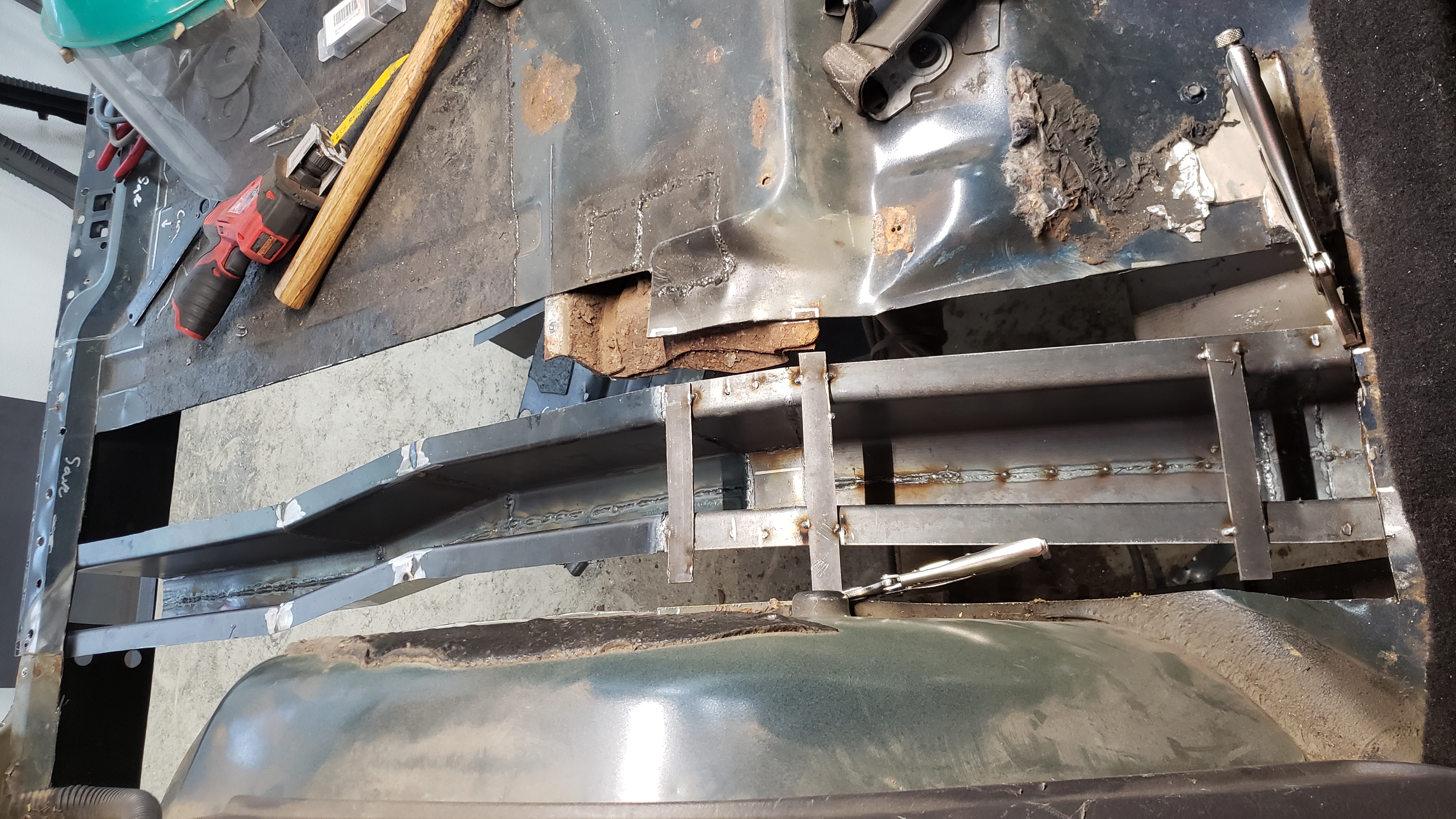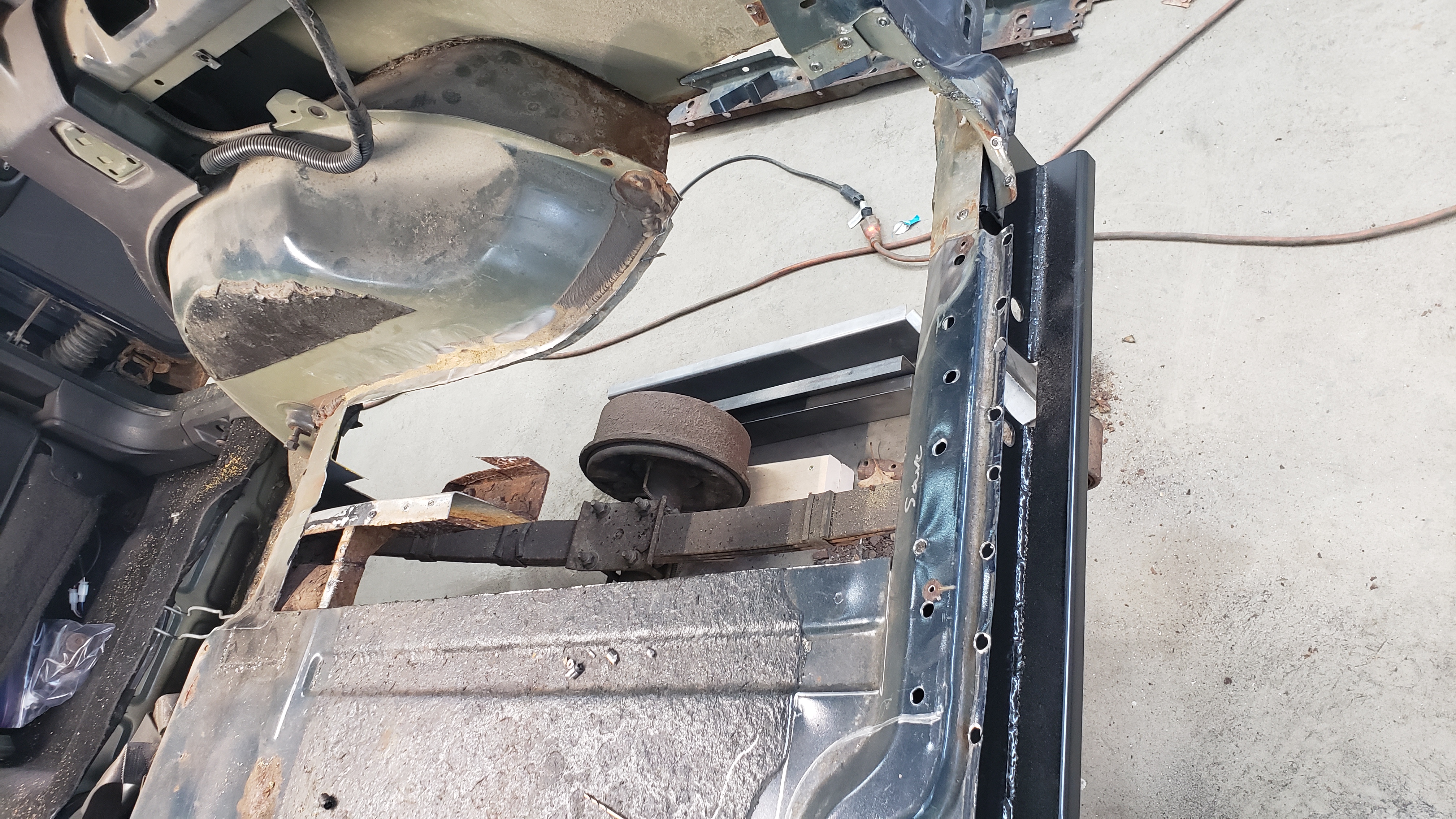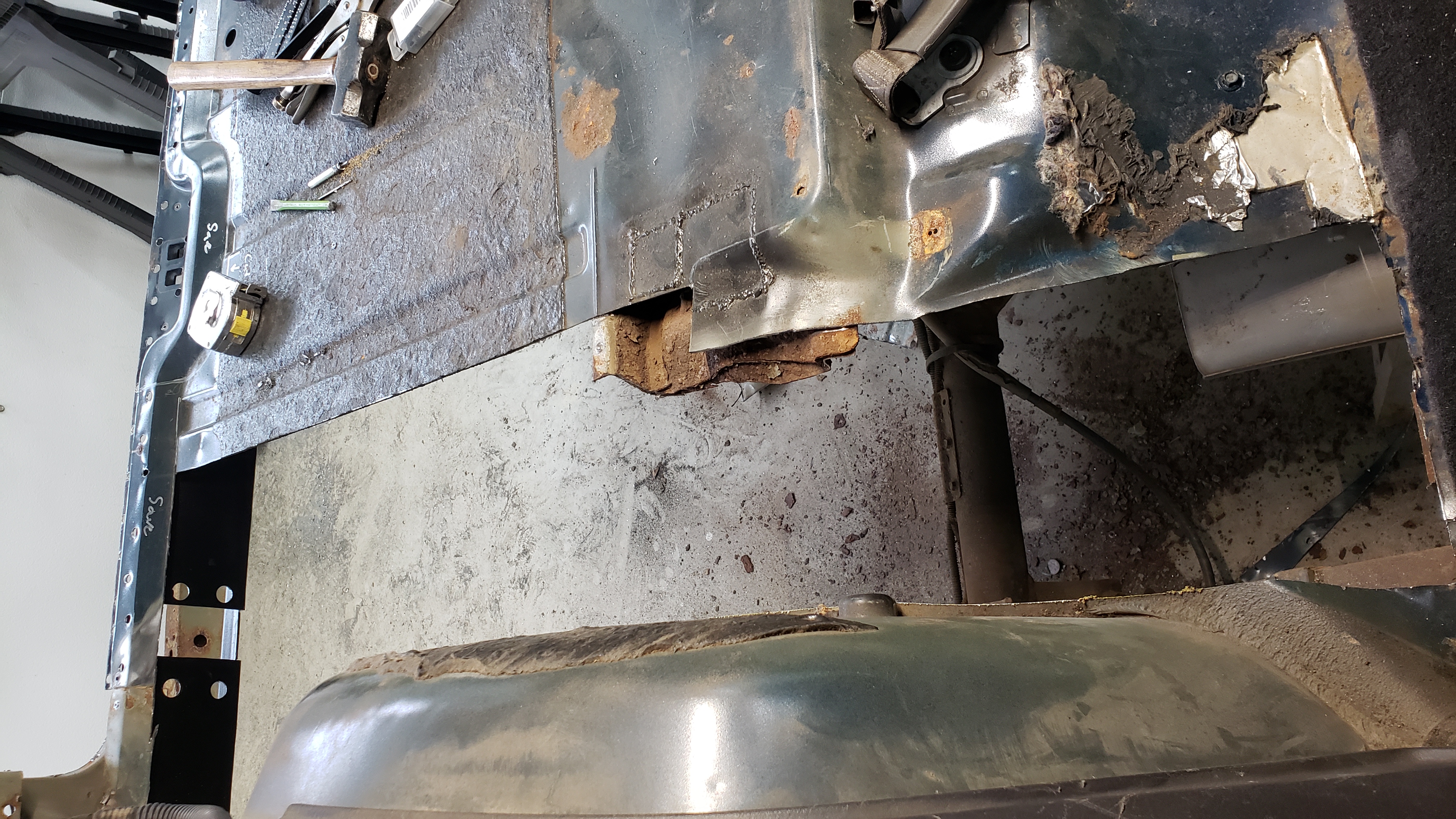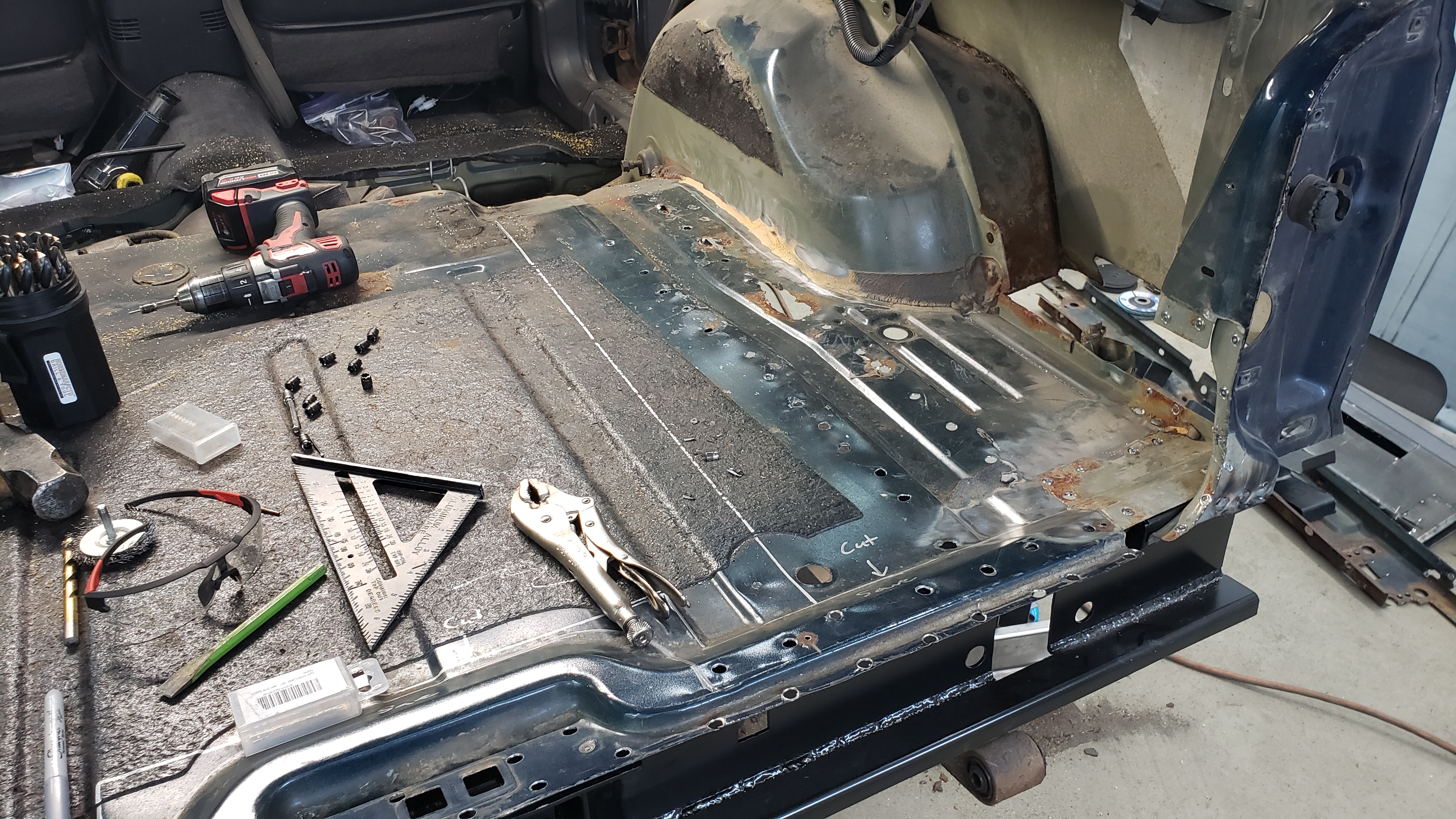 With a portion of the frame ready for test fitting I needed to remove the old one. There’s a ton of spot welds you’ll have to drill out. The majority of them are on the floor.
