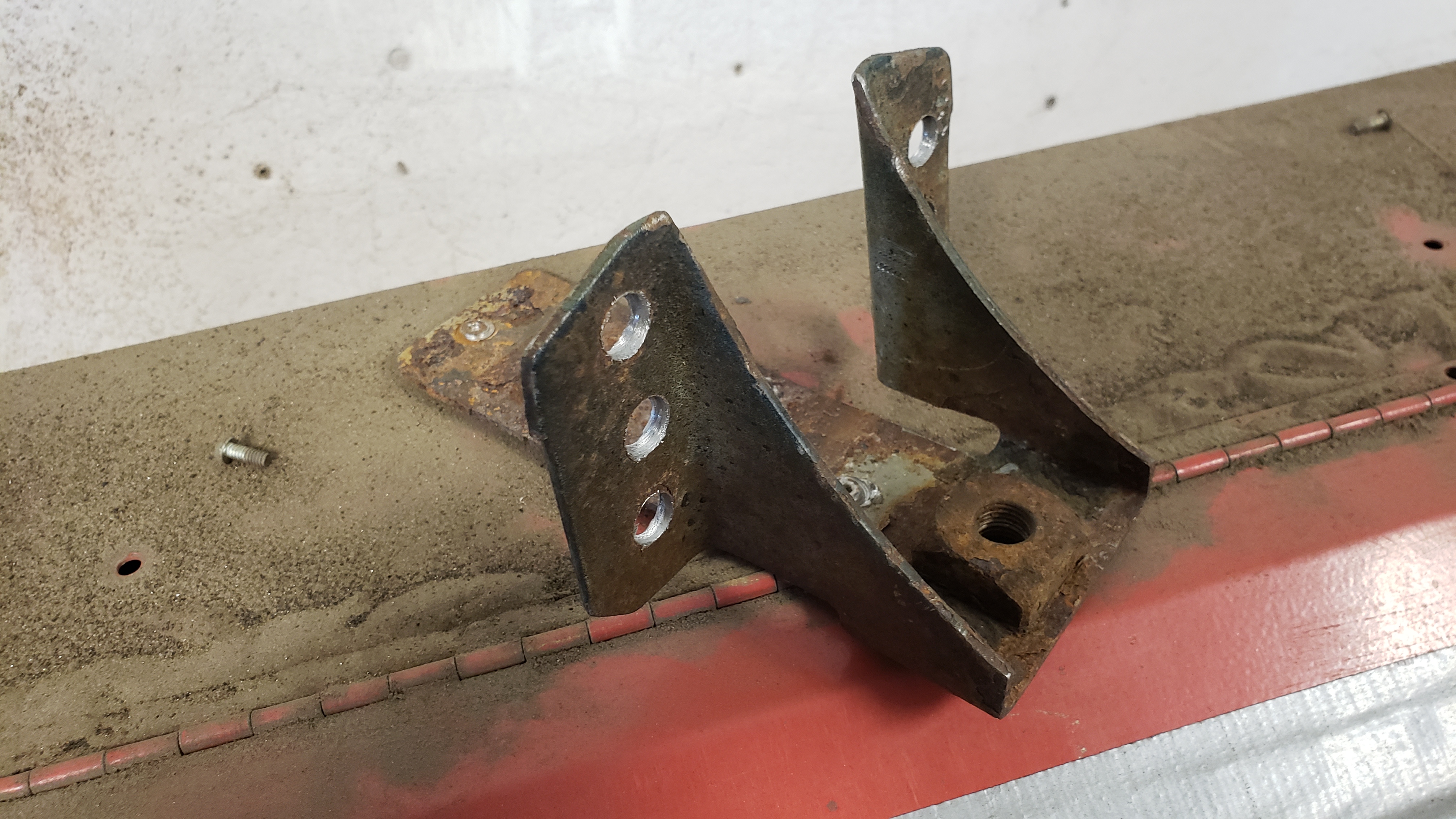 Before I could weld in the passenger frame rail I had to do a few extra steps. For one, the seat belts of the rear seat tie into the frame via a little bracket on each side. Mine was rusted out and not wanting to weld on a rusty piece to my new frame I ended up sandblast it, and replaced a portion of it.