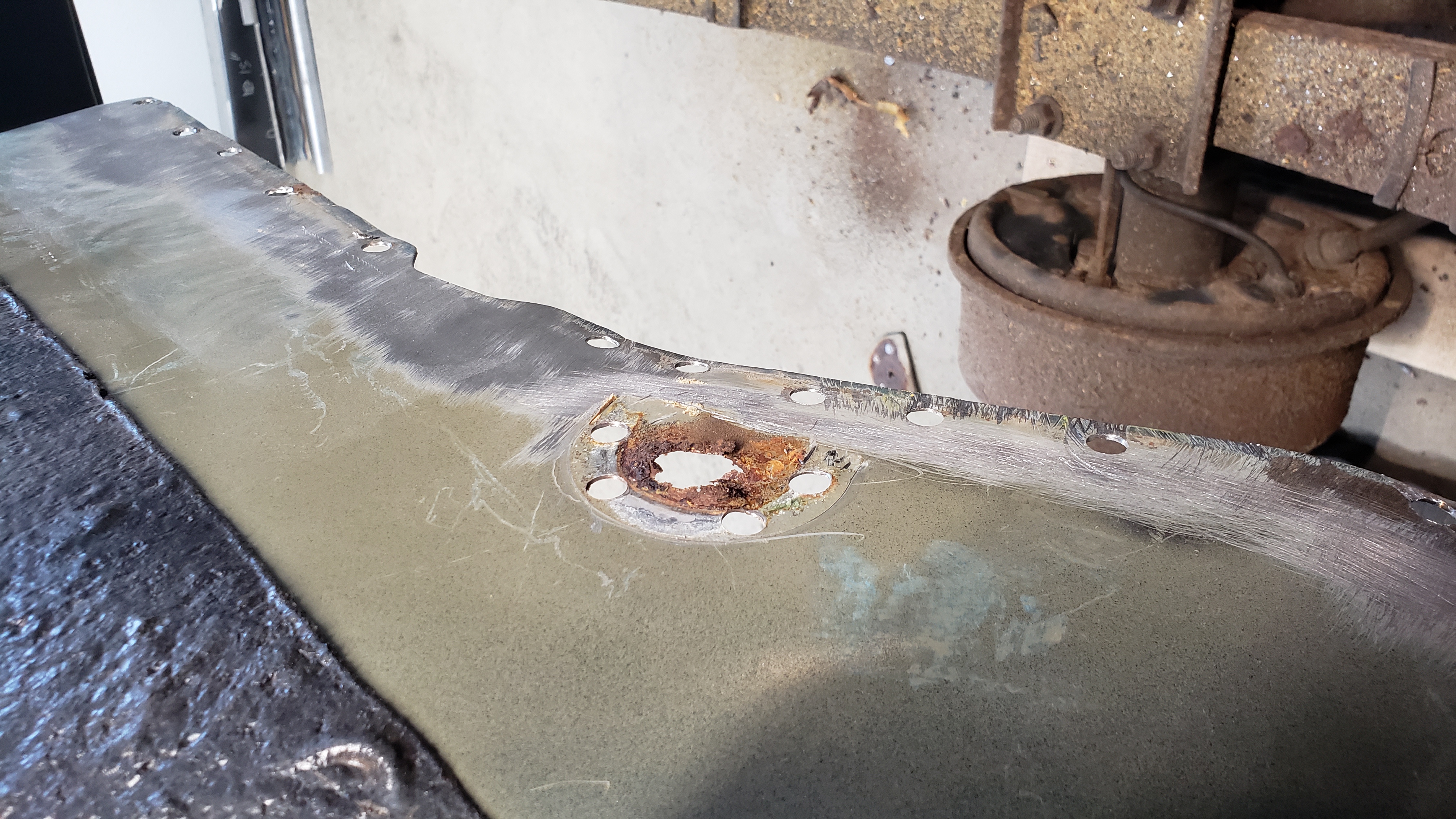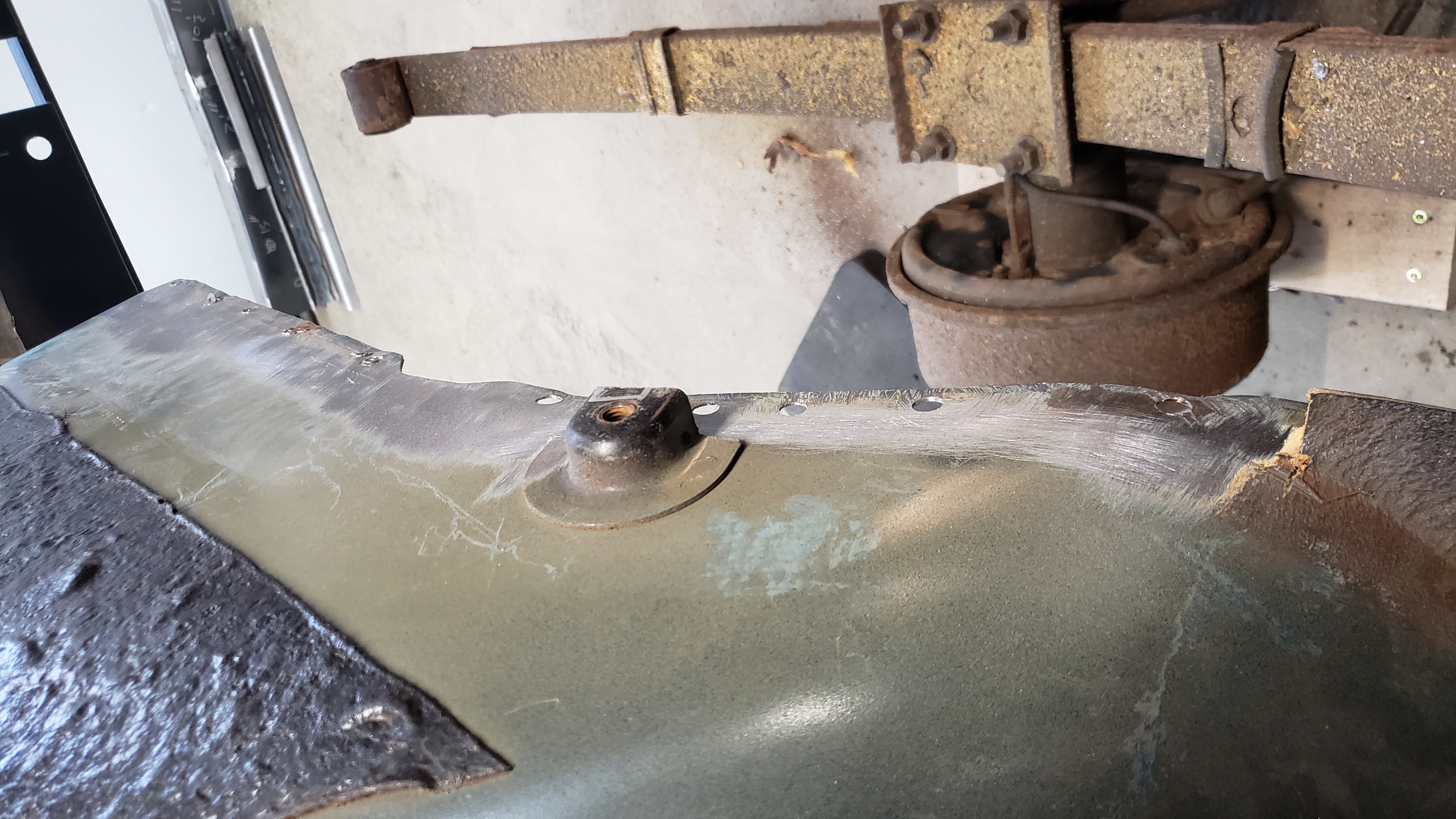 You can see where I welded in patches on the floor last winter because I cut holes in said floor to get at the upper shock nuts that rusted out. That was suppose to be the band aid fix that would buy me a year or two. I had to replace the factory shocks because one had started to weep.
