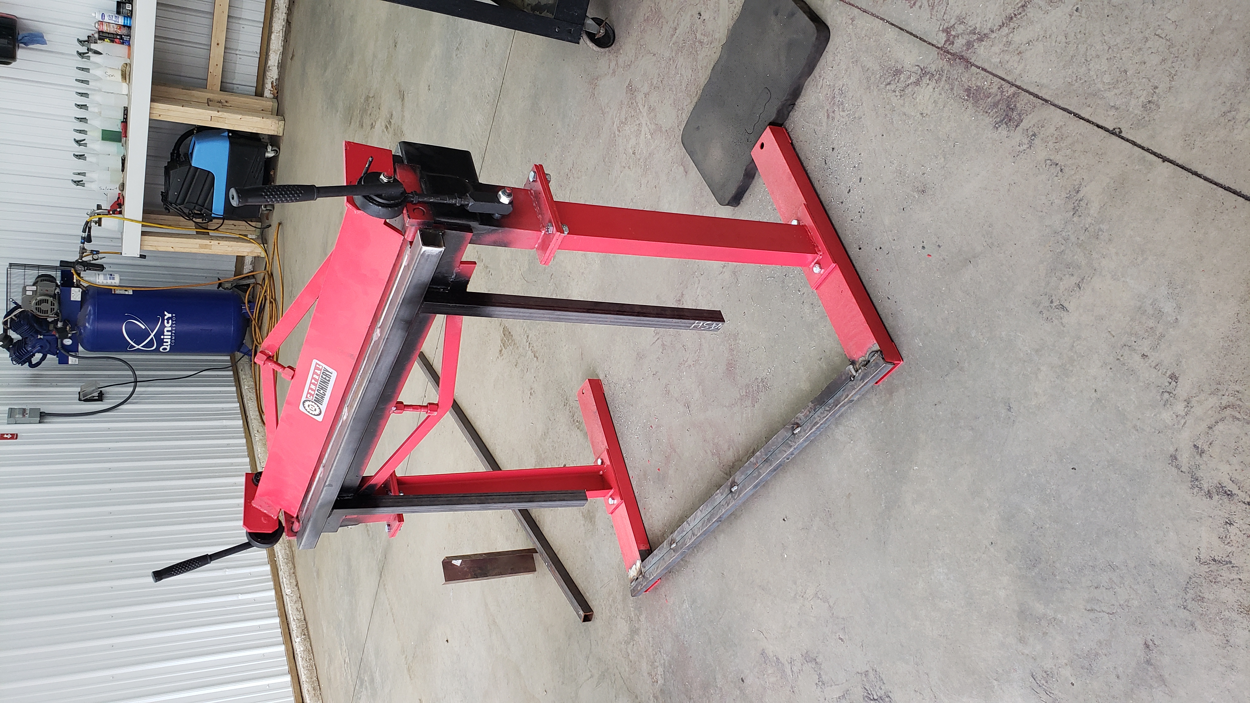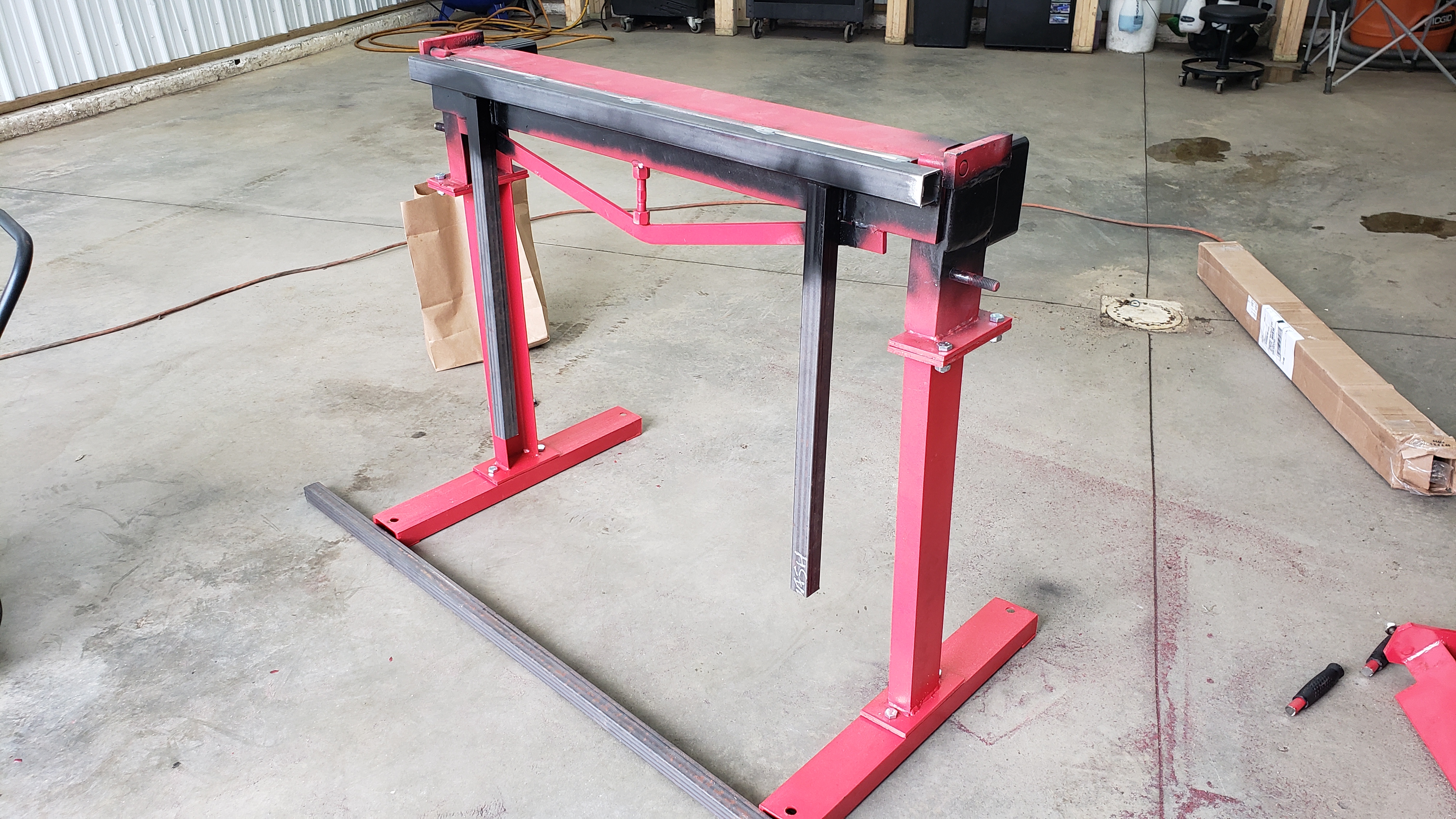 The last mod I did was add a small crossmember to the front of the stand that gives you something to put a foot on so you can hold it down from flipping over when bending metal.