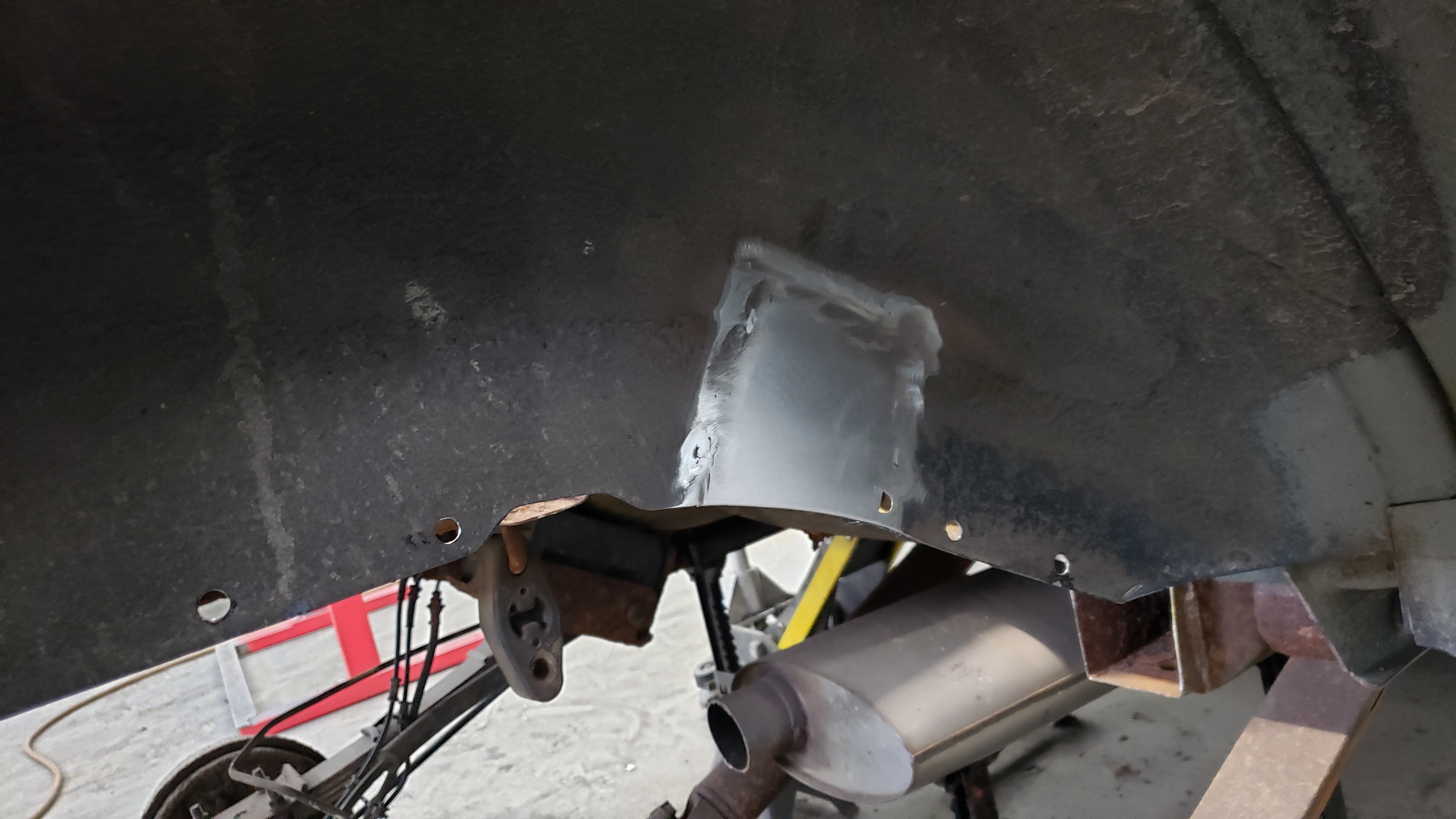 Figuring I may as well address the issue while I had the floor out I chopped out the rusted metal and welded in a patch.
