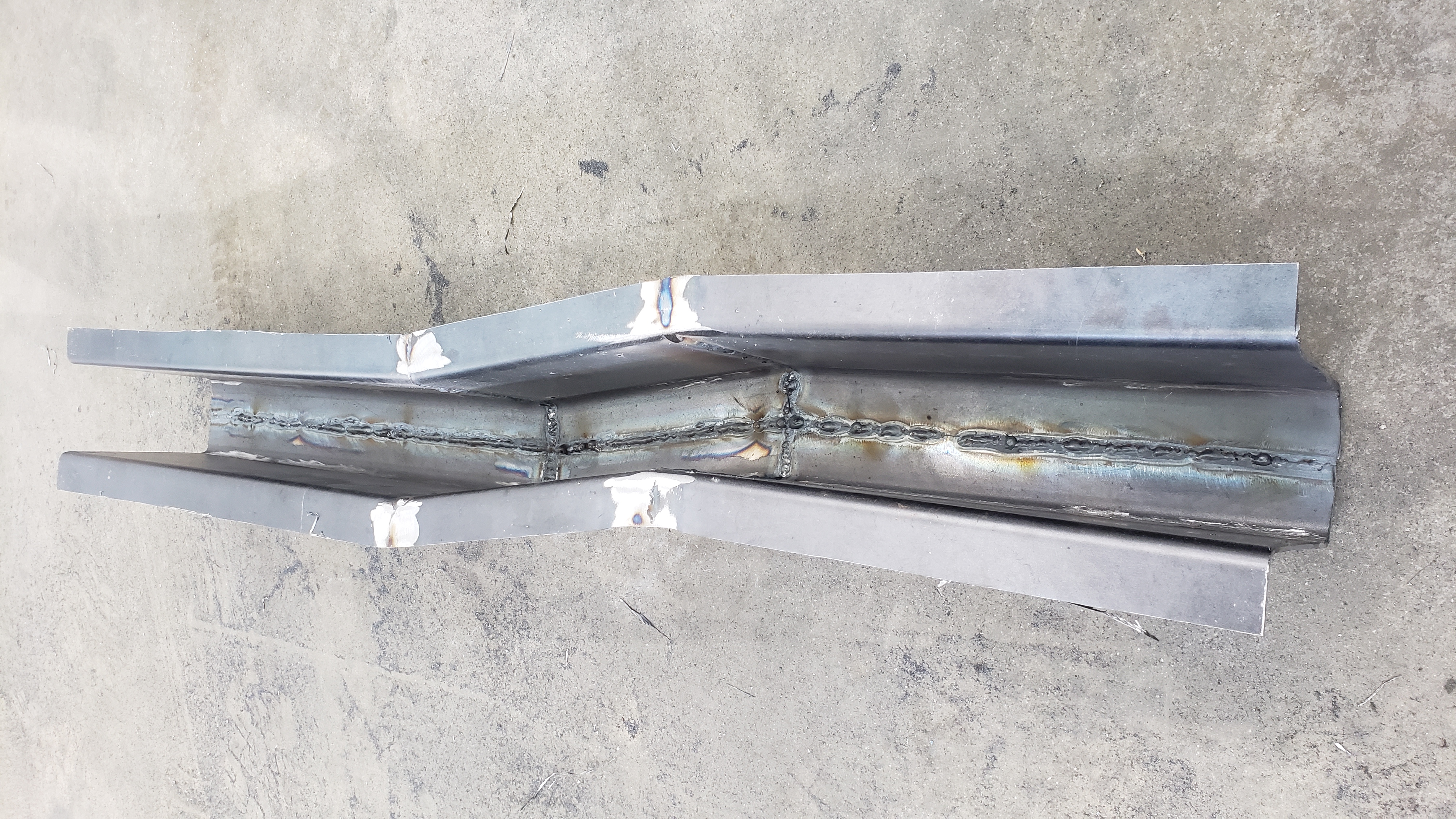 The pieces of metal tack welded on the top are braces that were used to prevent warpage during welding. I made two of these but one was ruined from welding too fast and warping the piece.