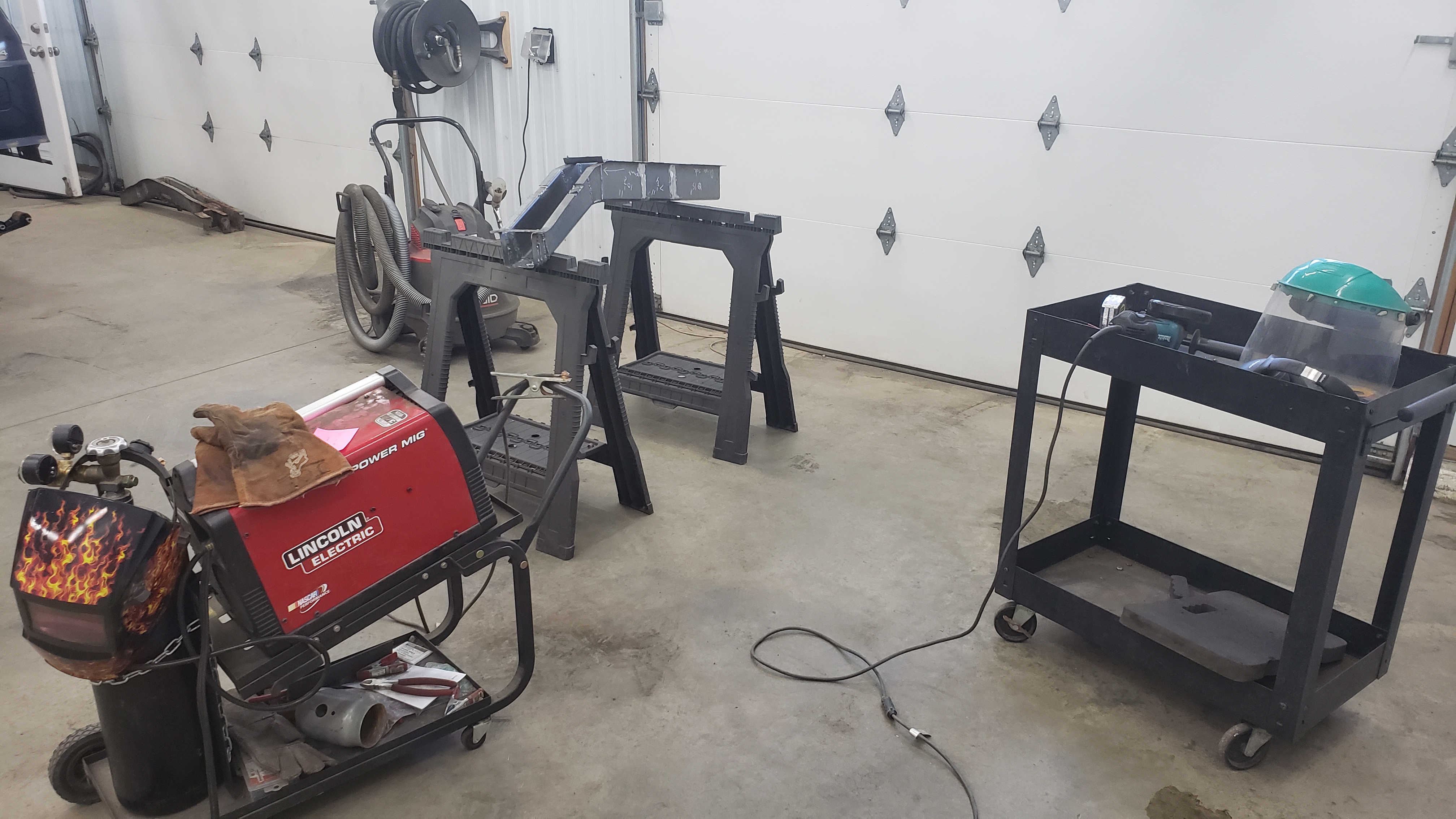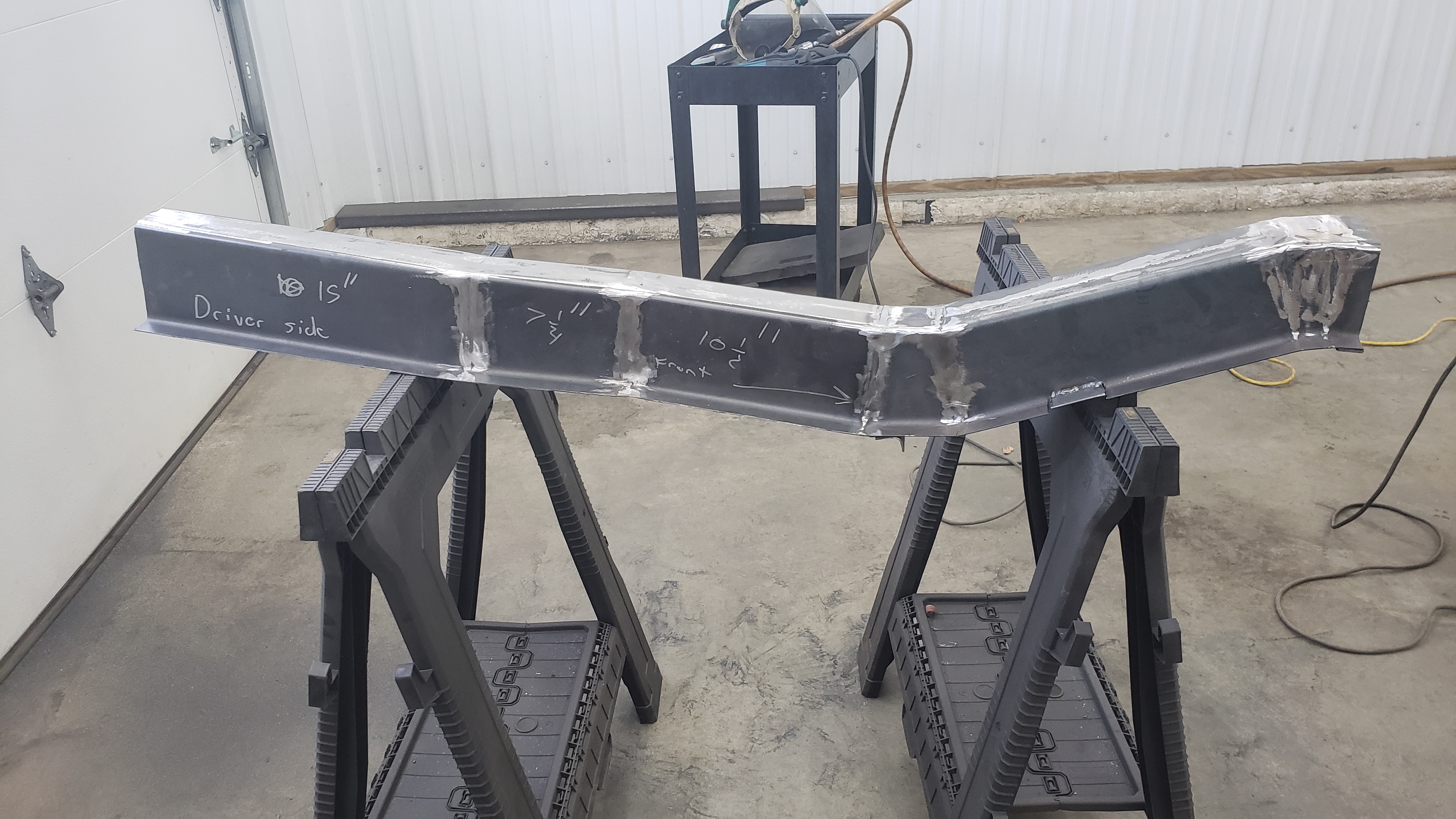 Then after taking way too many measurements to ensure my frame rails were the proper 36 1/2" inches from center to center of each other I welded the driver side in place.
