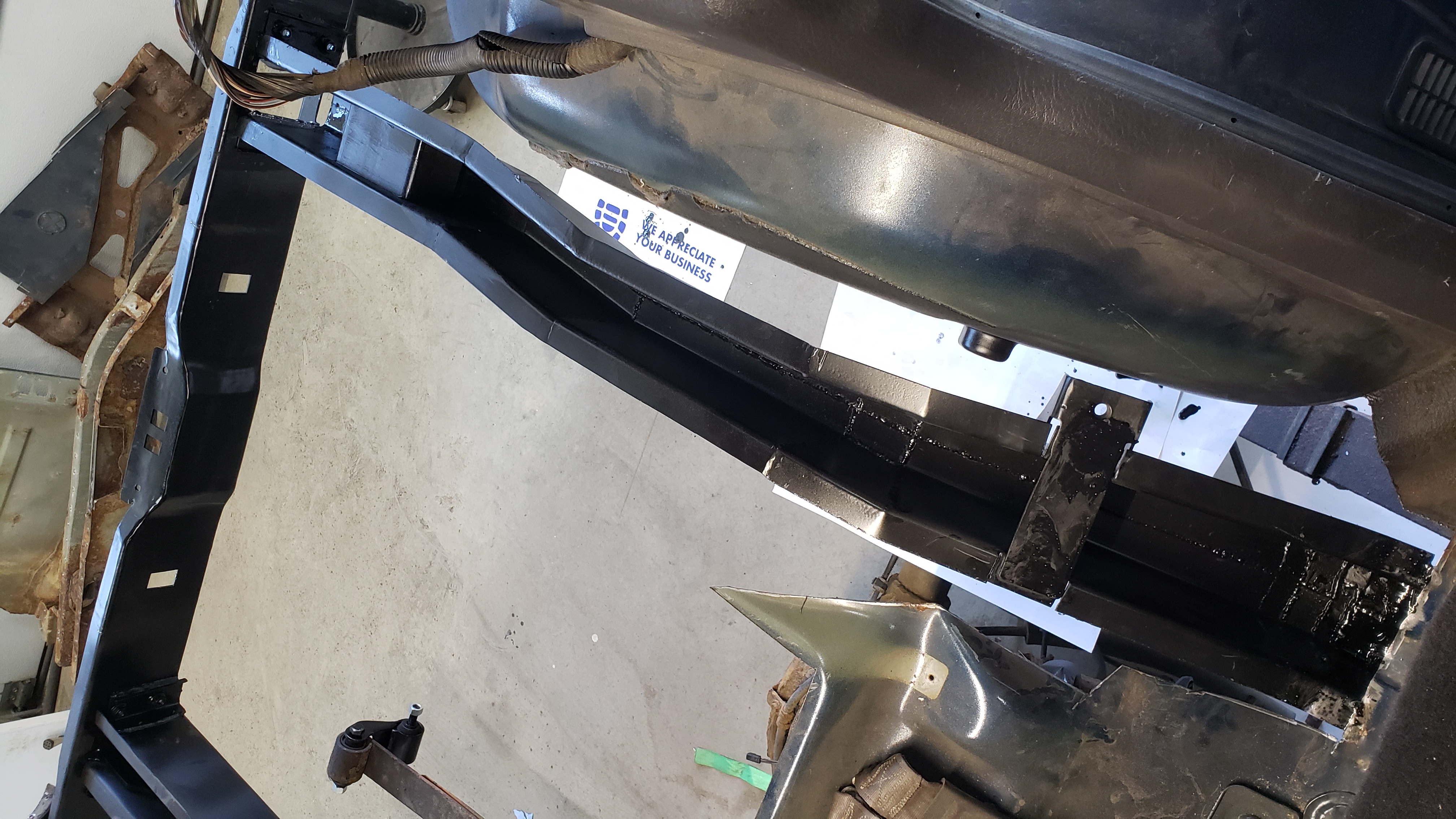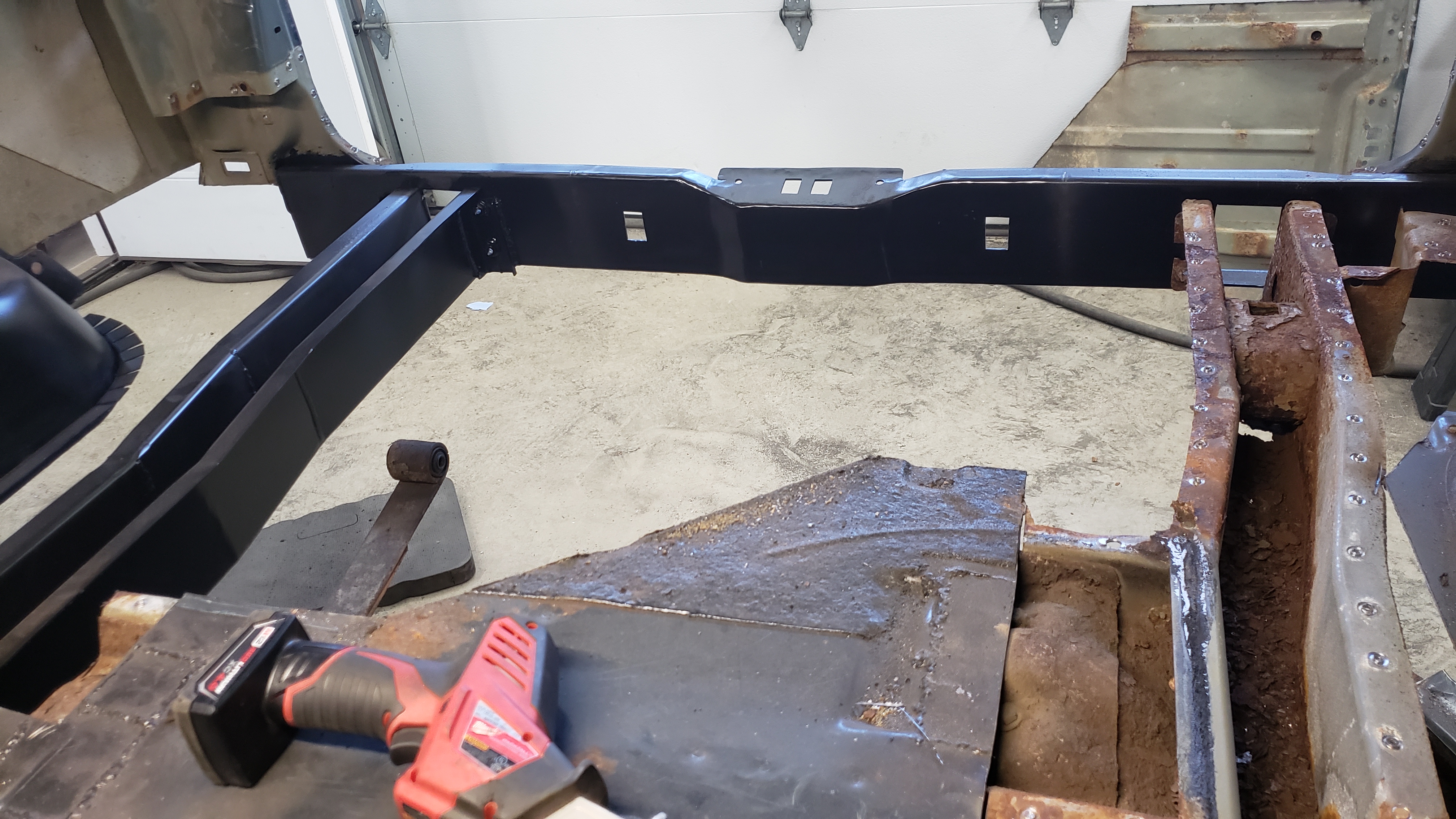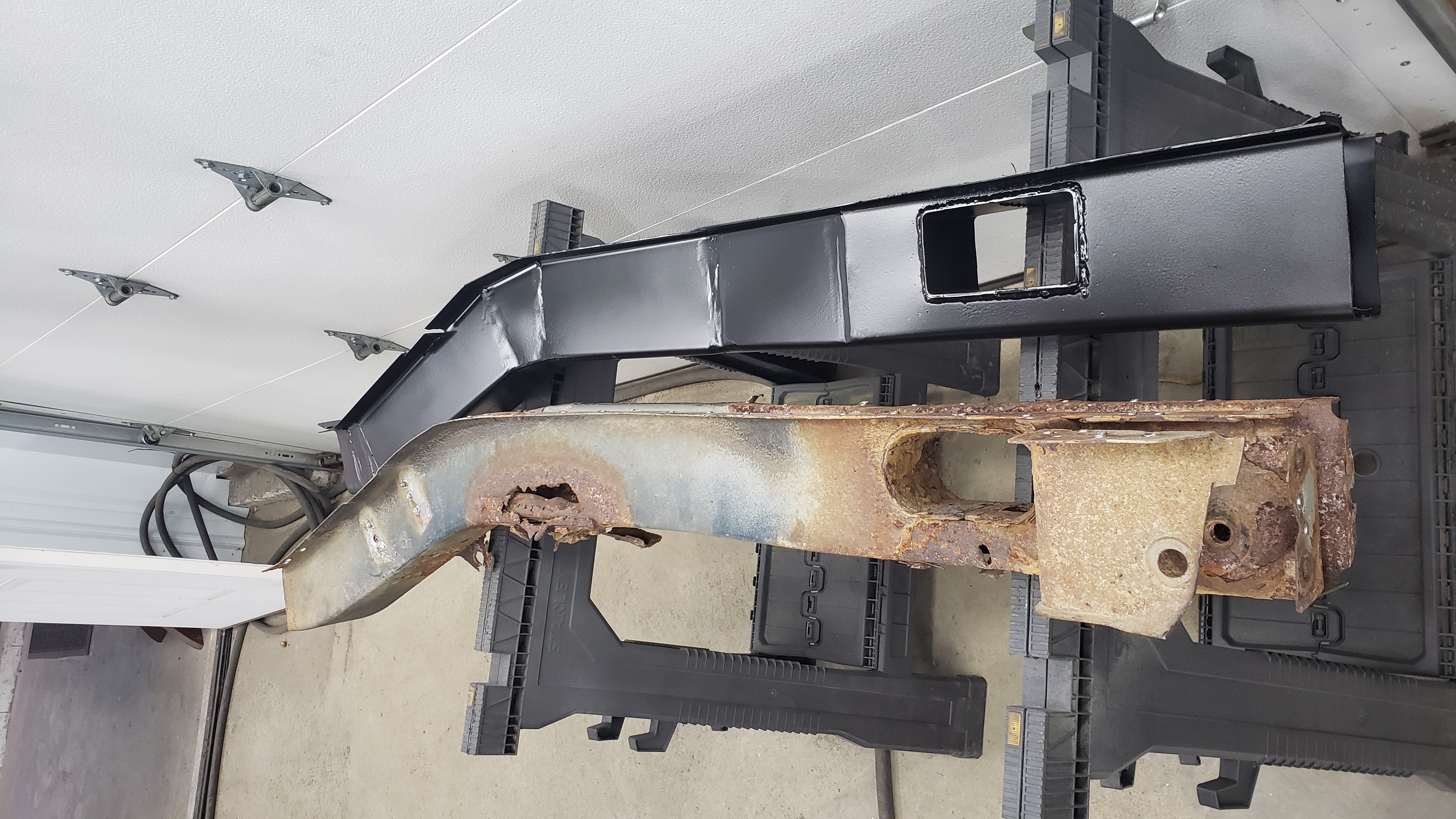 Test fitting of the new frame rail. I had the driver side frame rail pieces already laying around because I fabricated them back when I was doing the passenger side.