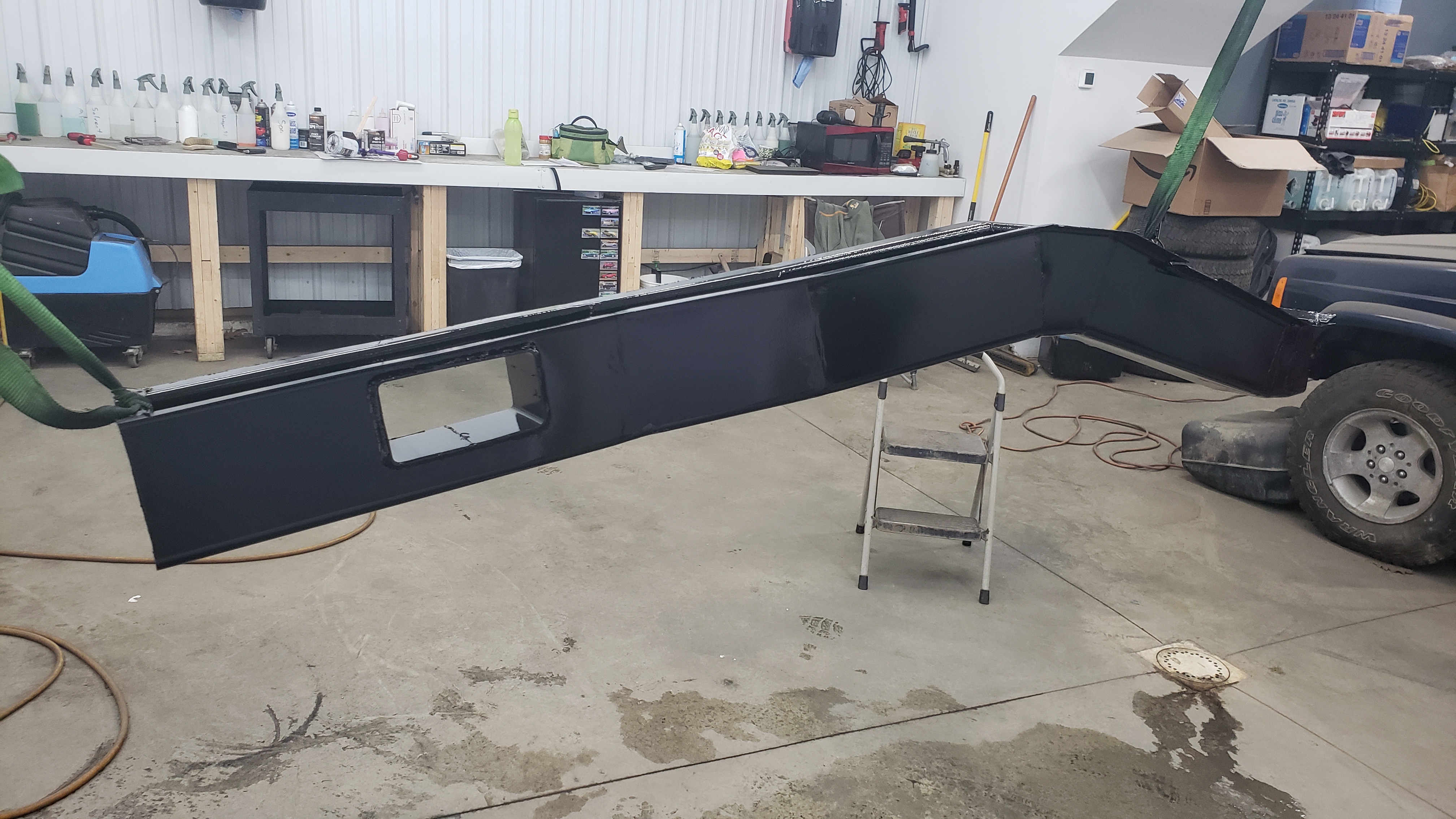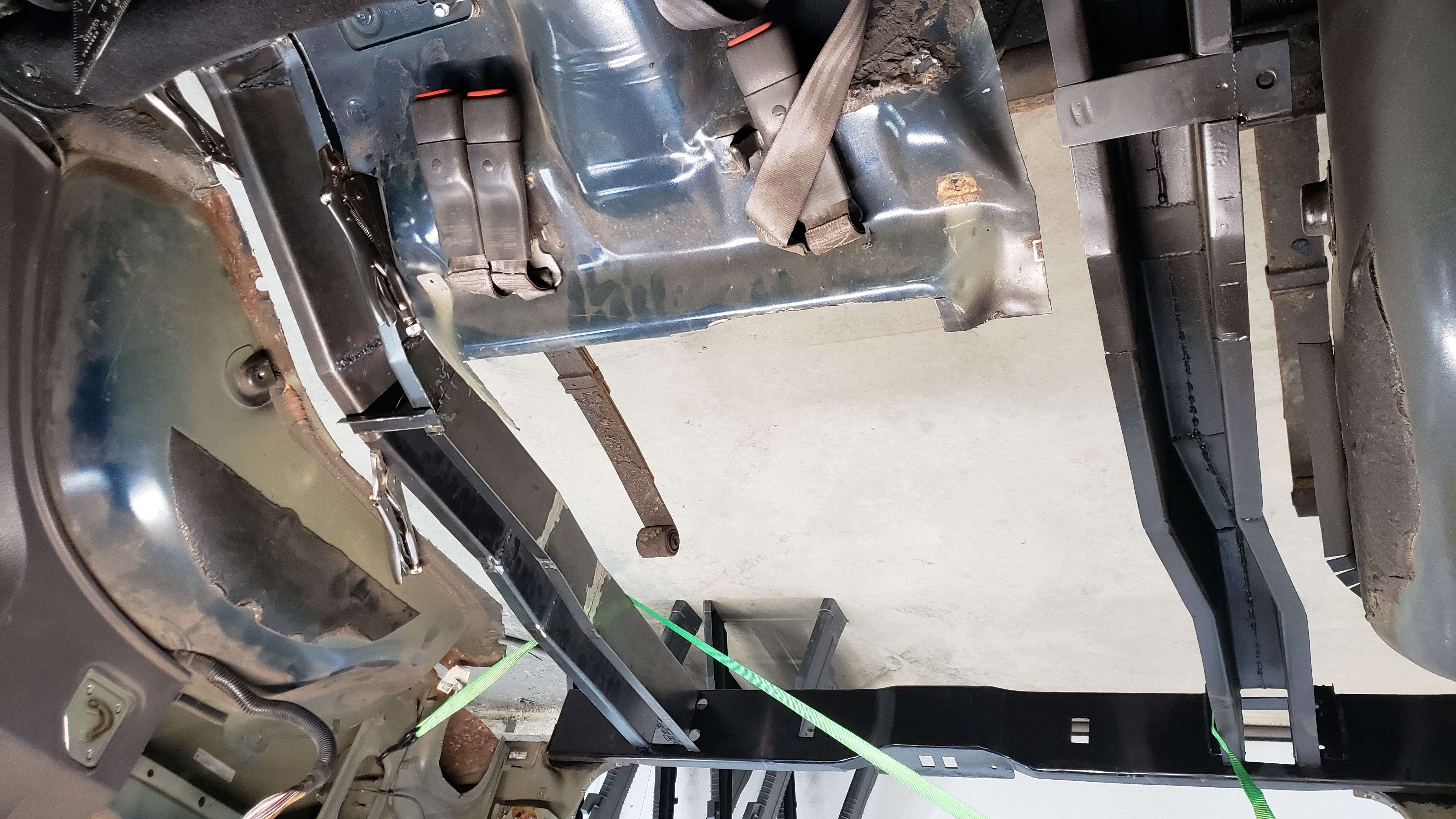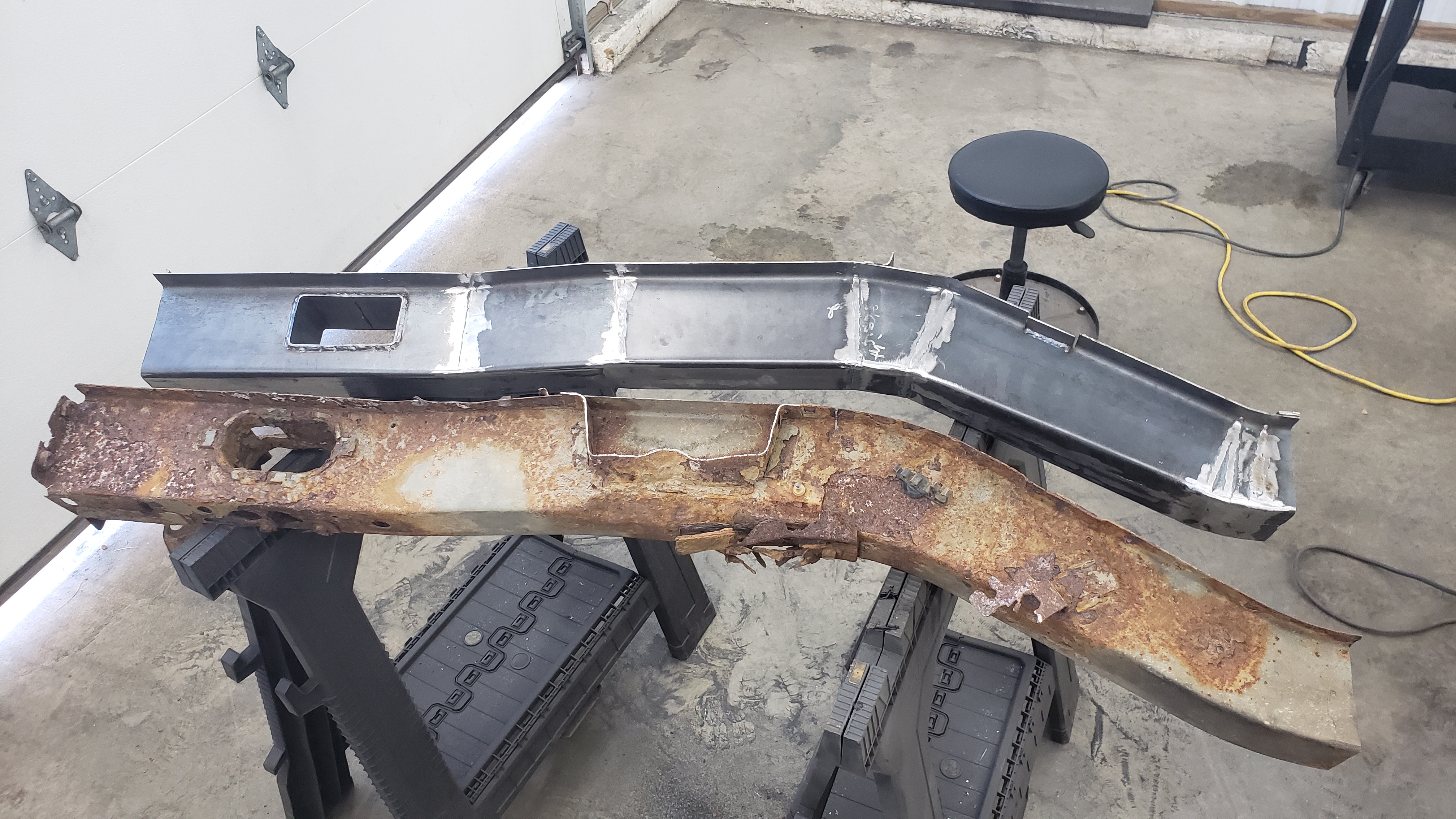 Test fitting of the new frame rail. I had the driver side frame rail pieces already laying around because I fabricated them back when I was doing the passenger side.