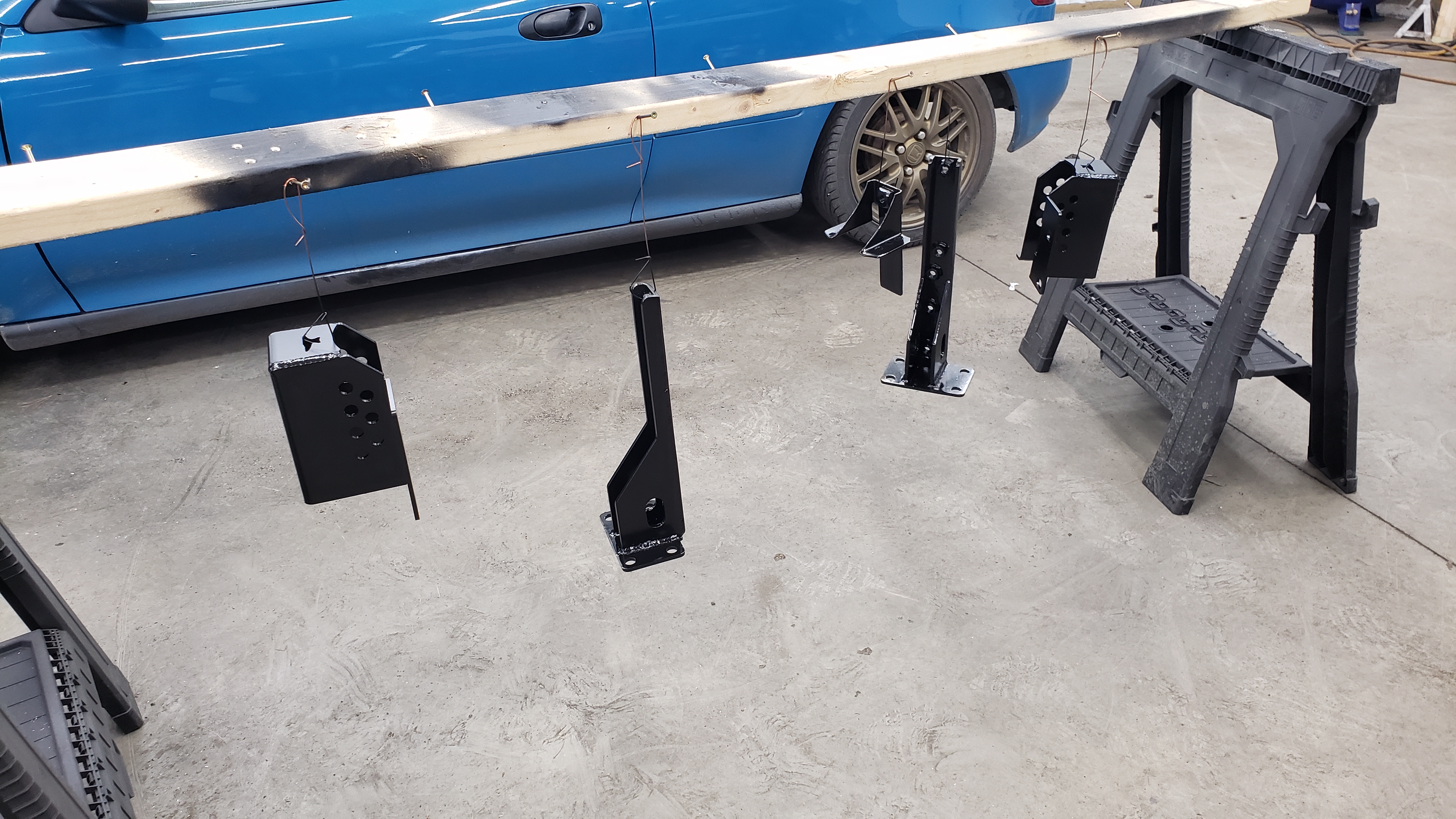The shackle brackets are made by Ironman 4x4, and the frame tie in brackets are just no name ones from Ebay. Both are made from 3/16".