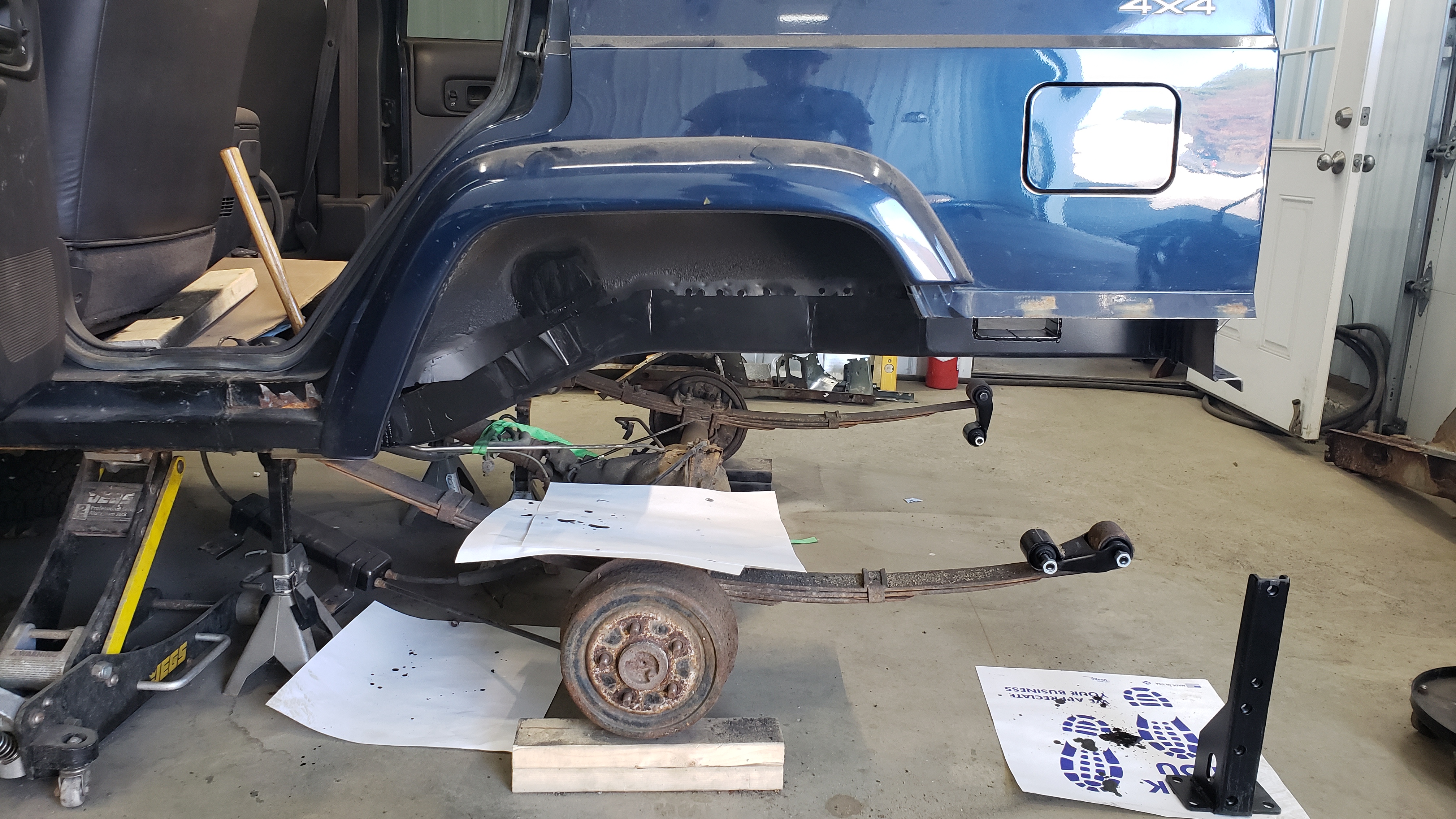 The rusted out bracket below the remnants of the shock crossmember appears to be what was once a sway bar mount. Which is a little odd because my XJ came with the Up Country package which deletes the rear sway bar.