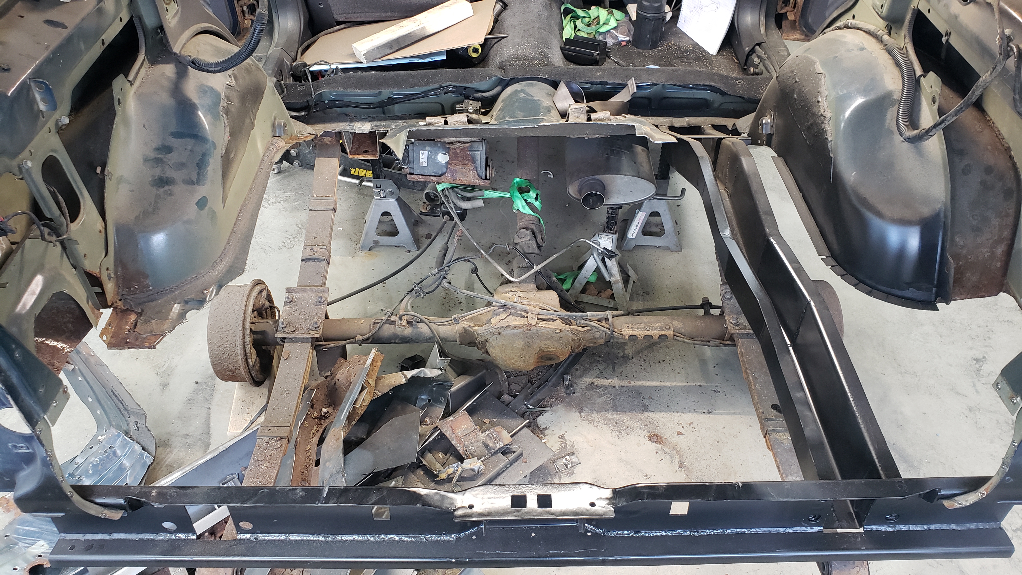 After that I took a deep breath and kept cutting. I needed to remove the entire rear floor along with the shock crossmember.