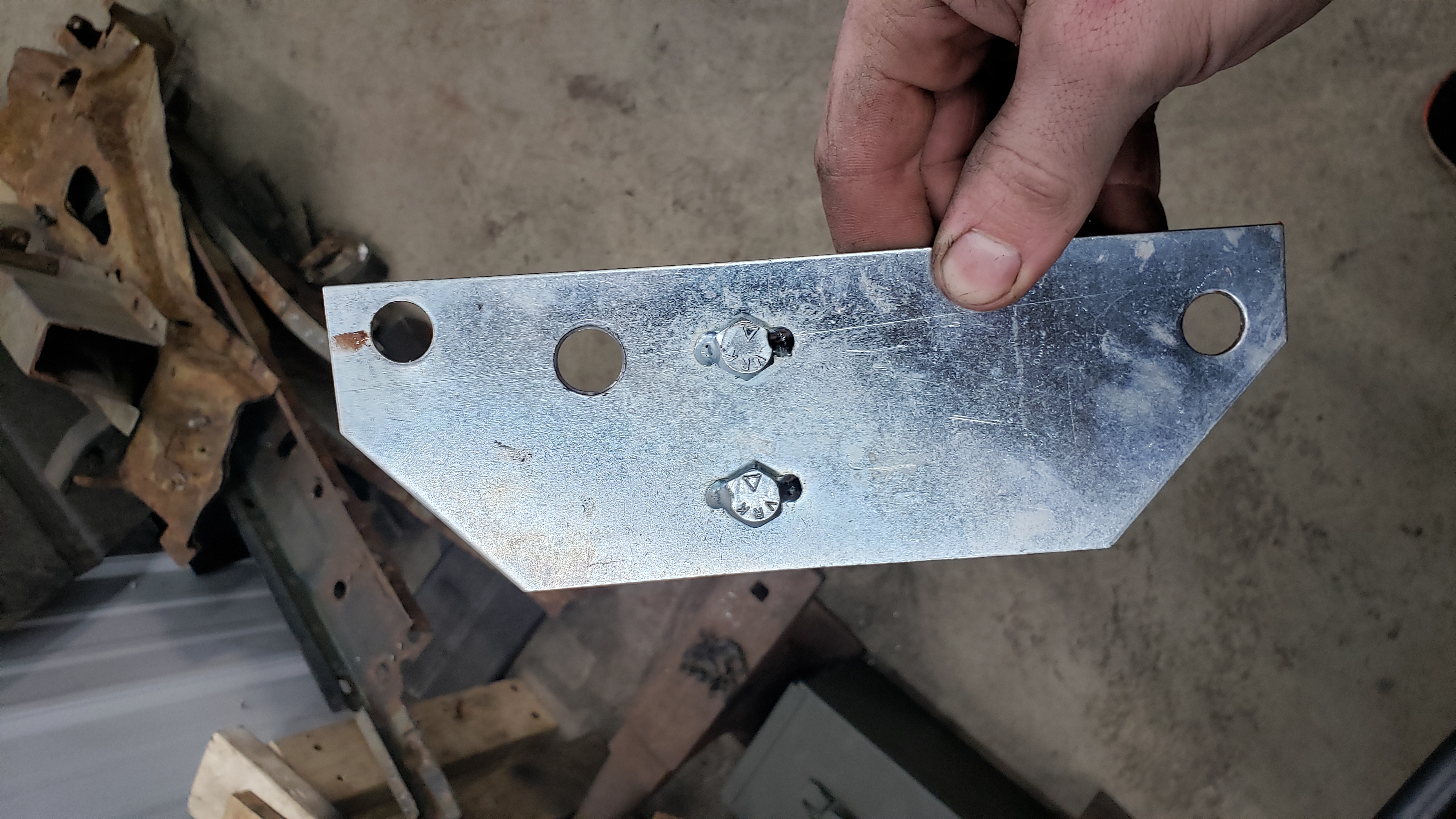 The upper half of the mount sits flush beneath the frame and has two studs coming out of it. But for one it was missing a bolt hole, and two had two bolts welded in place instead of studs that would be rubbing up against my brand new frame.
