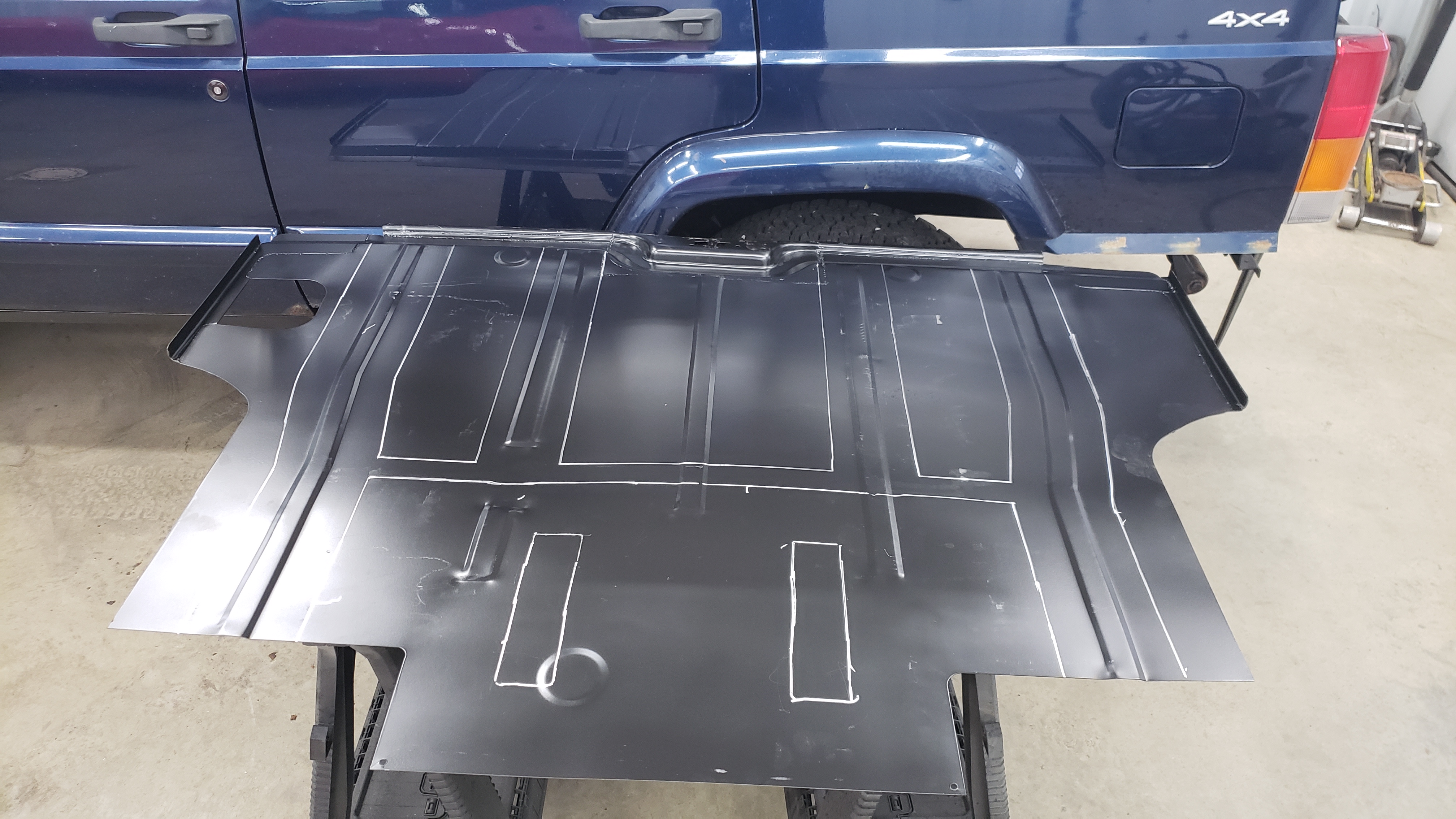 I didn’t want to try to salvage the original cargo area floor from my Jeep. It had rusted through in several spots, and I kinda chopped it up into several pieces because I only removed bits of it as a time when I was fabricating the new frame rails.
