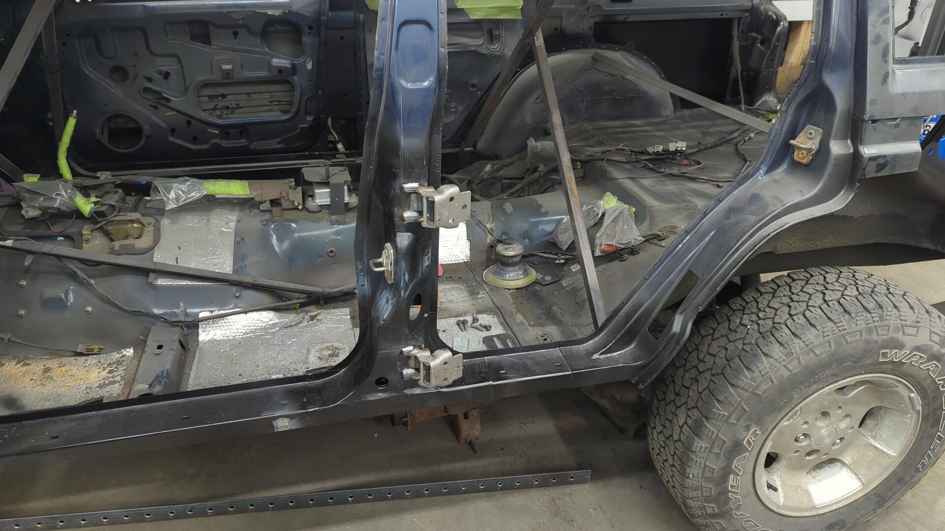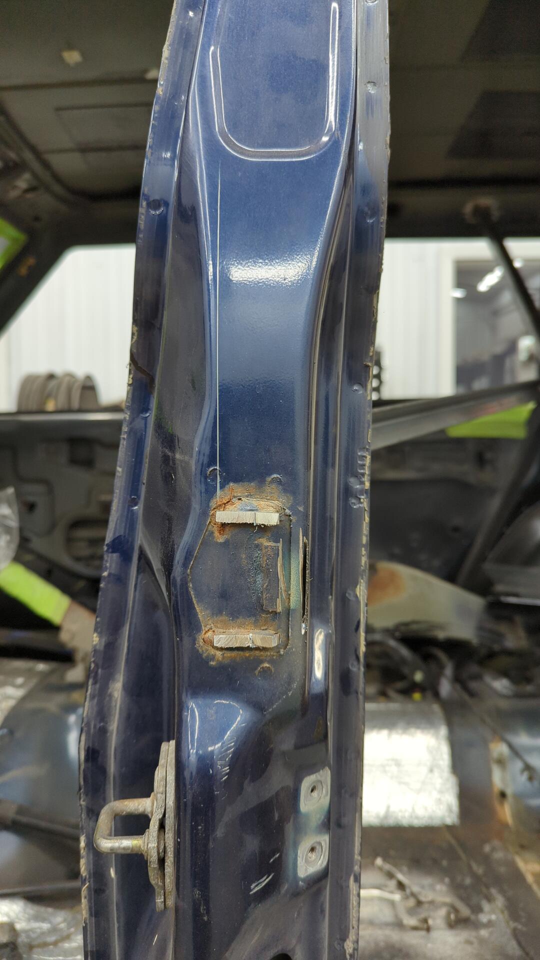 I still need to weld in the new rear door hinges but needed the front door mocked up so I could properly position the hinges.