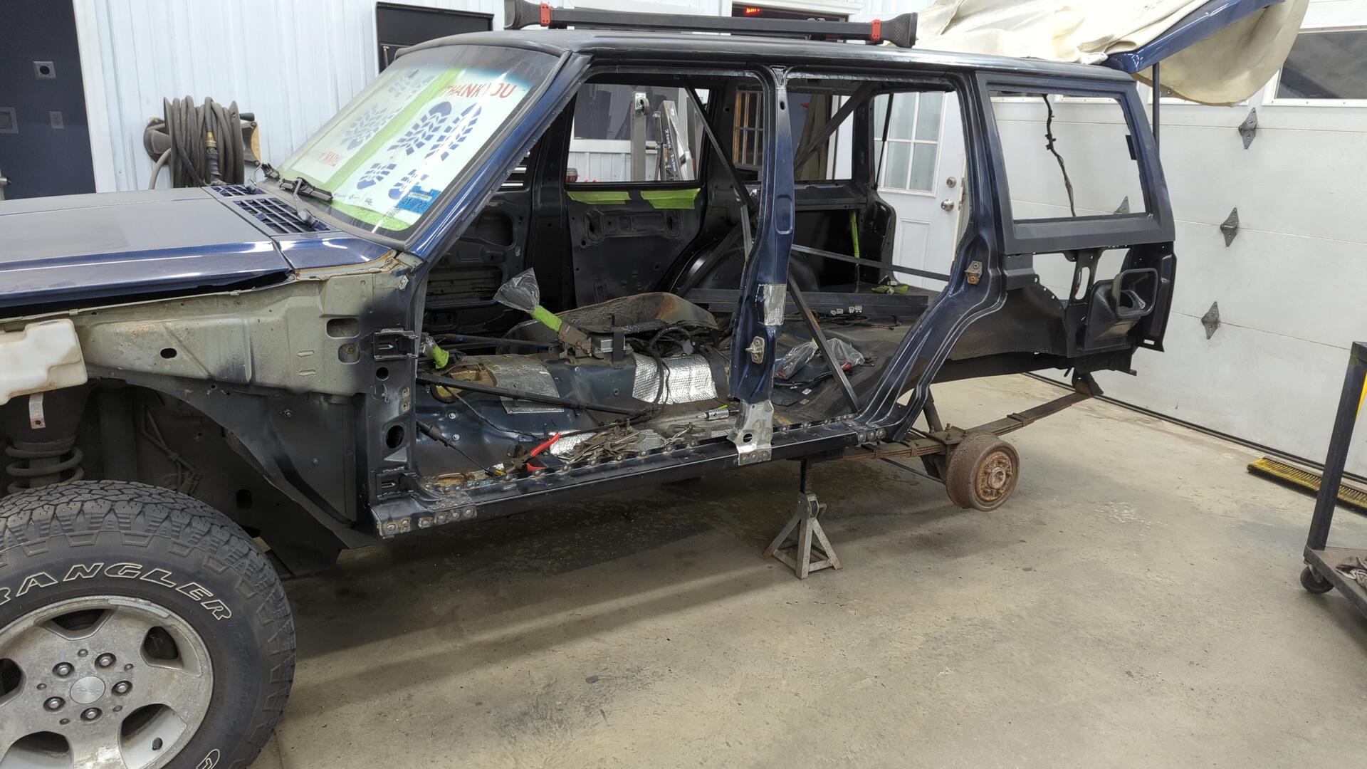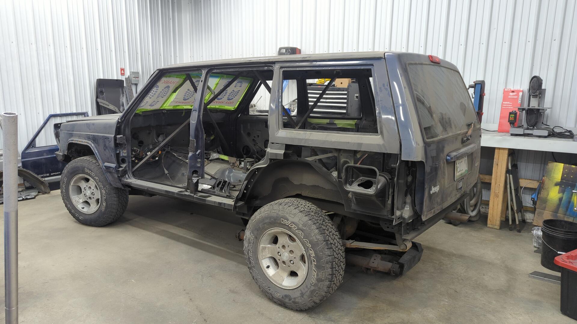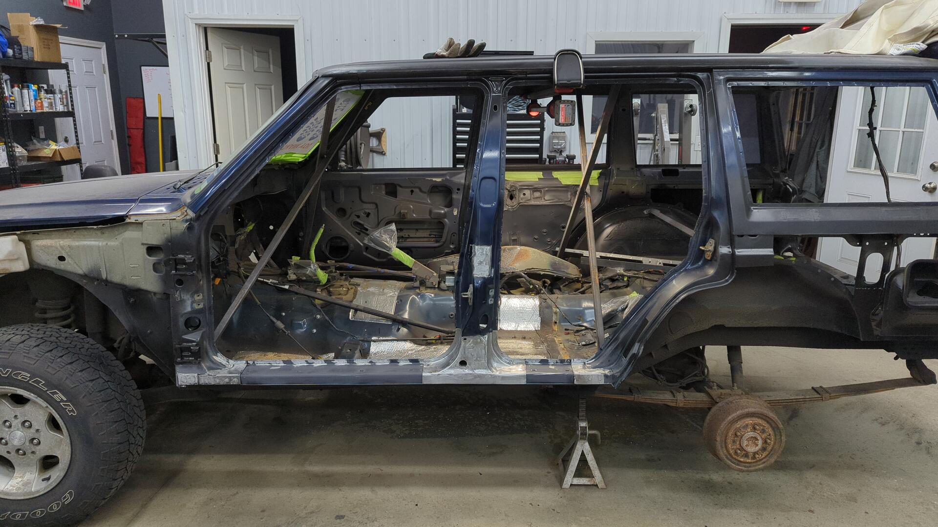 Prepping the rocker for paint. This is the last photo I took of the XJ in 2023.