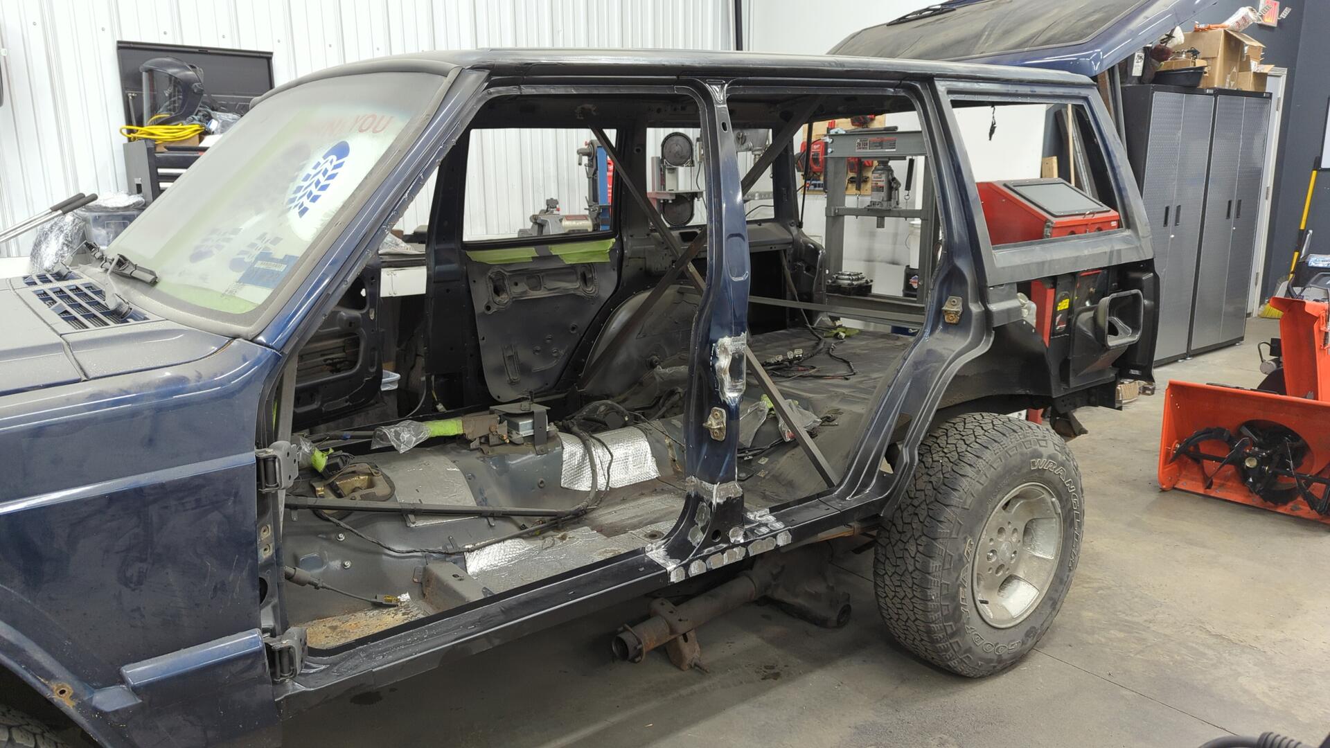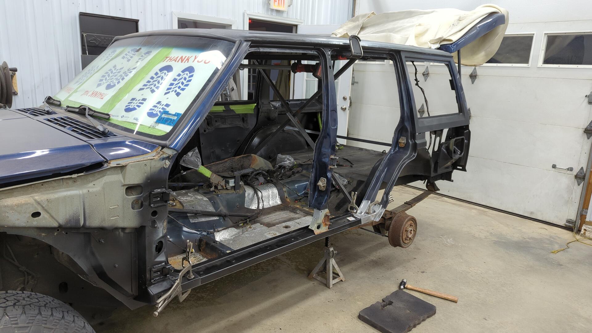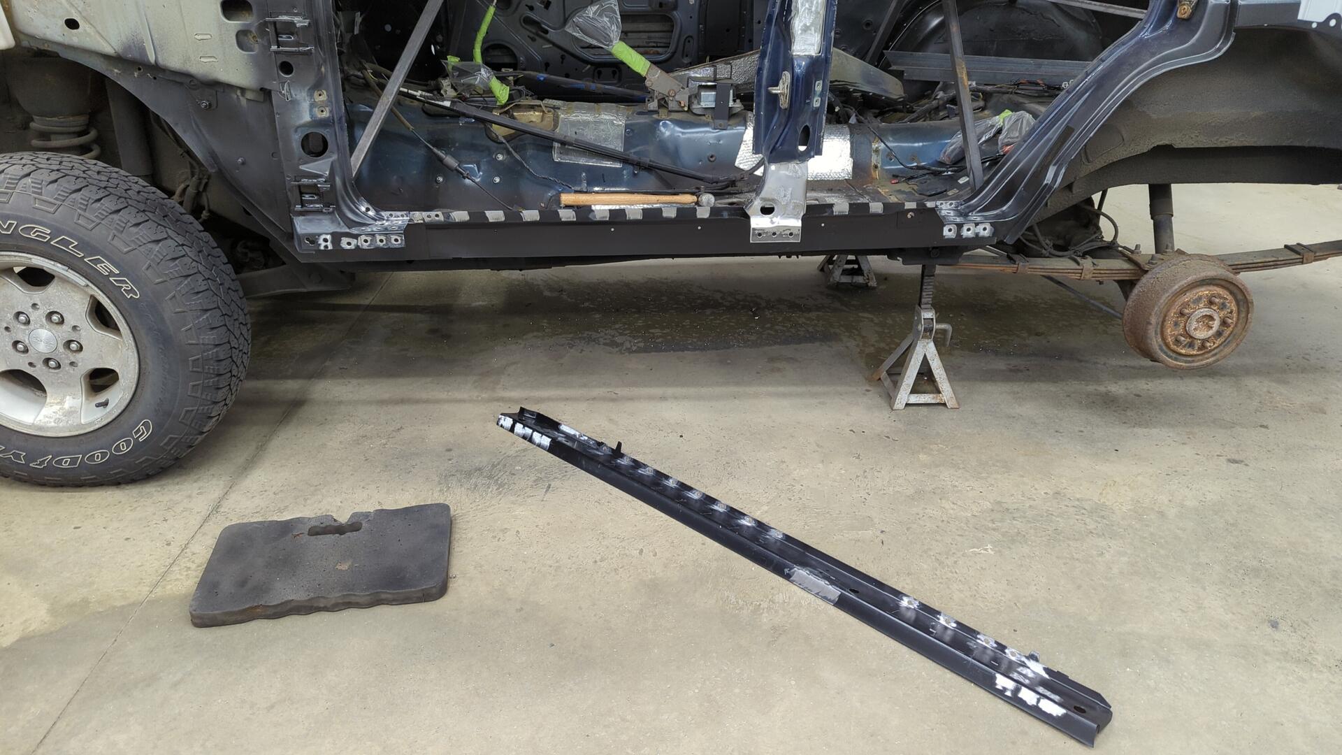 Prepping the rocker for paint. This is the last photo I took of the XJ in 2023.