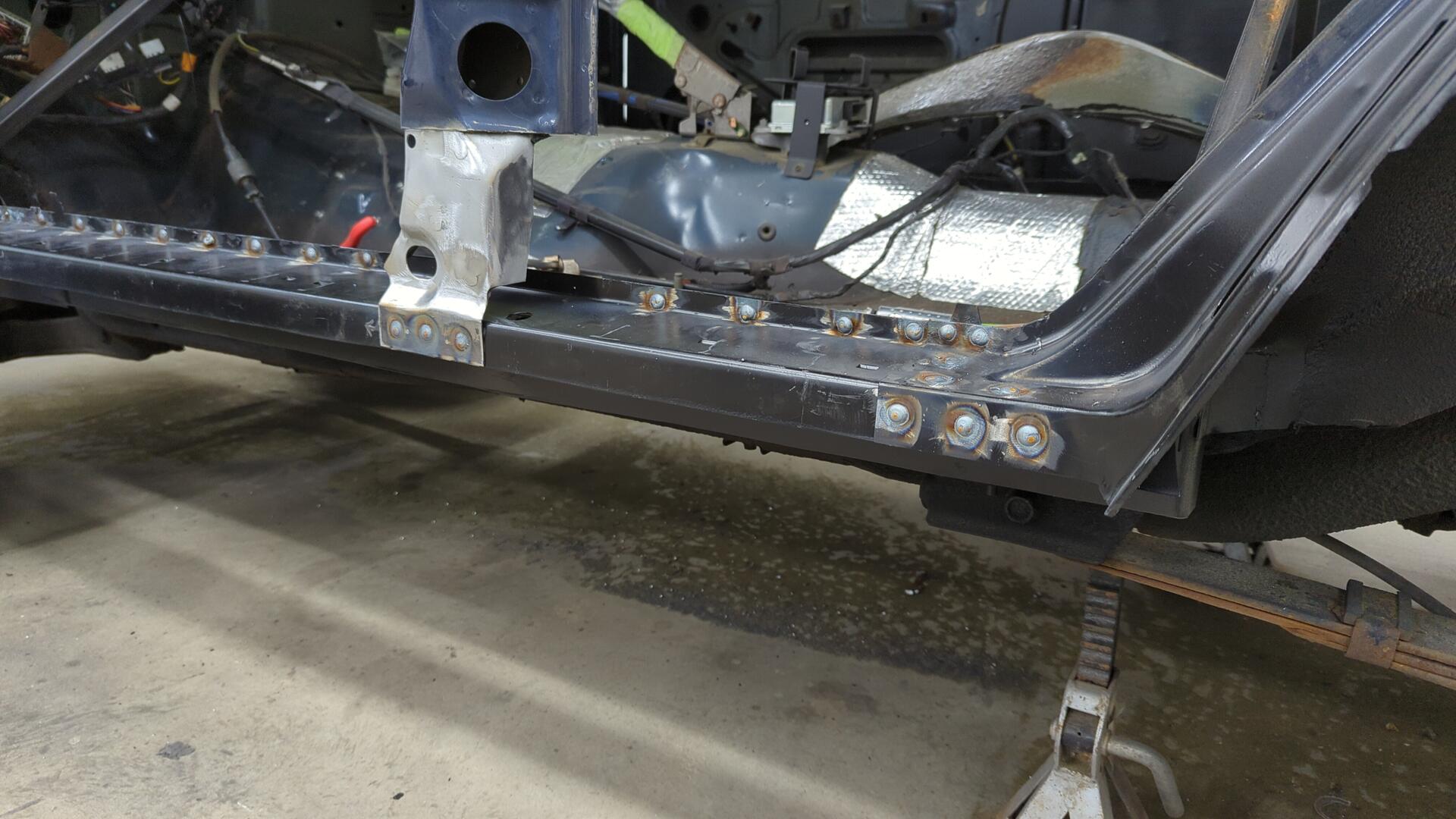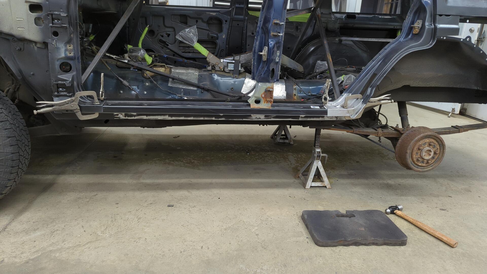 With the B pillar good to go, I started prepping to weld in the new outer rocker.
