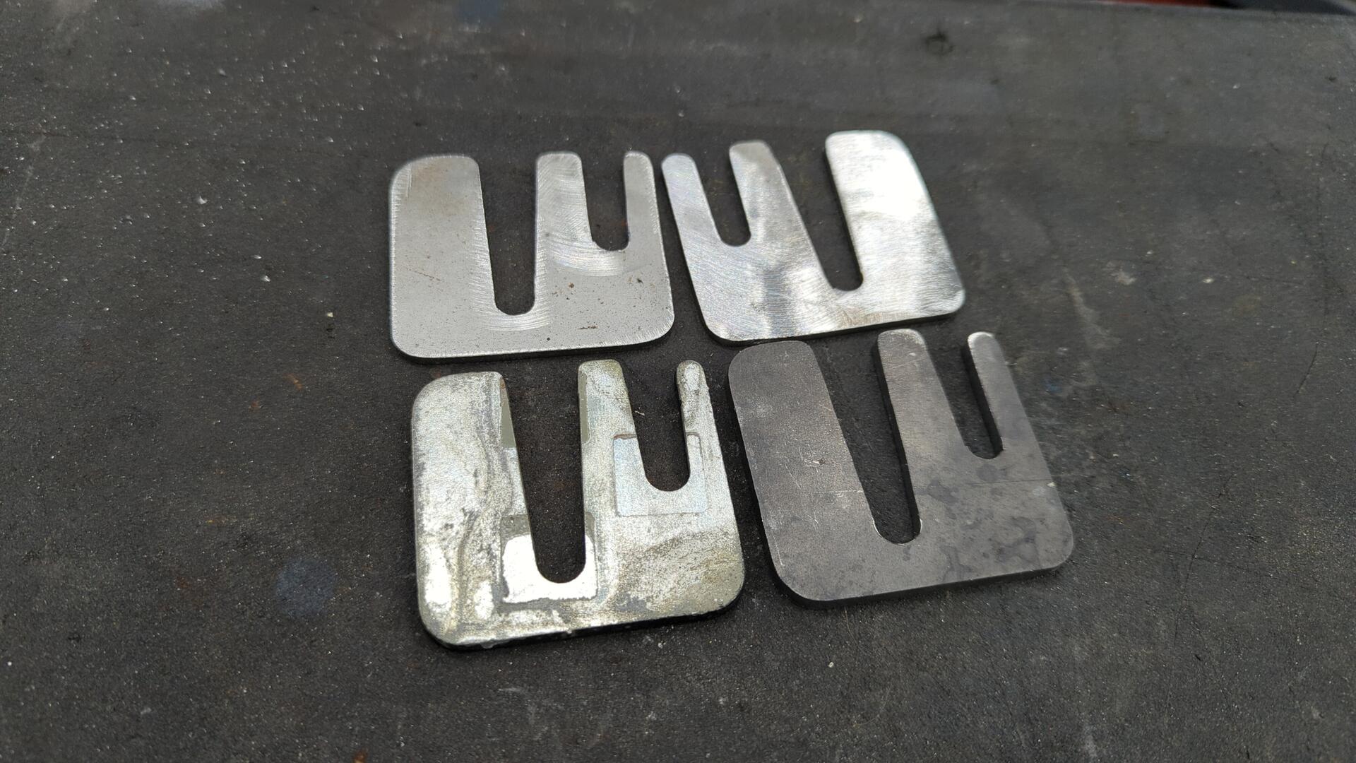 I had to make some new door hinge shims since I was missing some. Bottom two are 3/16" thick and top two are 1/8" thick.