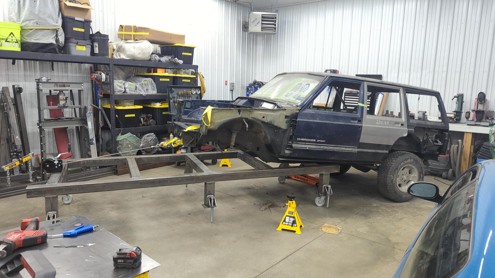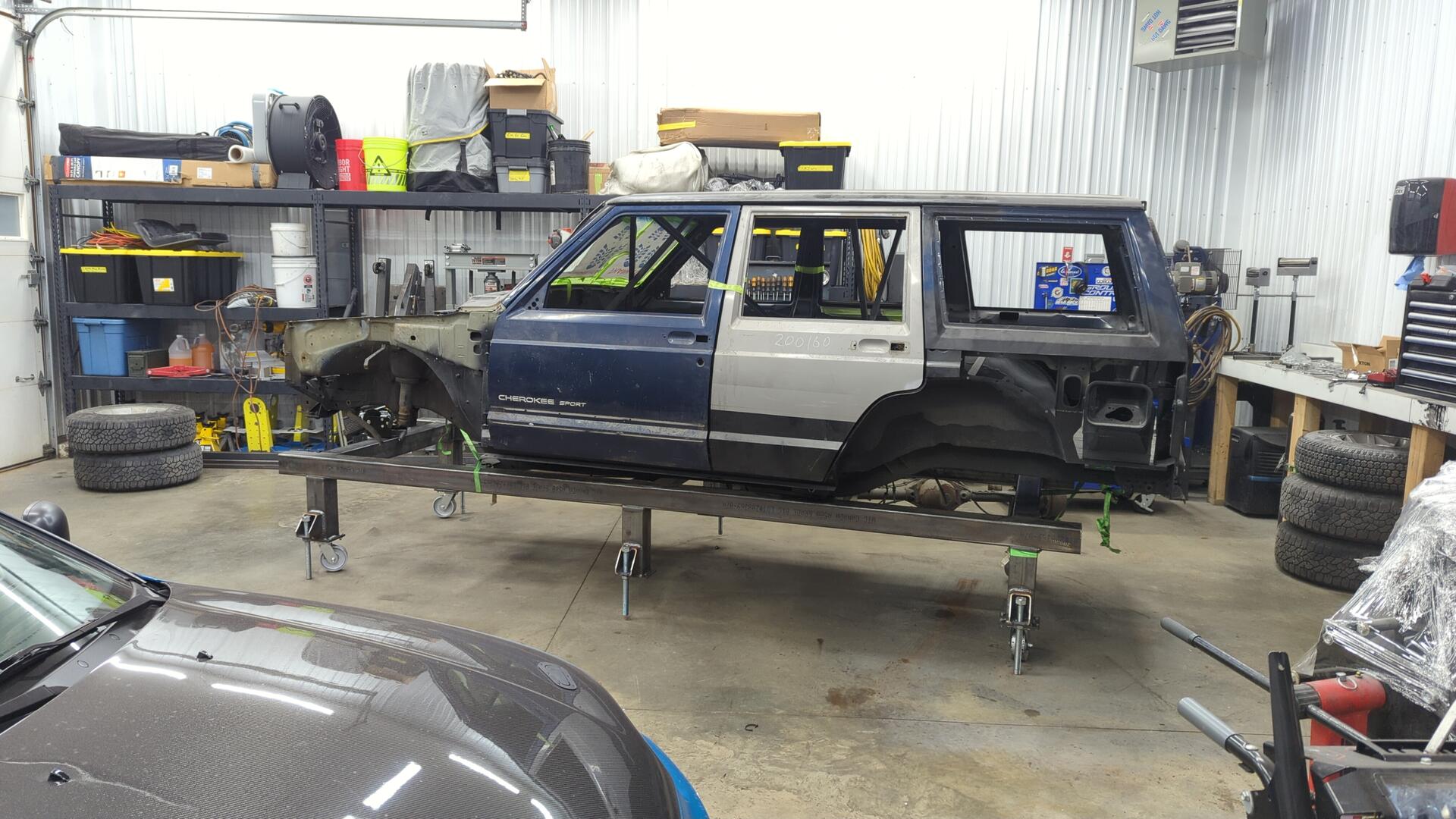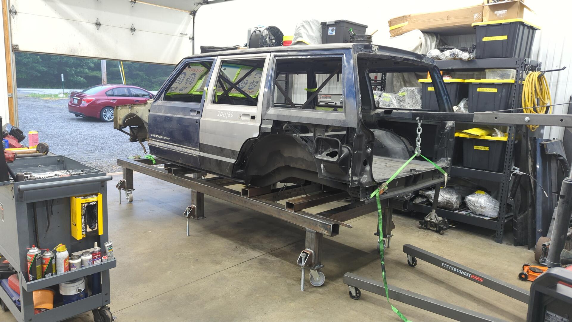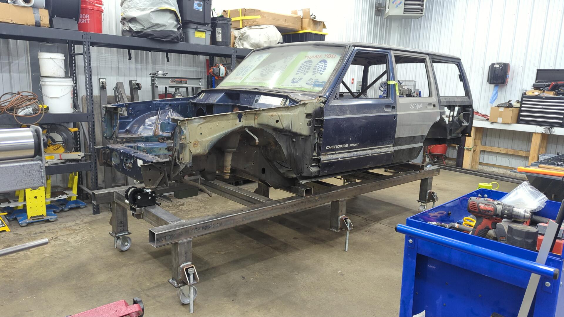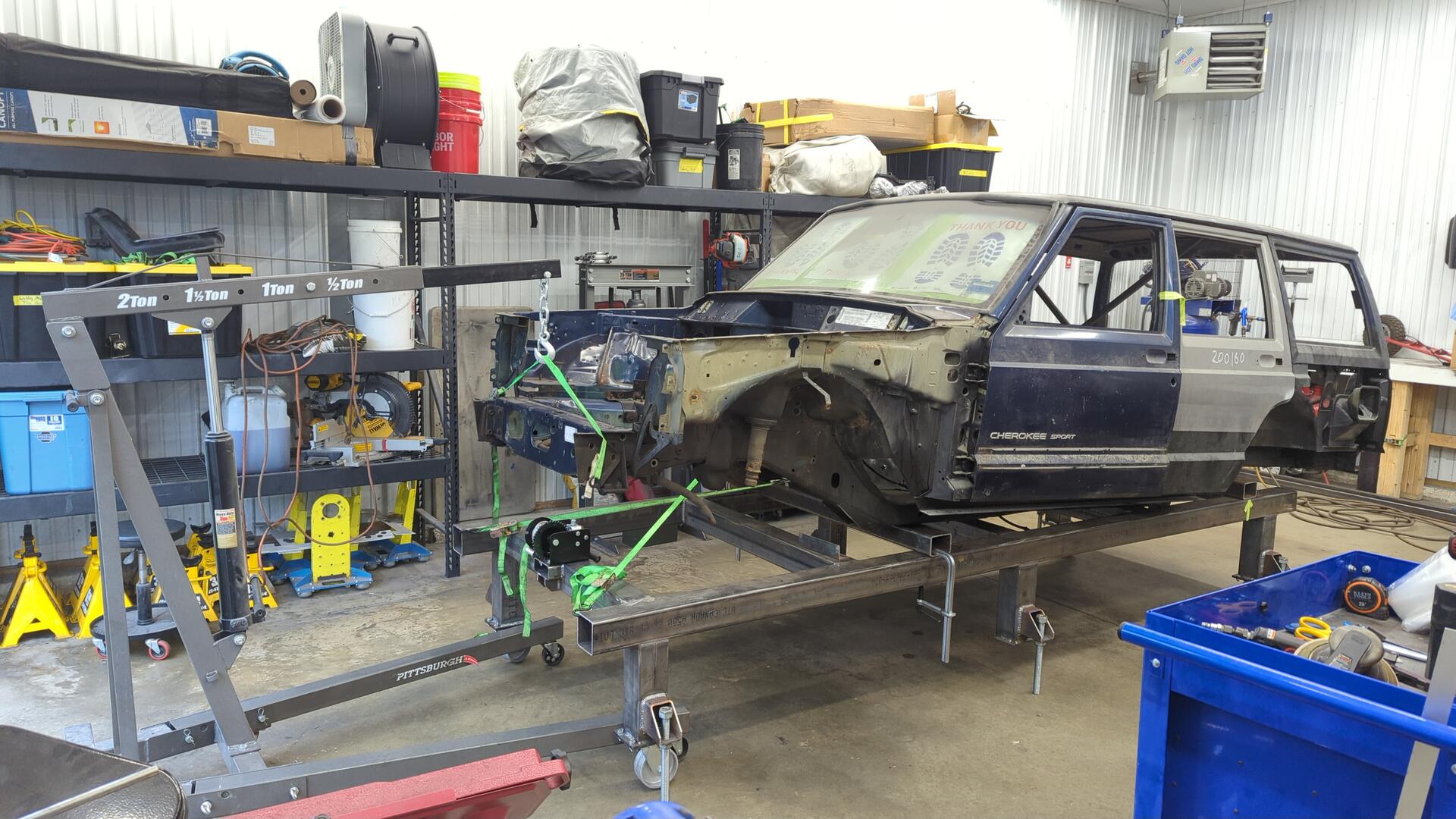 Rust Repair Part 22: Getting Jiggy With the XJ and Putting It on a Chassis Table