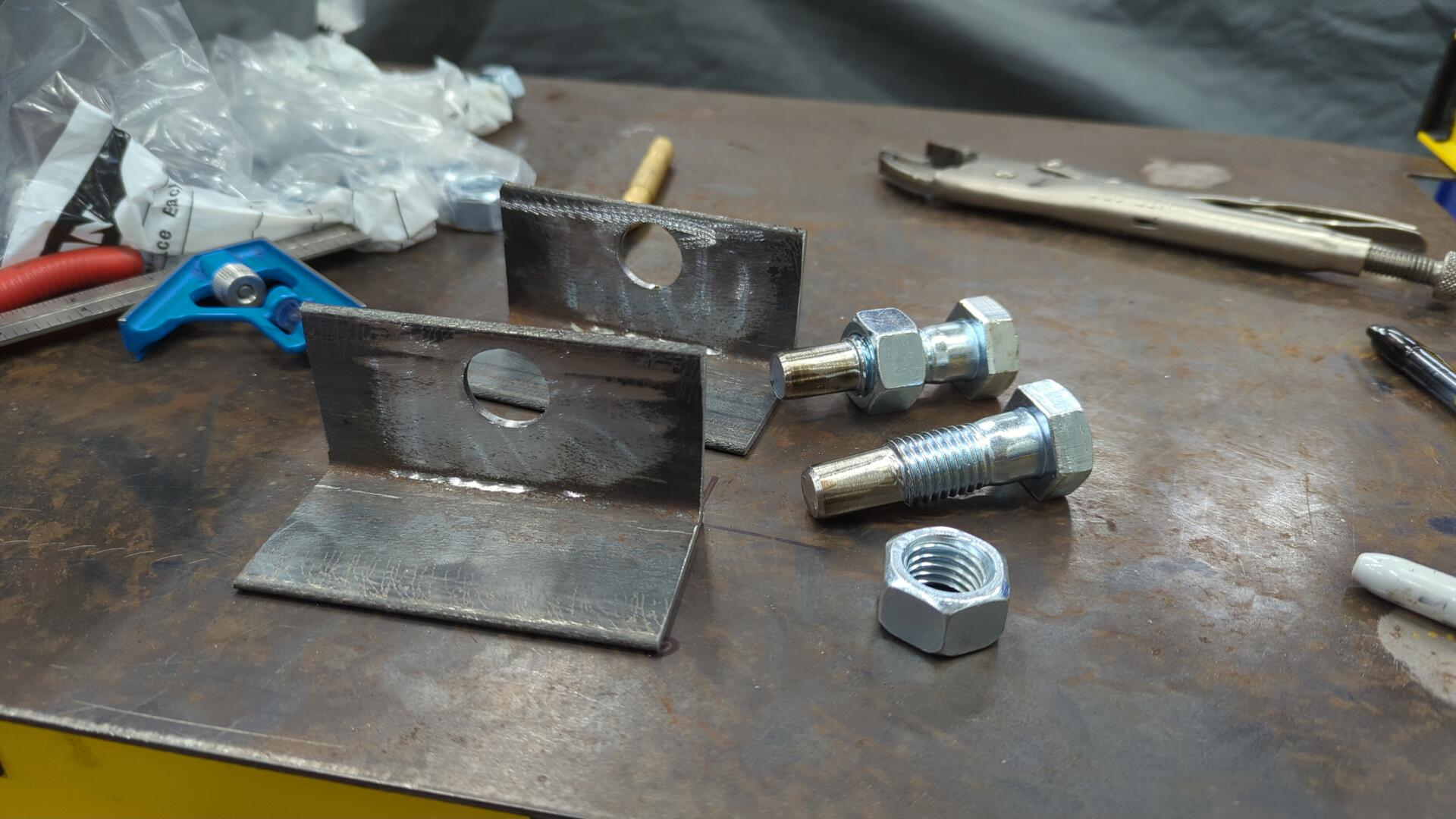 Then I made some positioning brackets out of 1/8" angle and 3/4" bolts that I grinded half the threads off of.