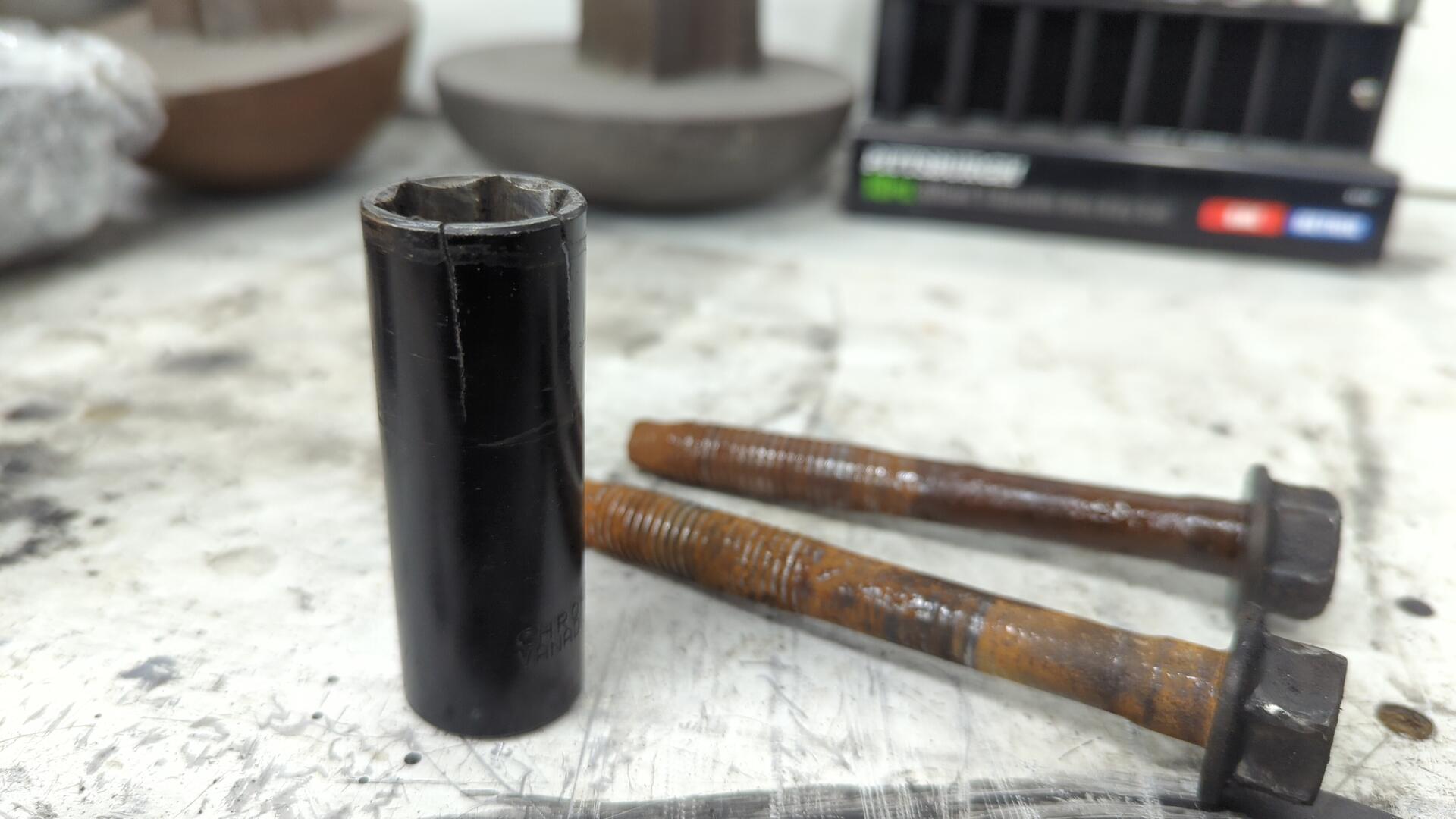 The rear bolts were much easier and came out without any trouble because they weren’t original and had also been protected by a nice thick layer of fluid film and dust.