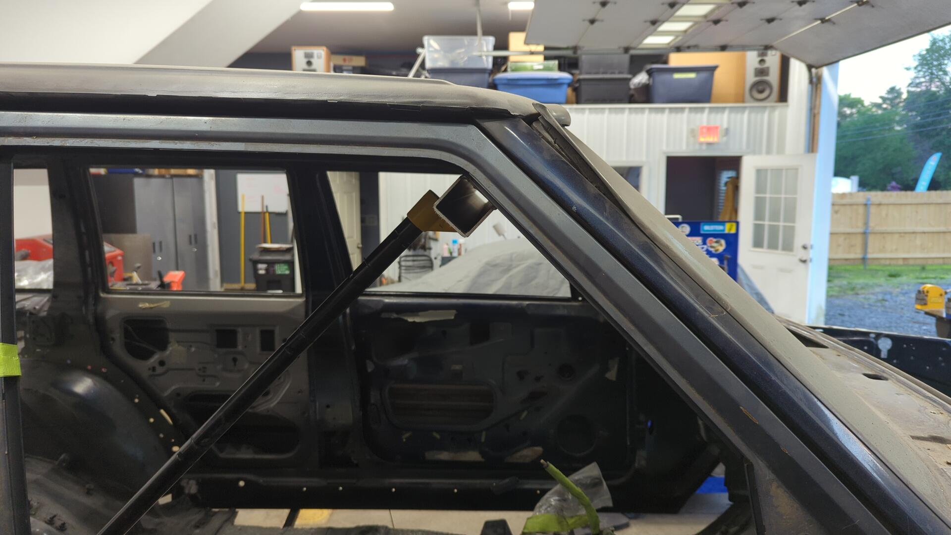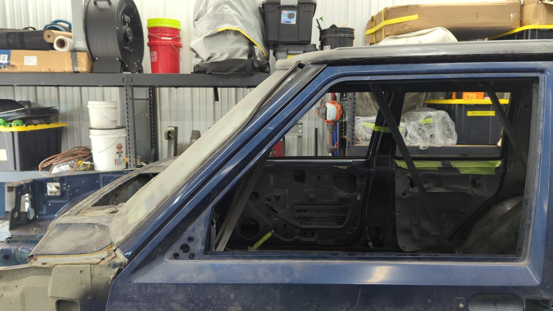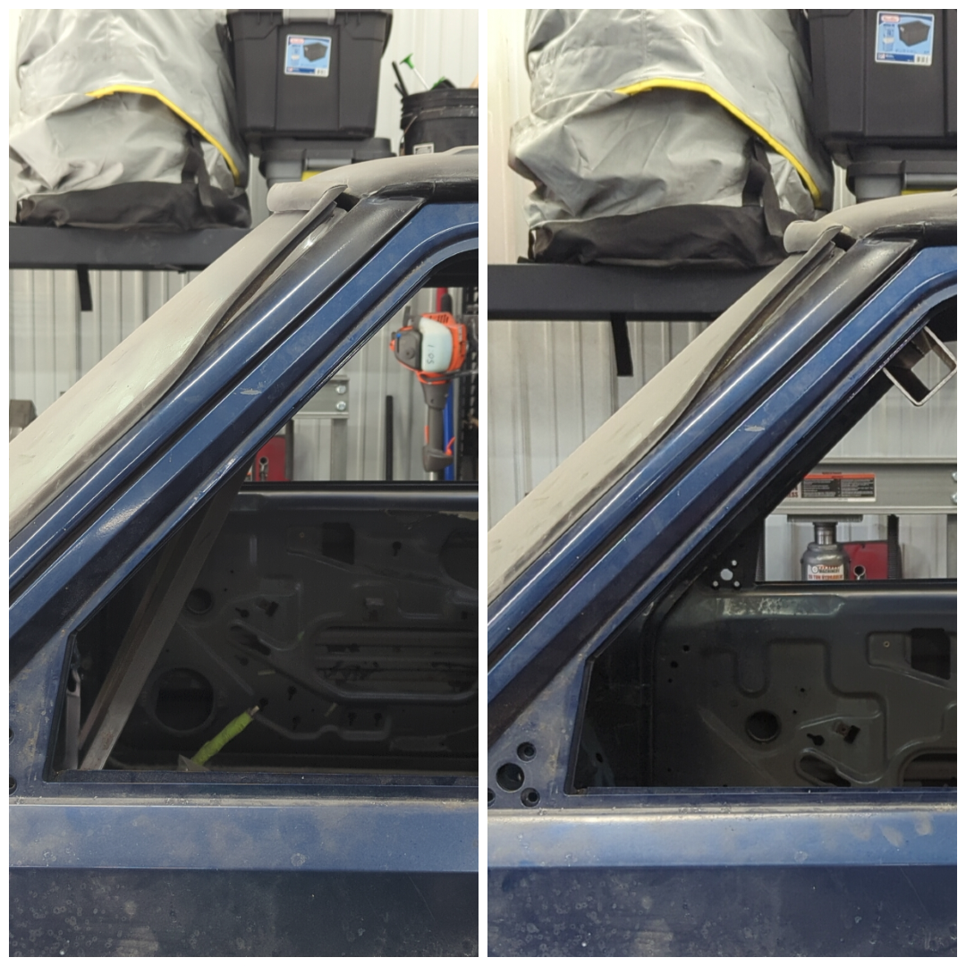 With the XJ sitting on the chassis table I felt it was time to address the windshield pillars not lining up with the front doors. The pillars are almost touching the top corner of each door because back when I was replacing the drip rails I didn’t brace the roof enough and it shifted.