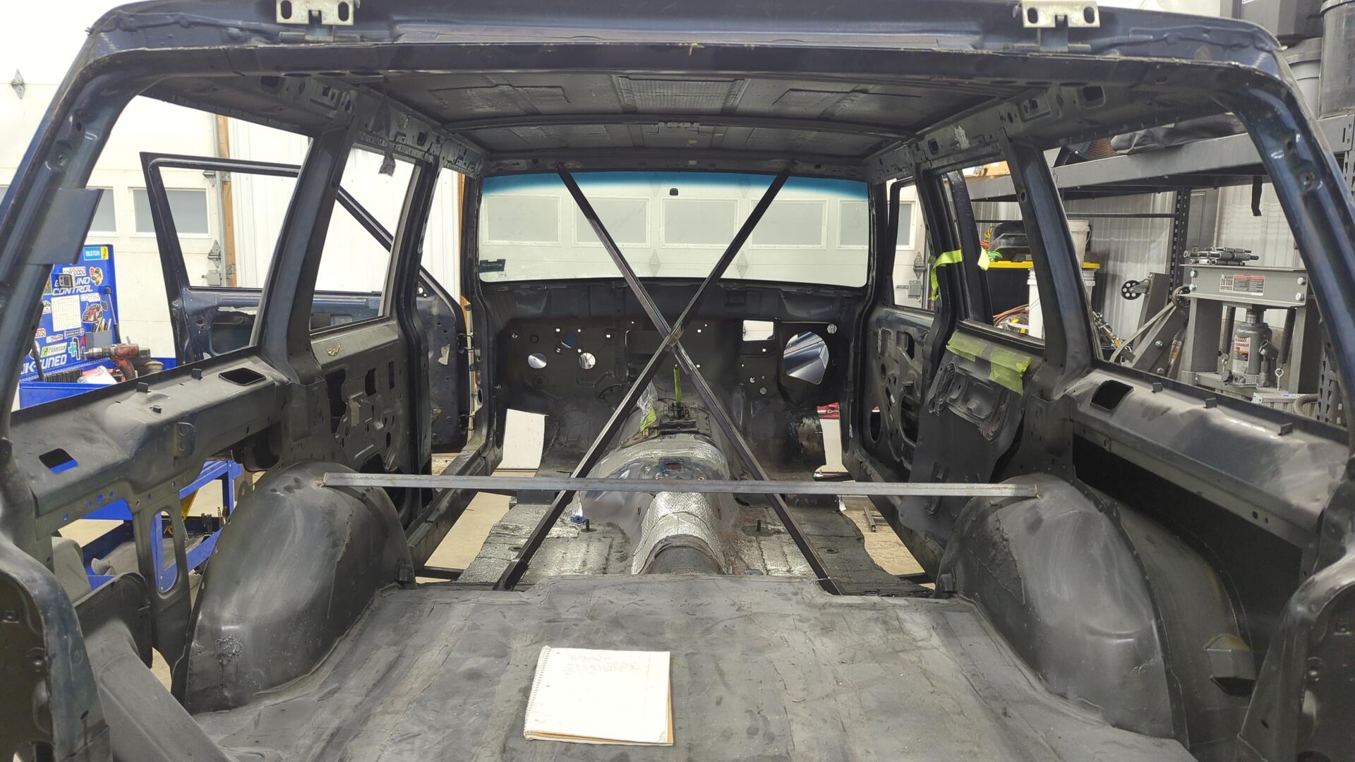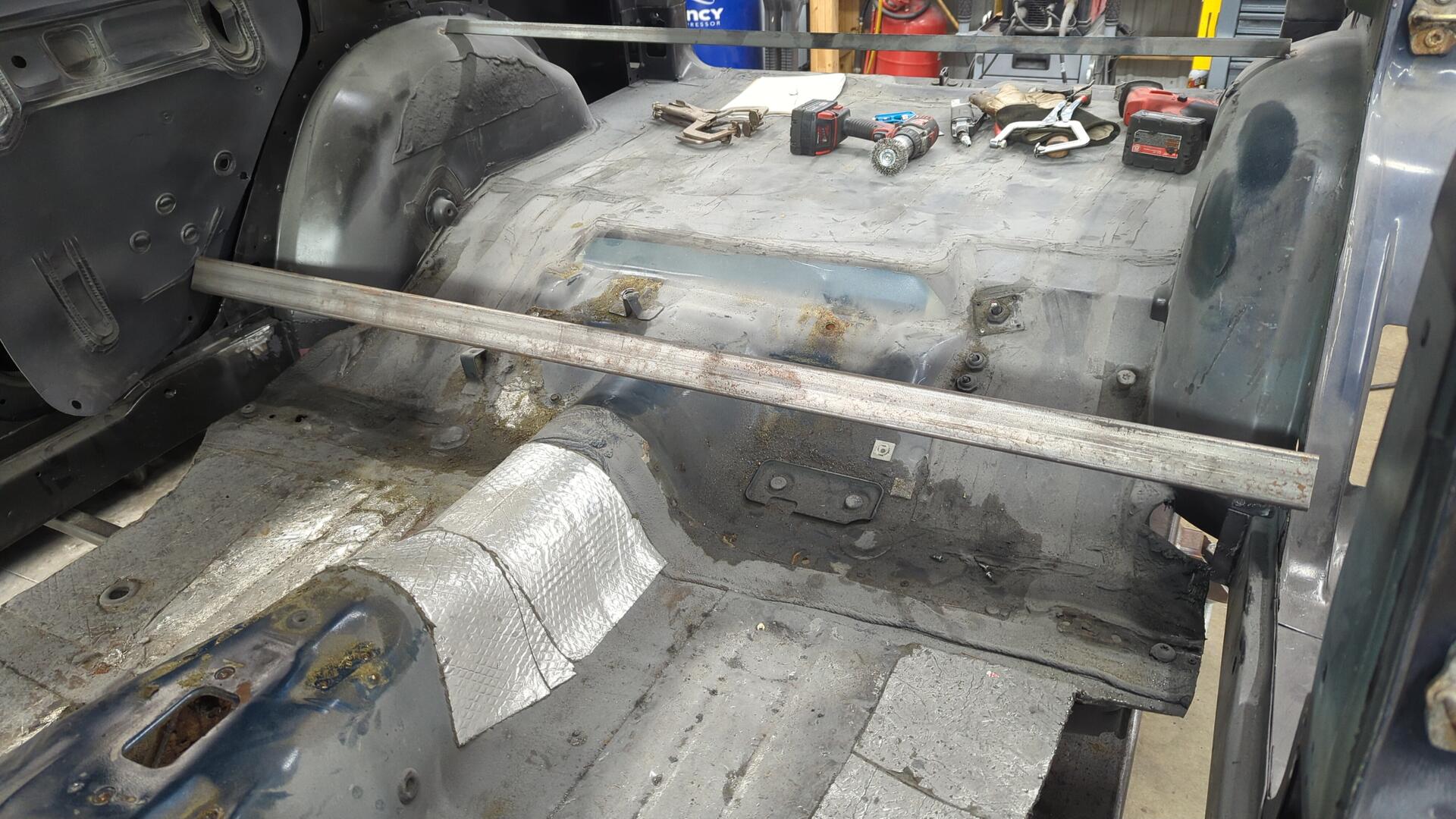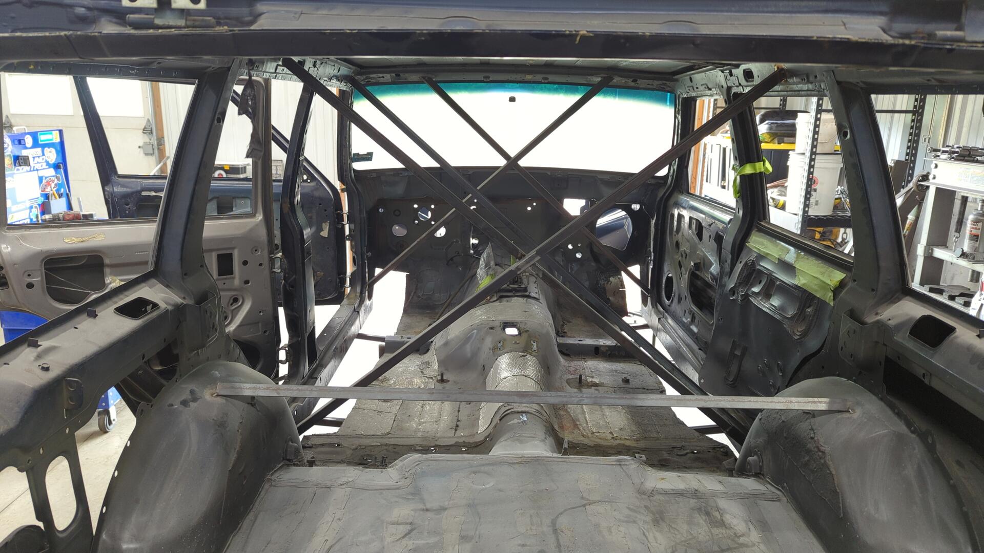 The lower tube ended up being a bad idea though as one of the door pinch welds started to crumple when I was pushing the driver side roof forward so I had to switch to angle welded on the floor above the frame.