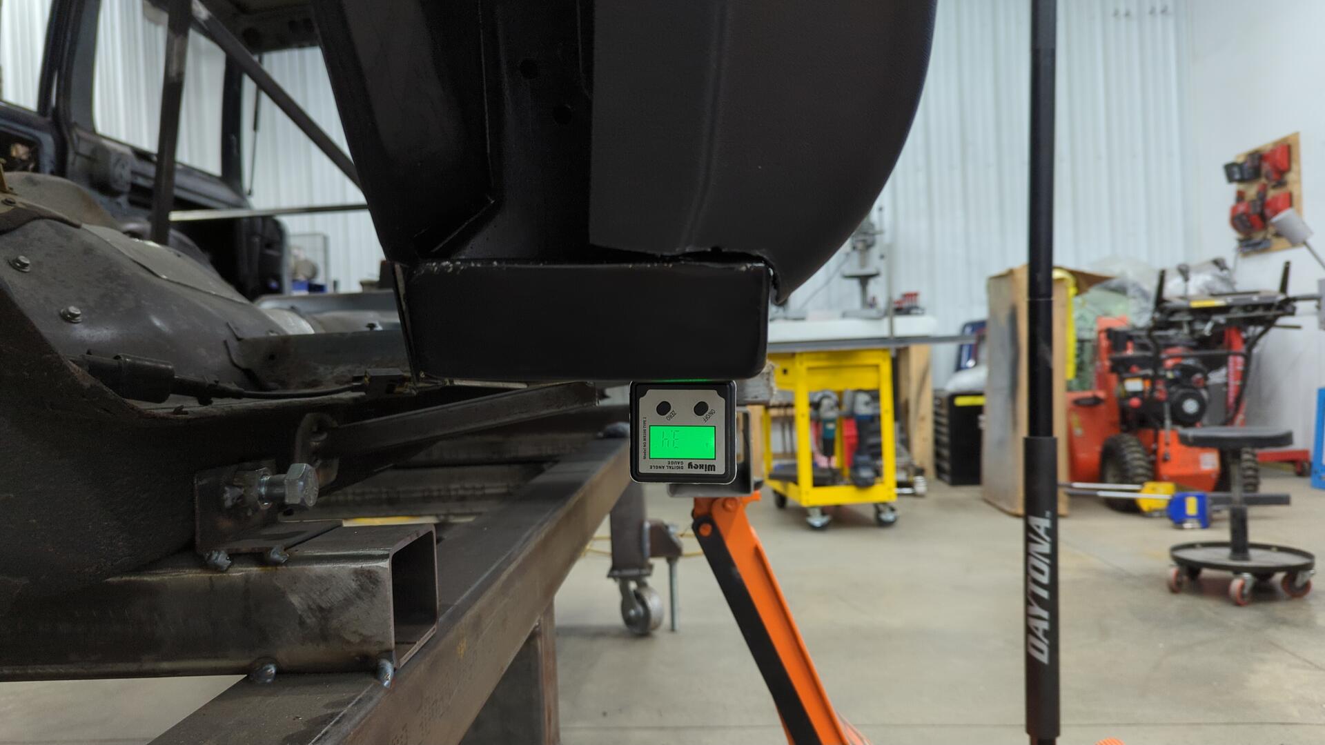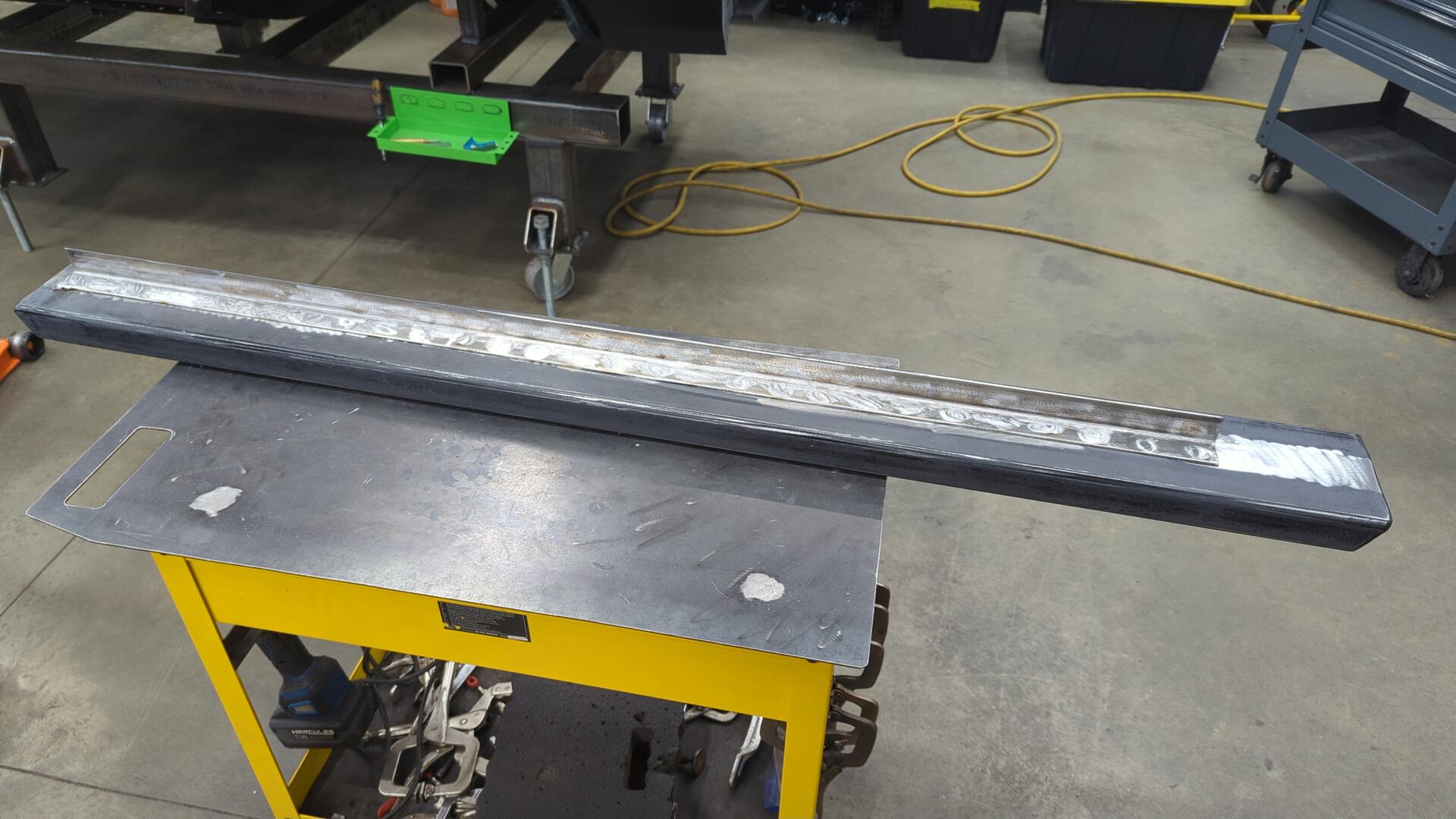 Final test fit of the 2x6 and upper bracket. The goal was to position the upper bracket to the 2x6 and tack it in place and then remove it for proper welding.