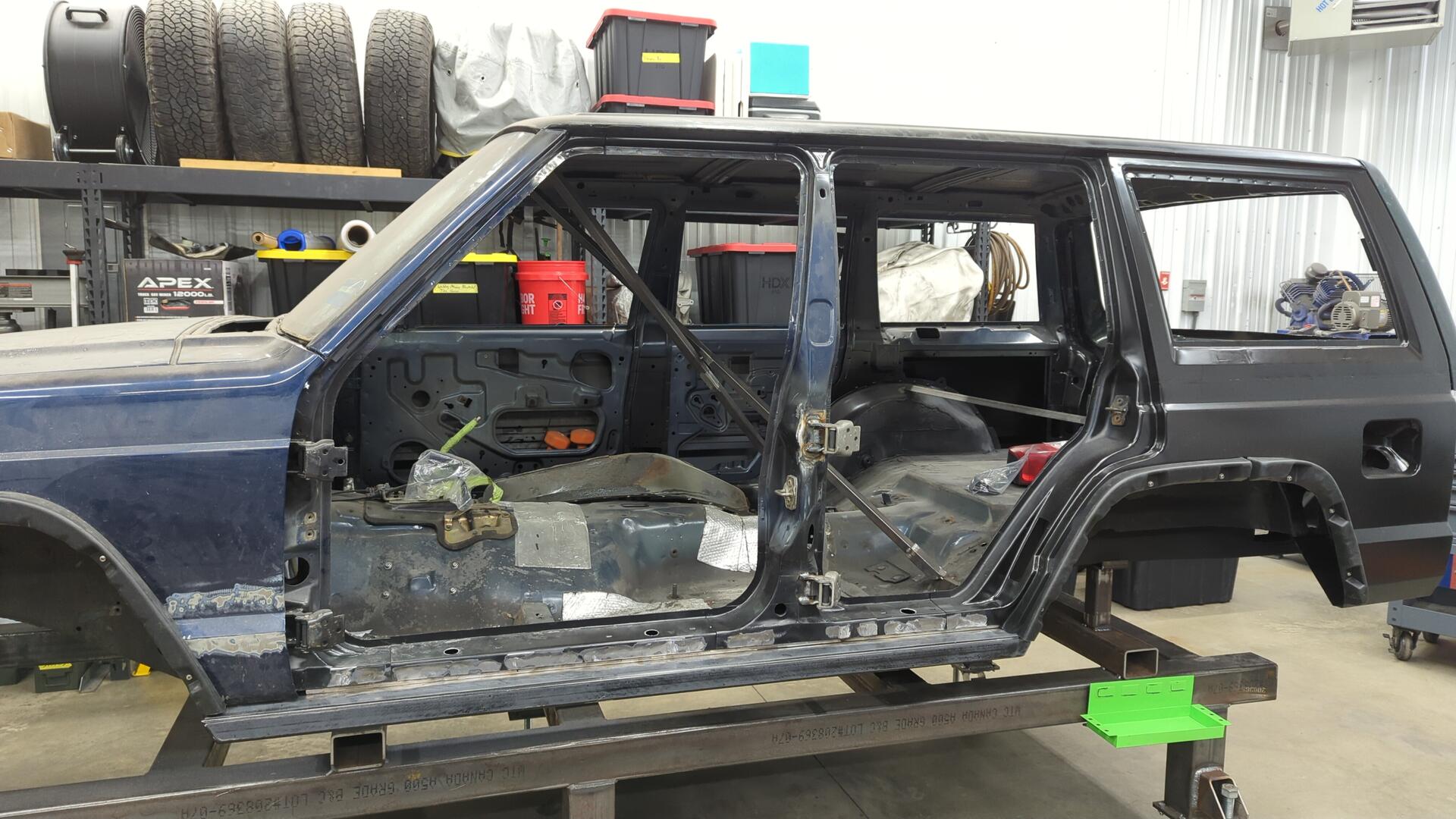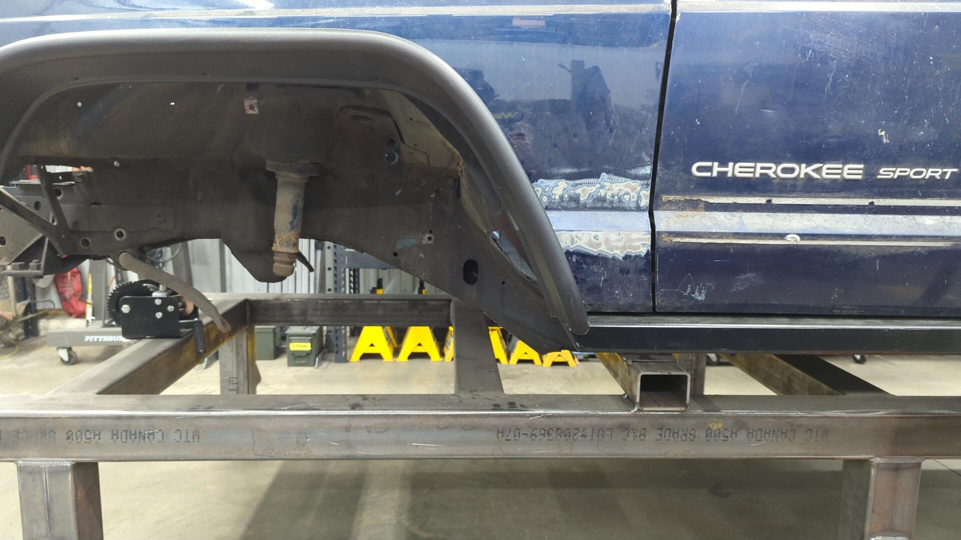 This wasn’t a problem on the passenger side because I did things in a different order and the quarter panel wasn’t welded on yet when I slid the 2x6 in/out. As a plan B I decided to make a cut in the bottom of the A pillar so I could slide it out the front. (The hole was properly patched later on)