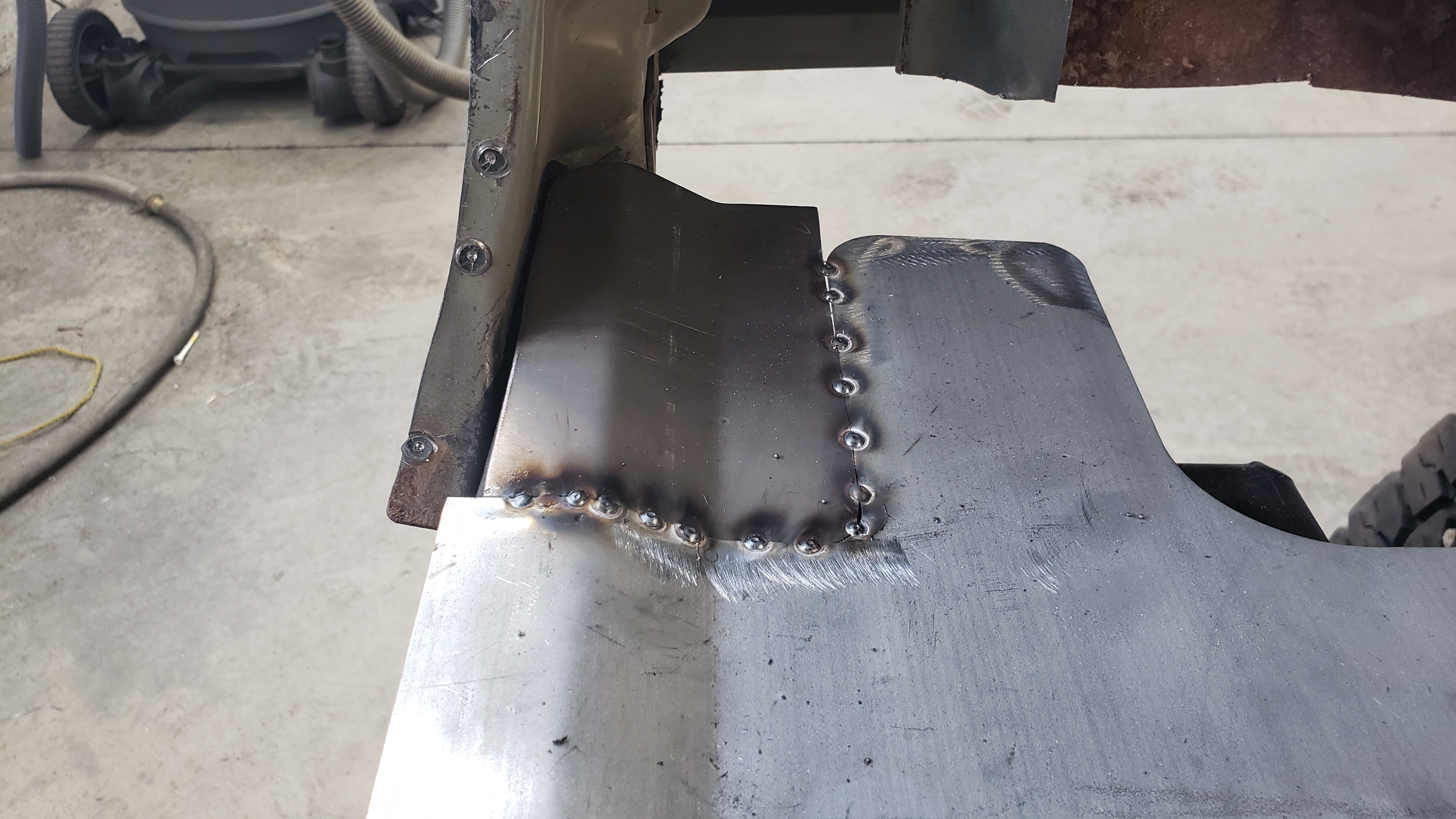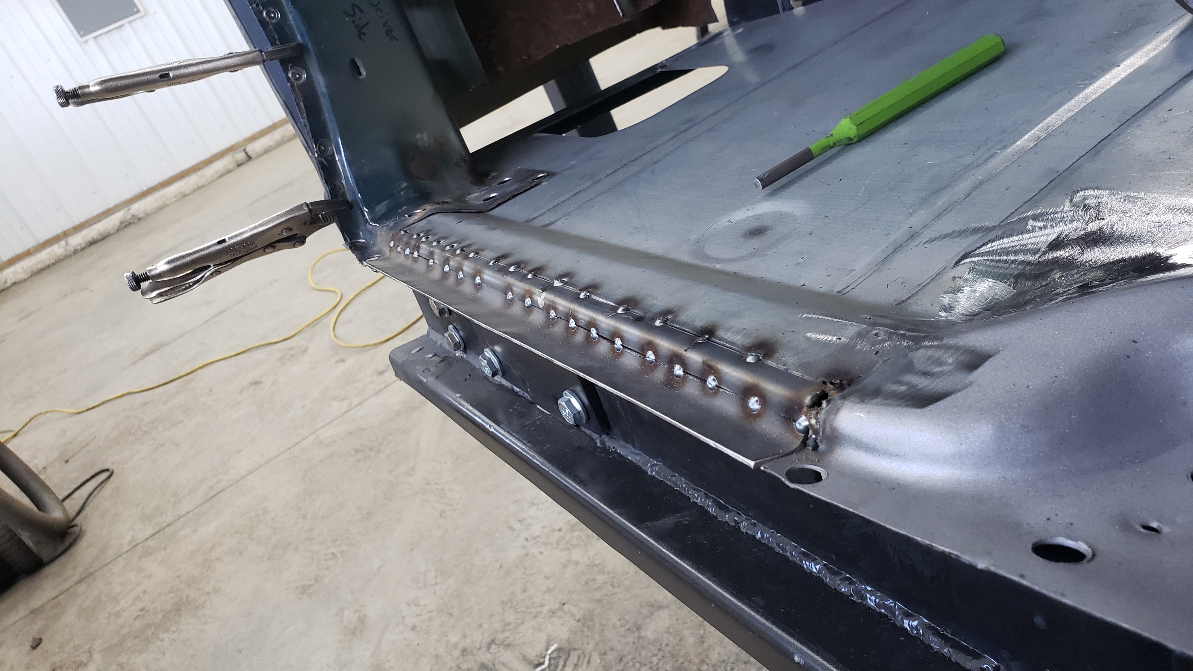 When I welded in the floor I didn’t bother to weld the wheel well lips up. The patch panel curves are pretty atrocious and don’t line up with the inner wheel wells very nicely. I decided I would just drill them on the spot and weld them since I didn’t care if they weren’t symmetrical.