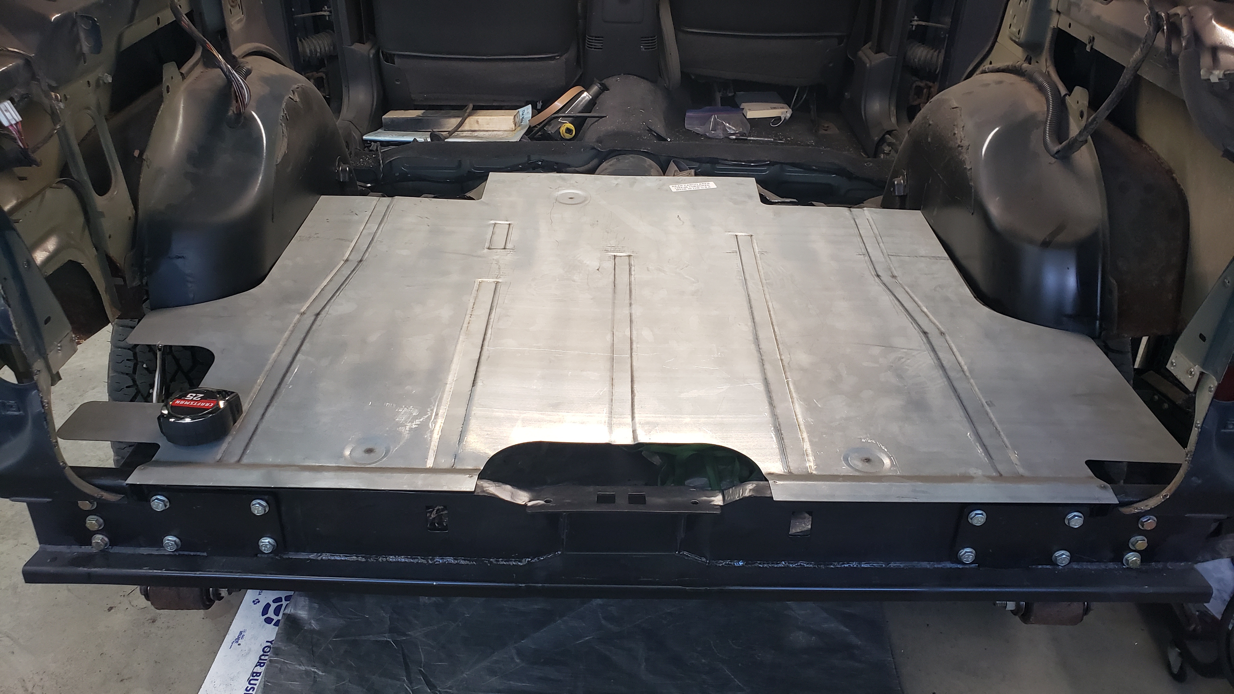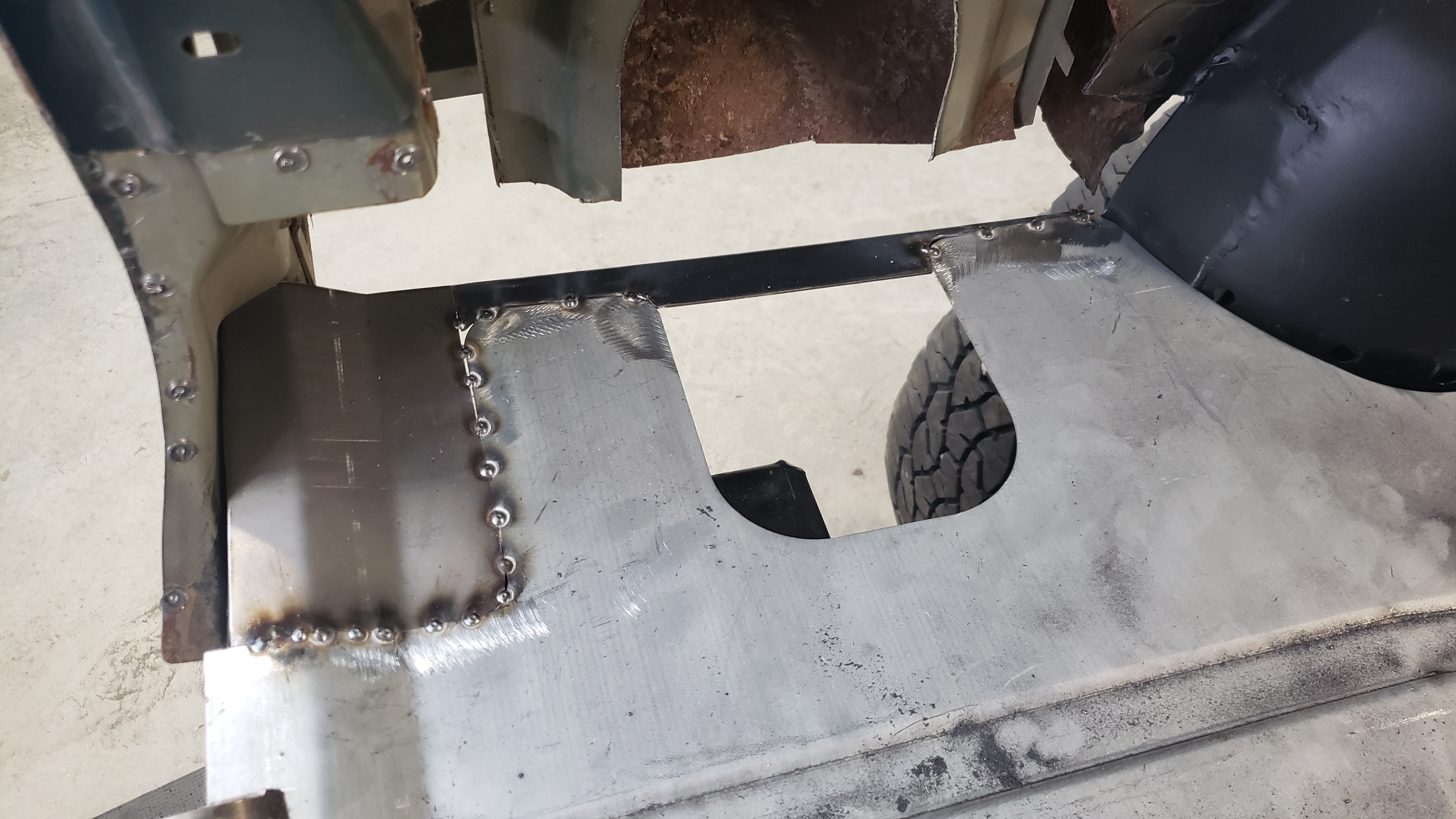 I didn’t want to try to salvage the original cargo area floor from my Jeep. It had rusted through in several spots, and I kinda chopped it up into several pieces because I only removed bits of it as a time when I was fabricating the new frame rails.