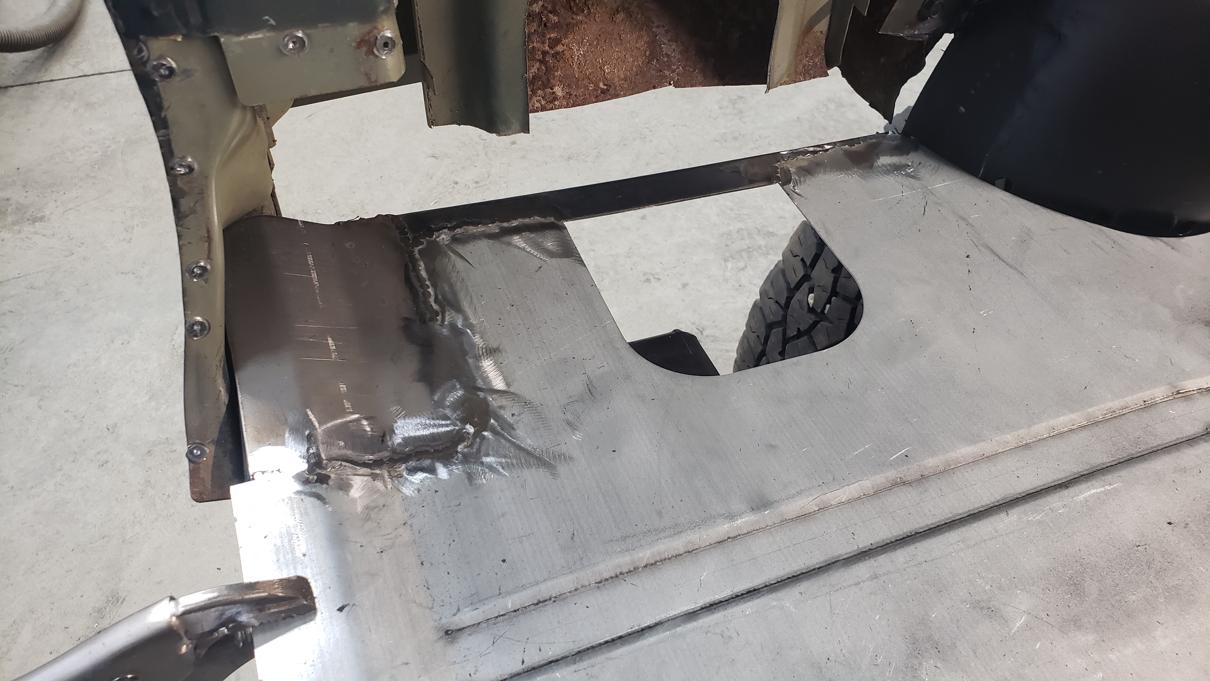 Once the lips were roughed in I removed the floor from the Jeep so I could finish up welding and finalize grinding everything up.