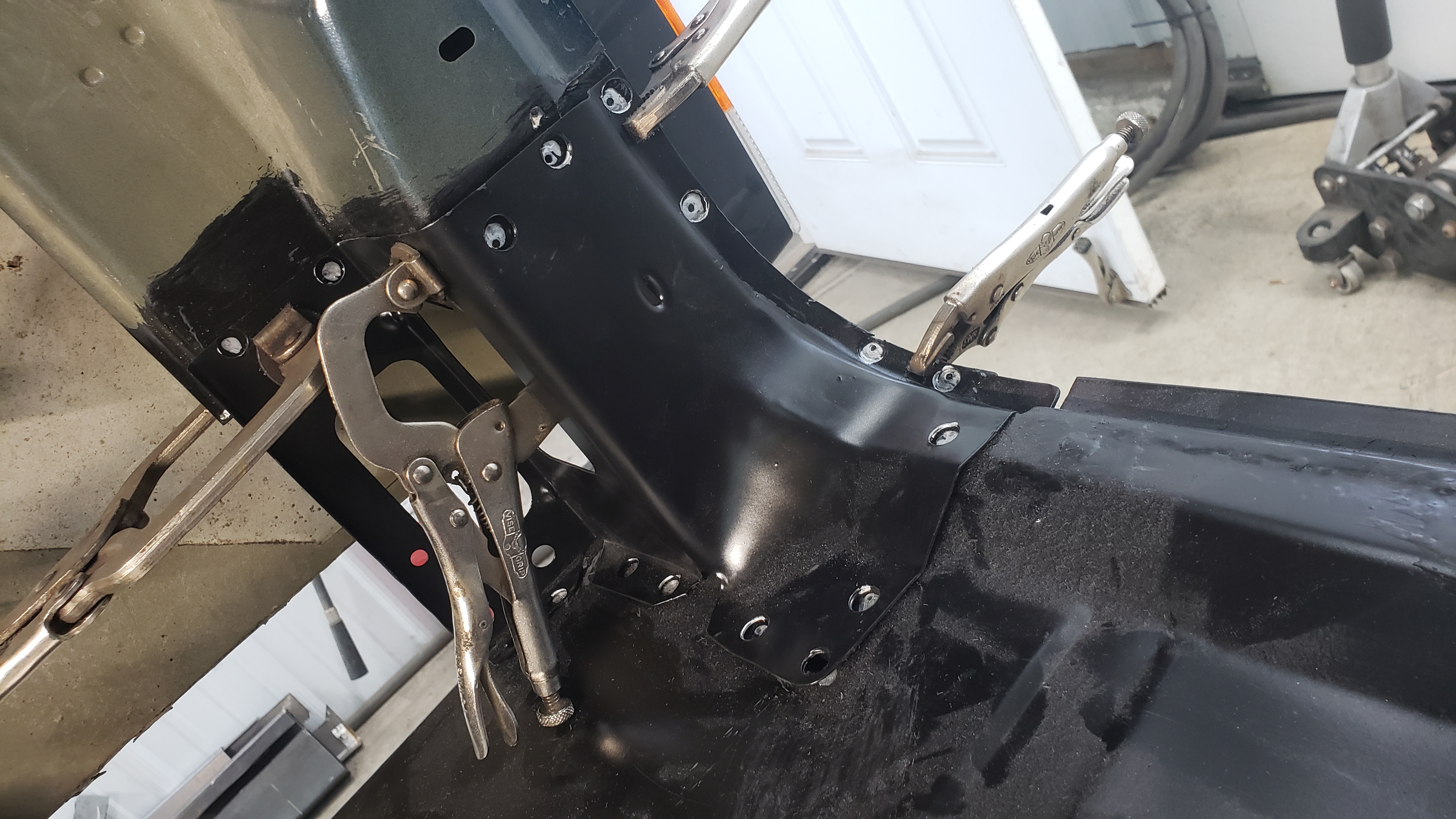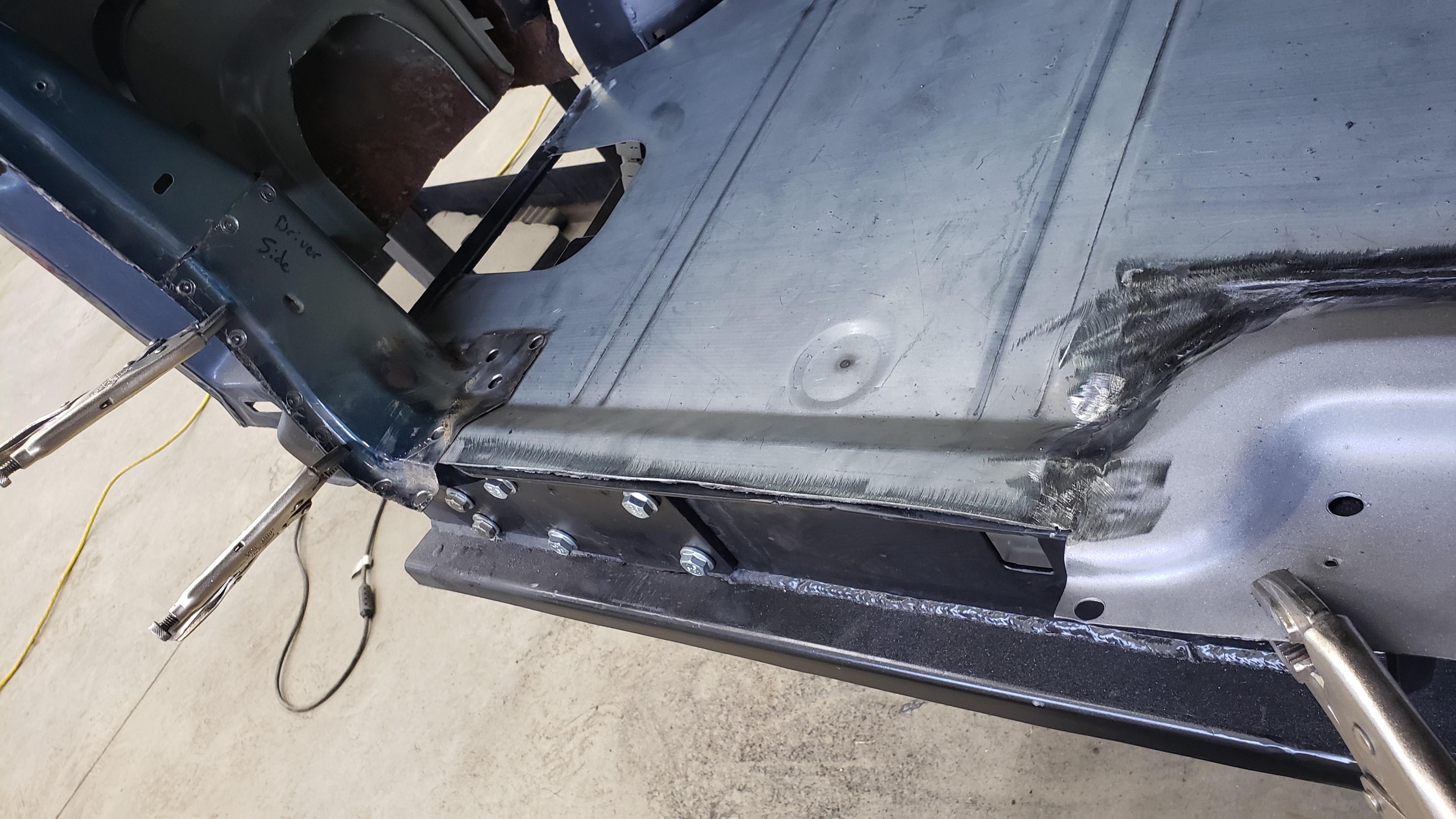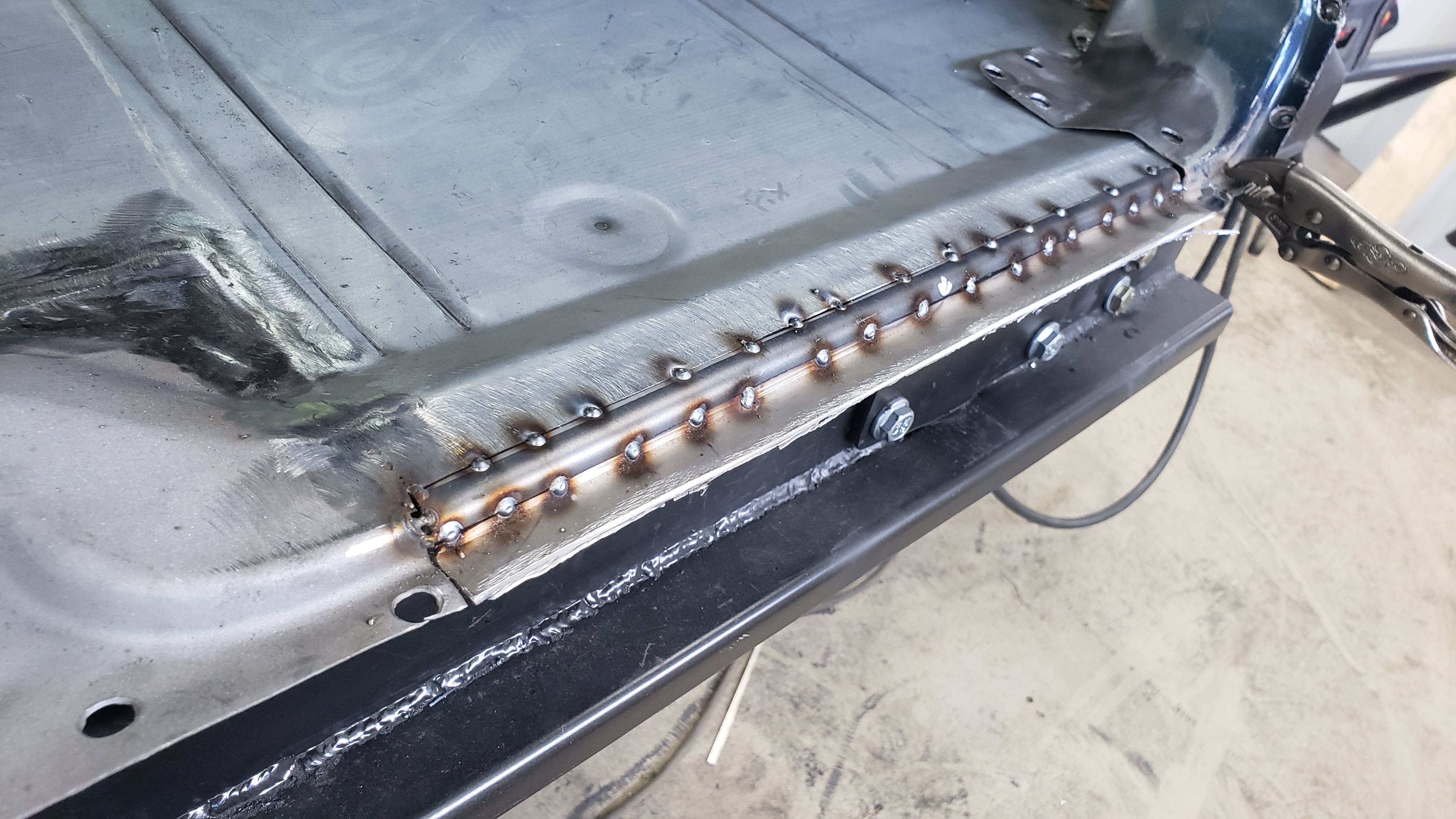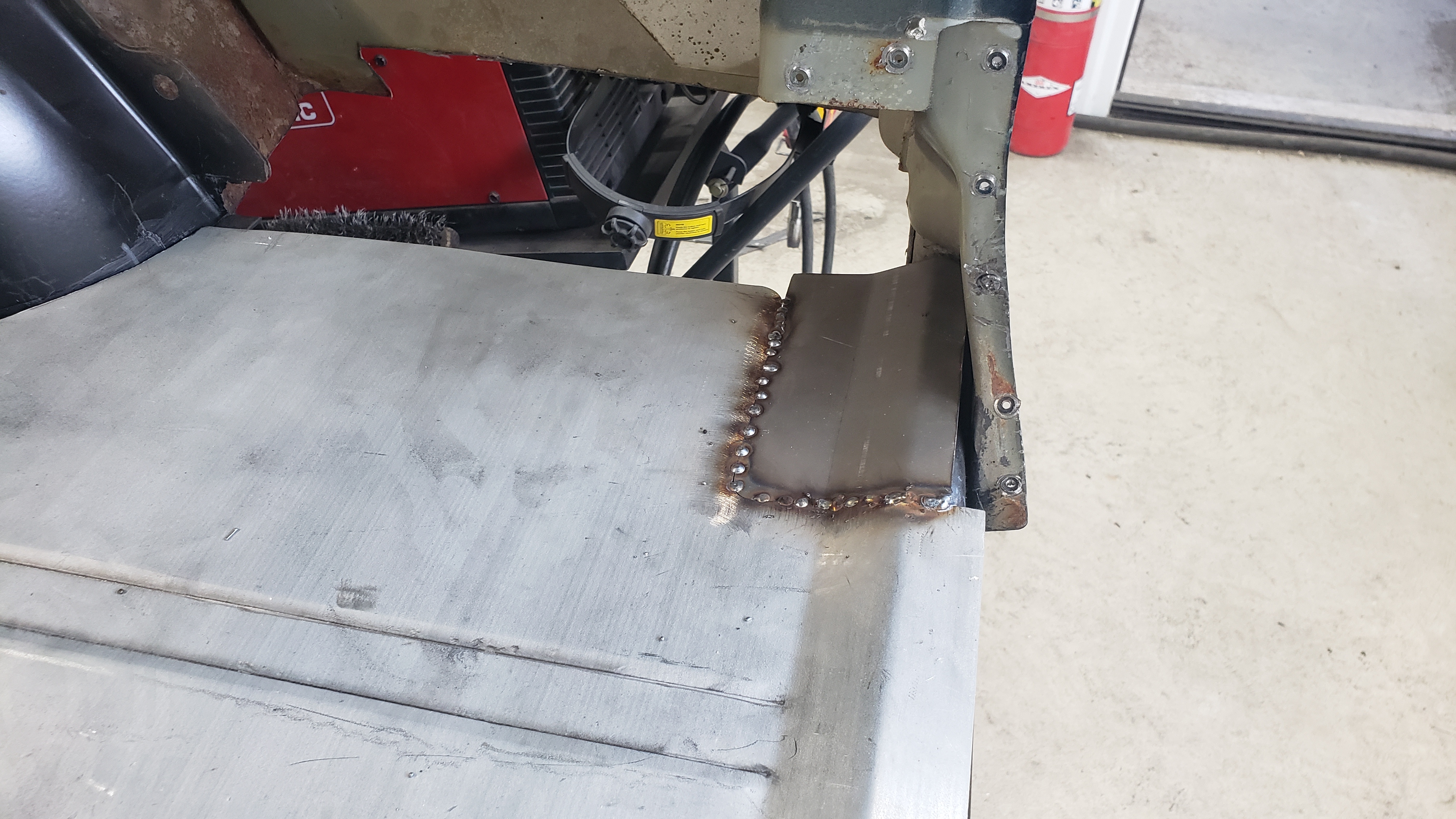 Welding in the floor was far more stressful than I thought it would be. Every weld has to be just about perfect and you can’t leave any gaps between the floor and the parts it mates against. I ended up having to use some clamps to hold things close together when spot welding.