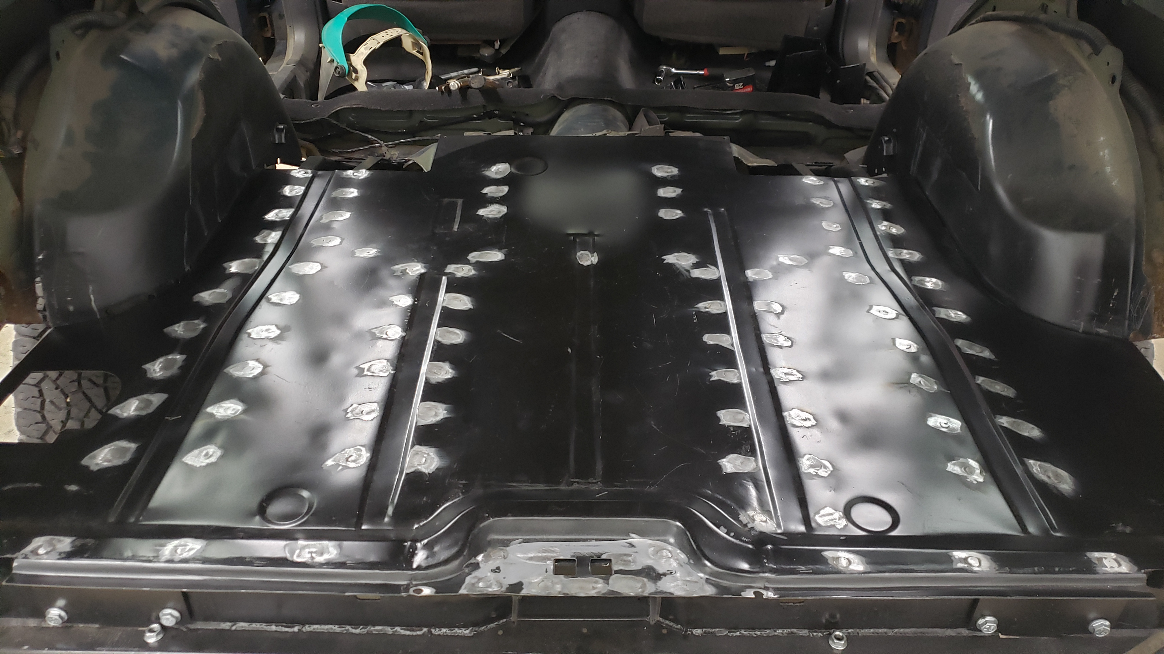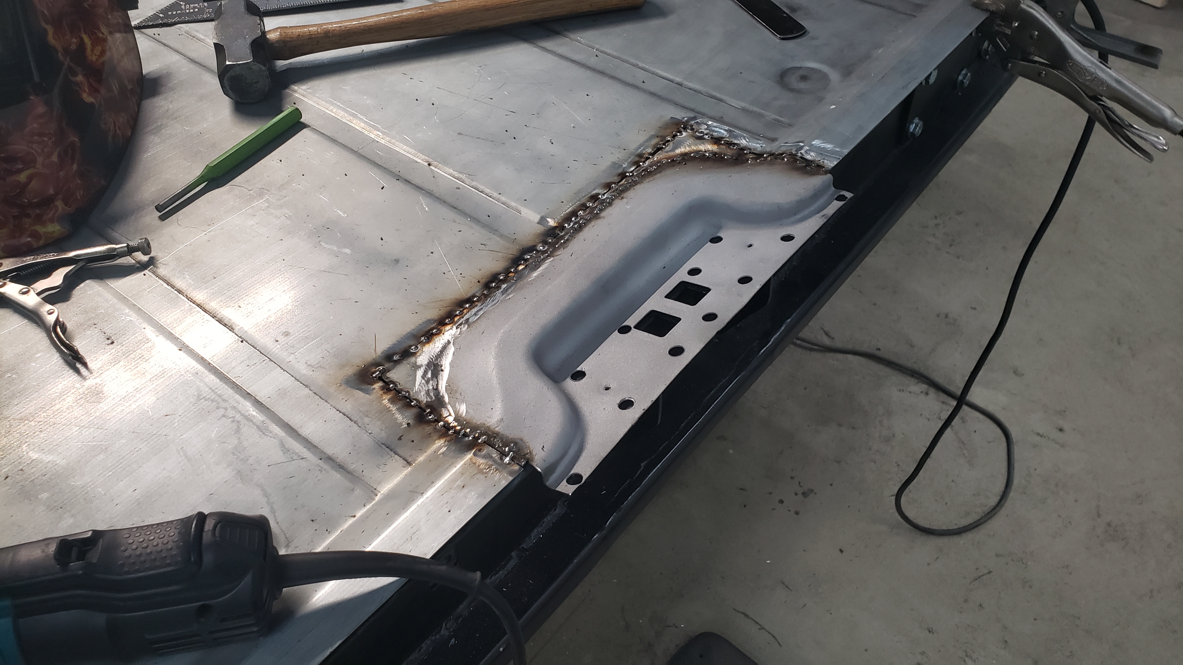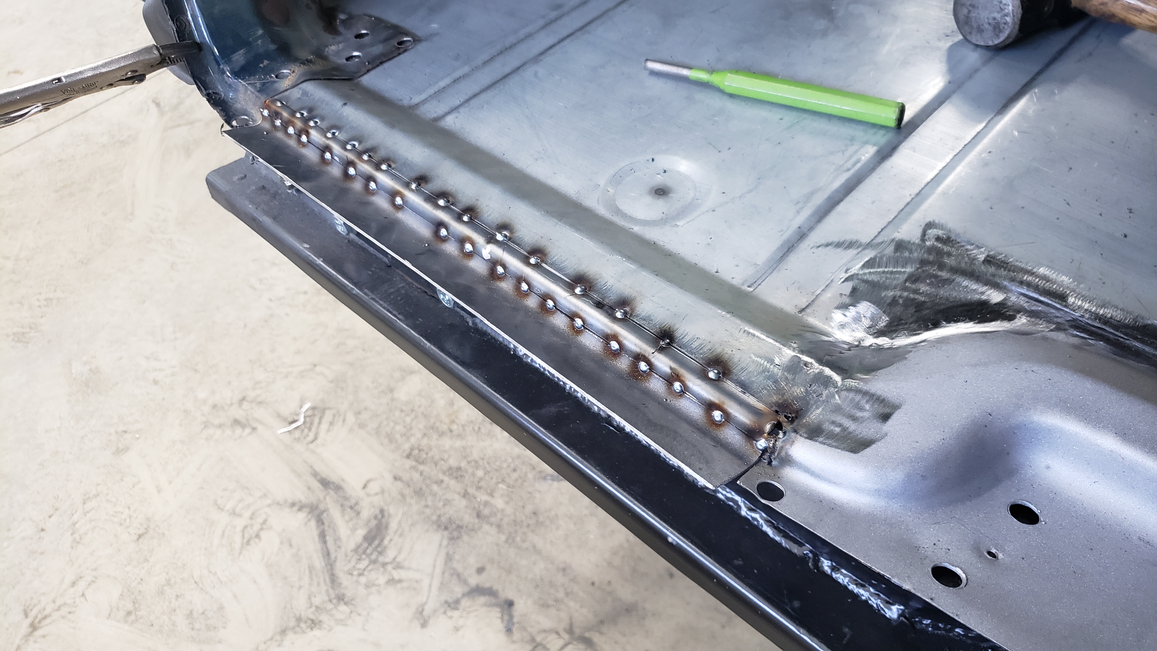 I was kneeling on the floor as I was welding it in and foolishly created a ton of small dents in the floor from my knees. Don’t kneel on the floor until it’s mostly welded in.