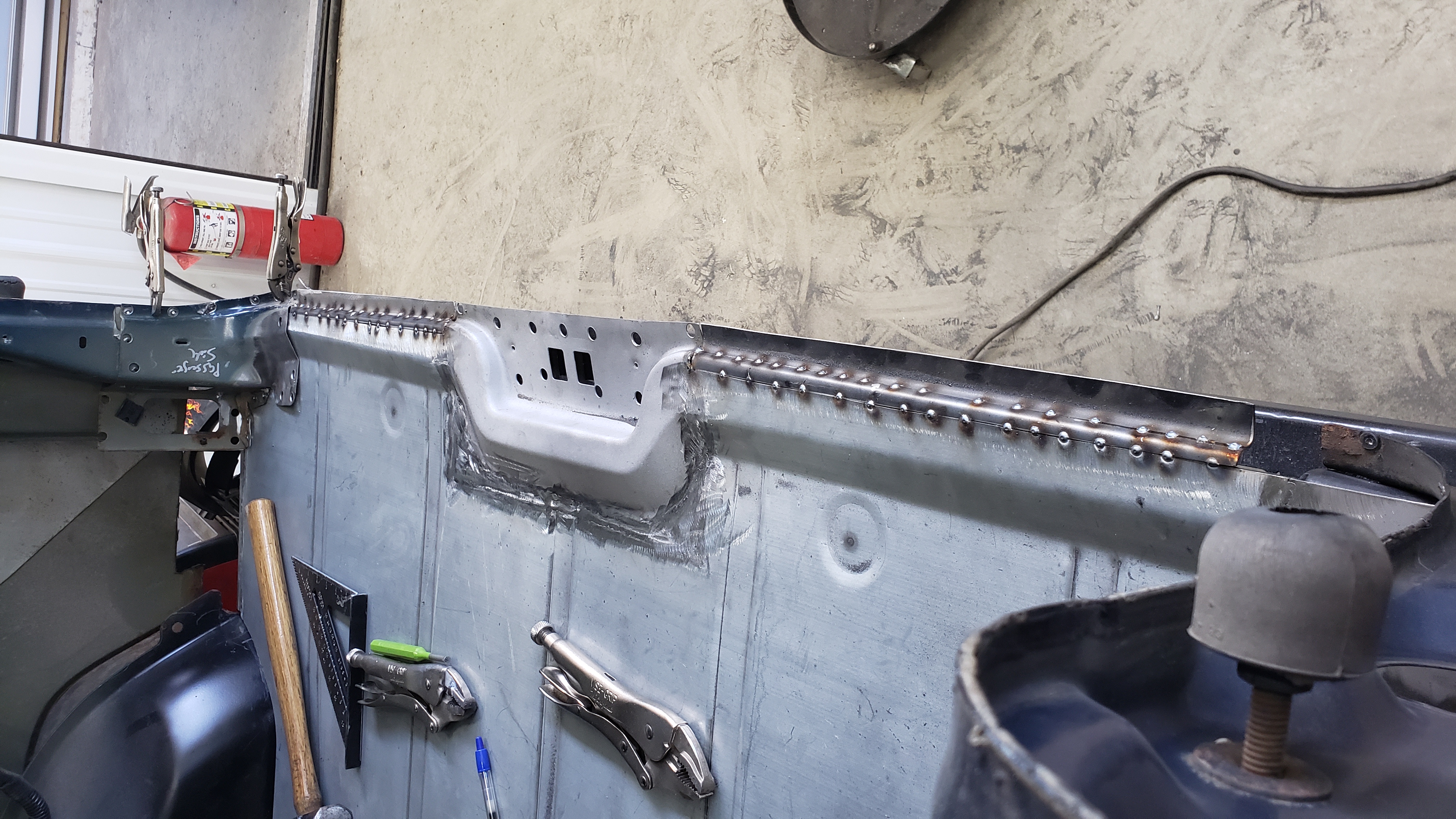 Since I have no floor to use, I bent up a small patch with my metal brake and welded it onto the patch panel.
