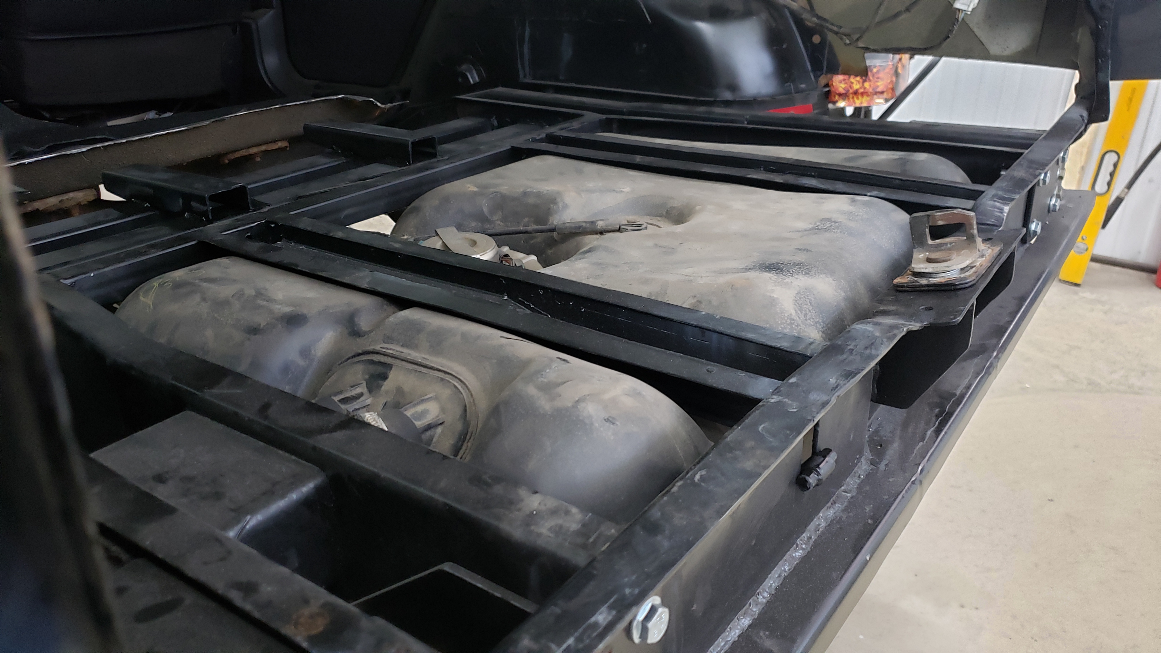 But before I put the floor back in for the last time to weld things up I wanted to address one little issue. The two braces that the gas tank mates against were getting in the way of the gas tank straps and made it a complete pain to attempt to pop them into position.