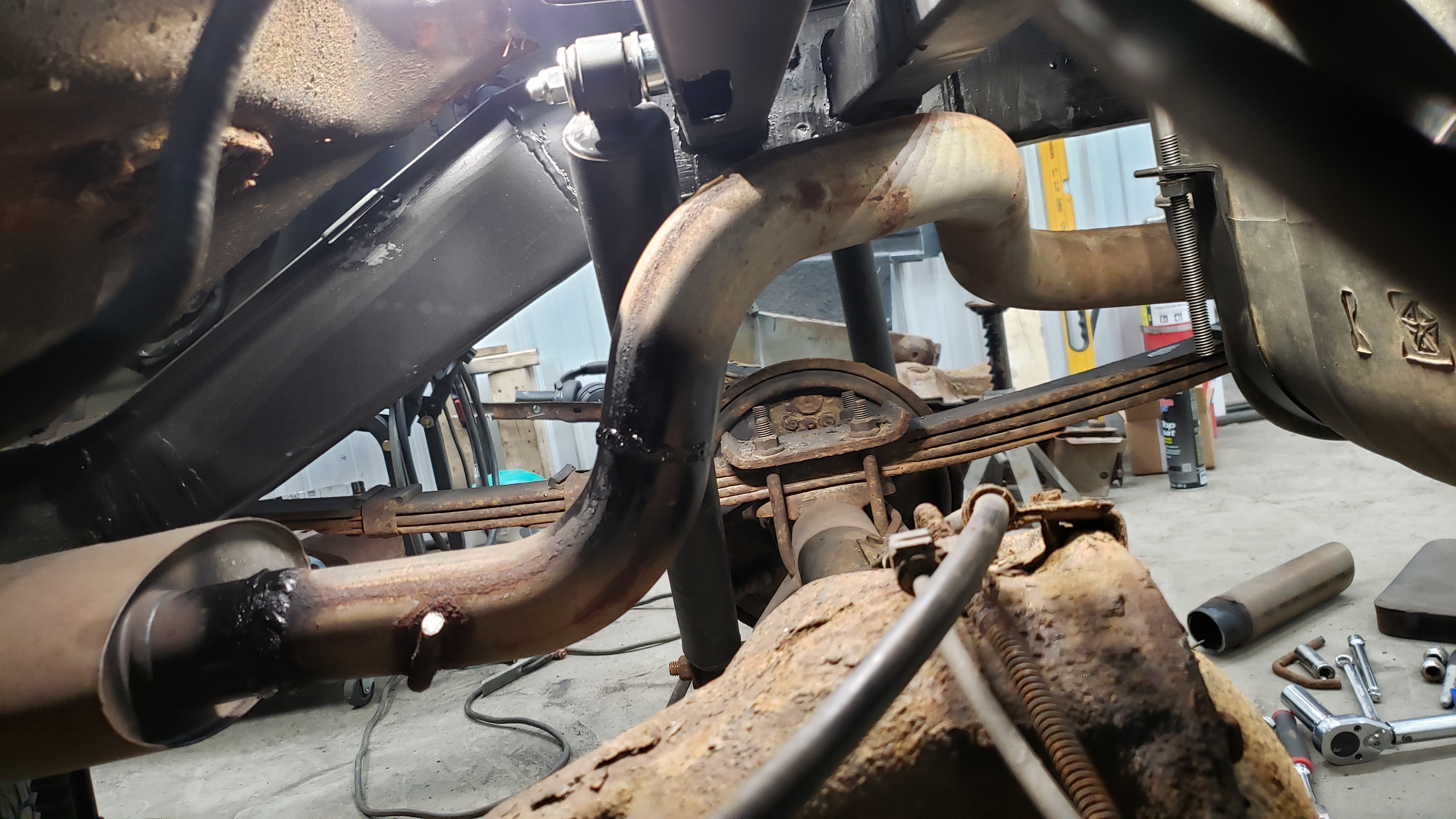 With the tail pipe sitting nicely underneath the shock crossmember all I had left to fix was cutting off the tip and welding it back in at the correct angle. It was pointing off to the side because when I chopped out the 1" I purposely welded them back together at a new angle to better position the pipe.