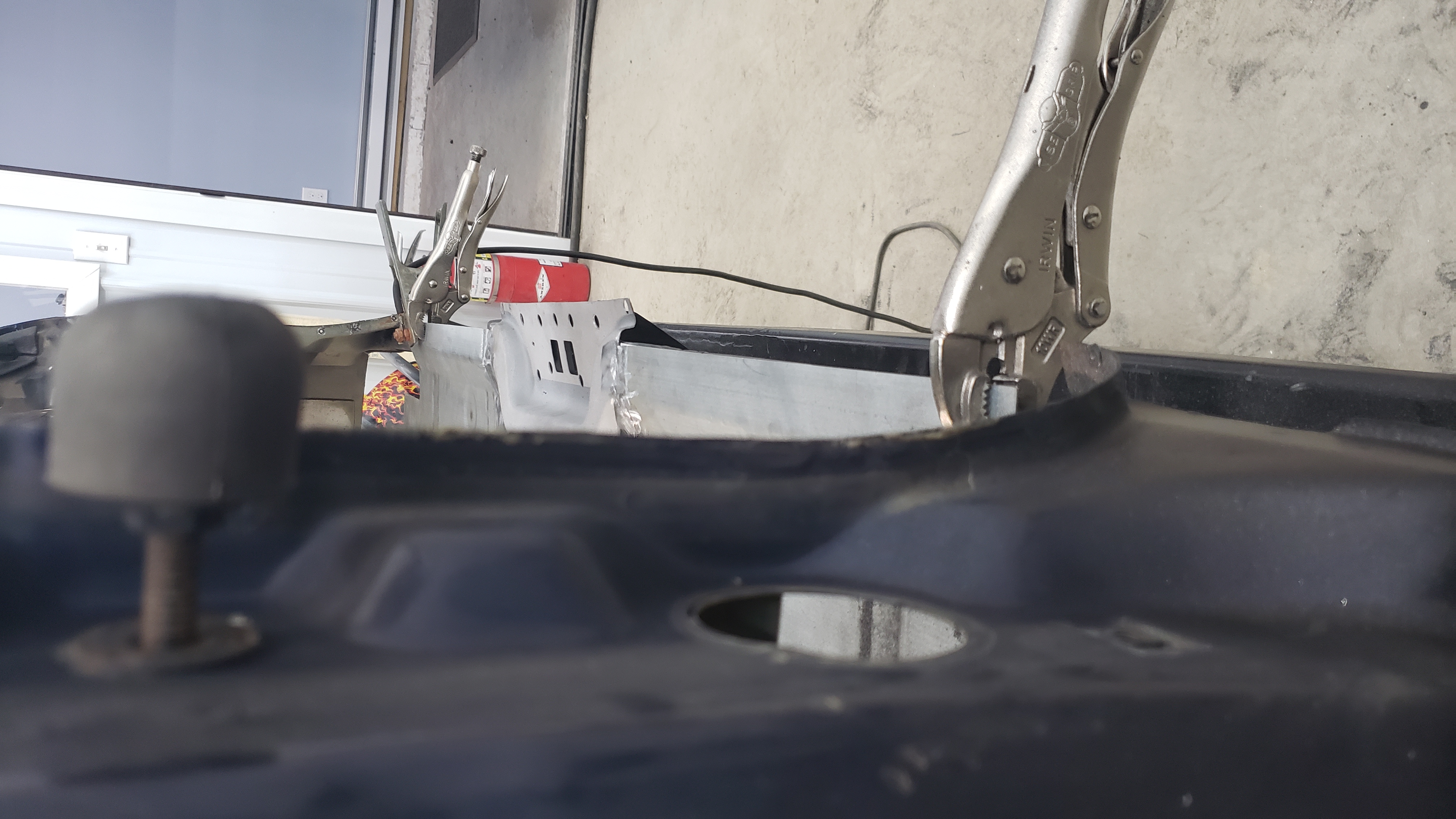 When I finally positioned the floor pan into the best spot possible I used vise grips to hold it down so I wouldn’t have to worry about accidentally nudging it.