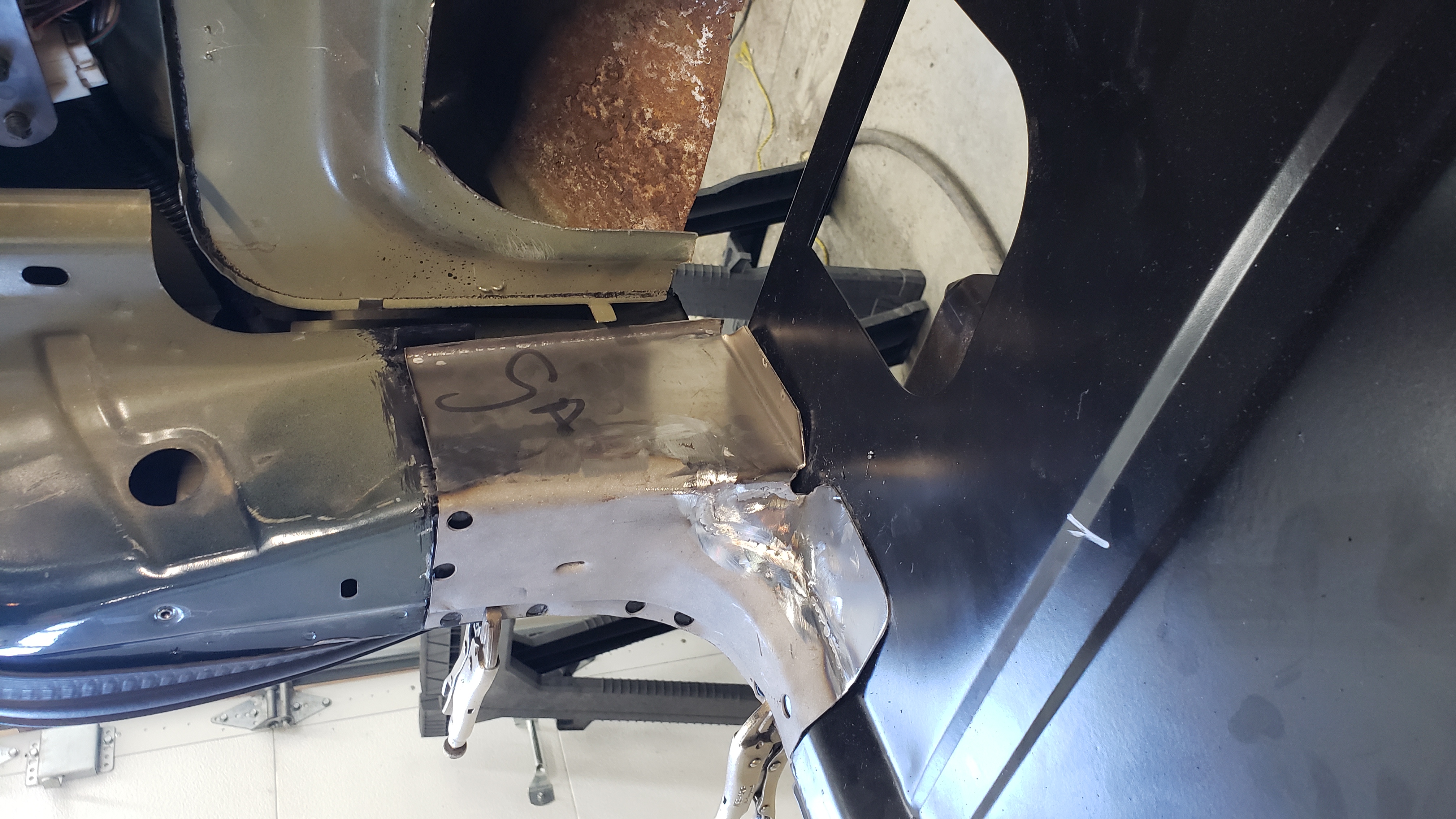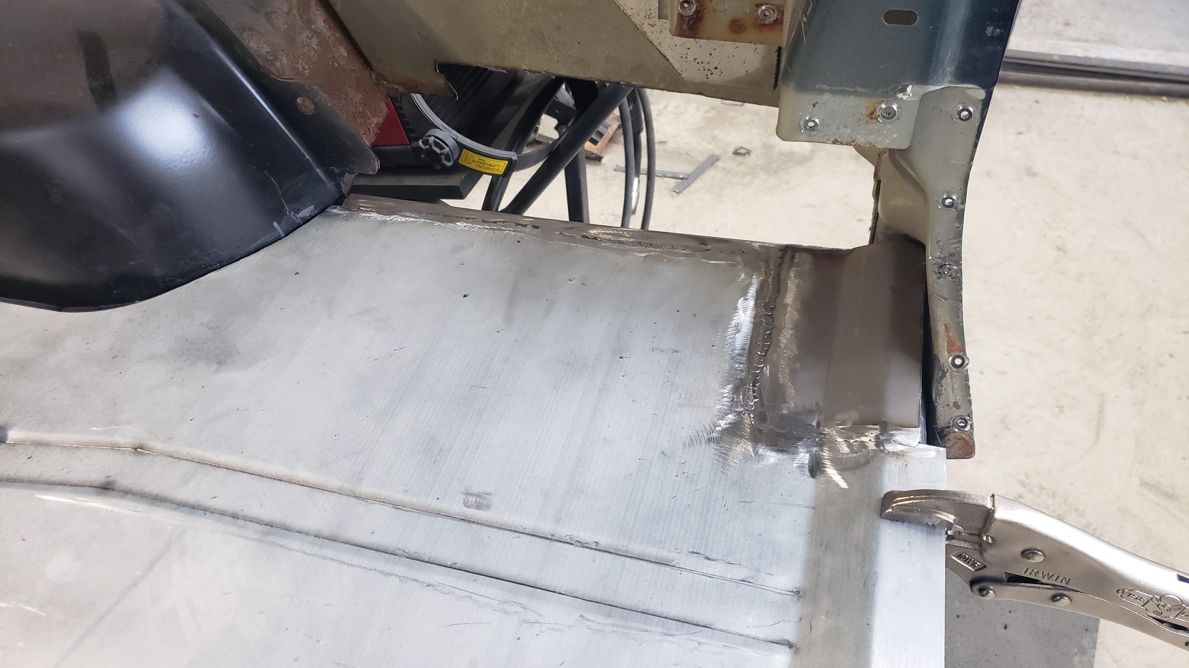 Welding it in went great and I was able to avoid warping the floor pan. Sadly, I failed to notice I was welding it in crooked and shortly after had to cut it out and proceed to weld it back in all over again.